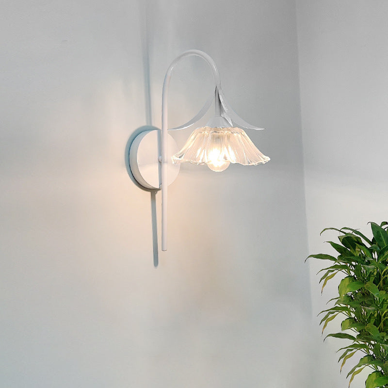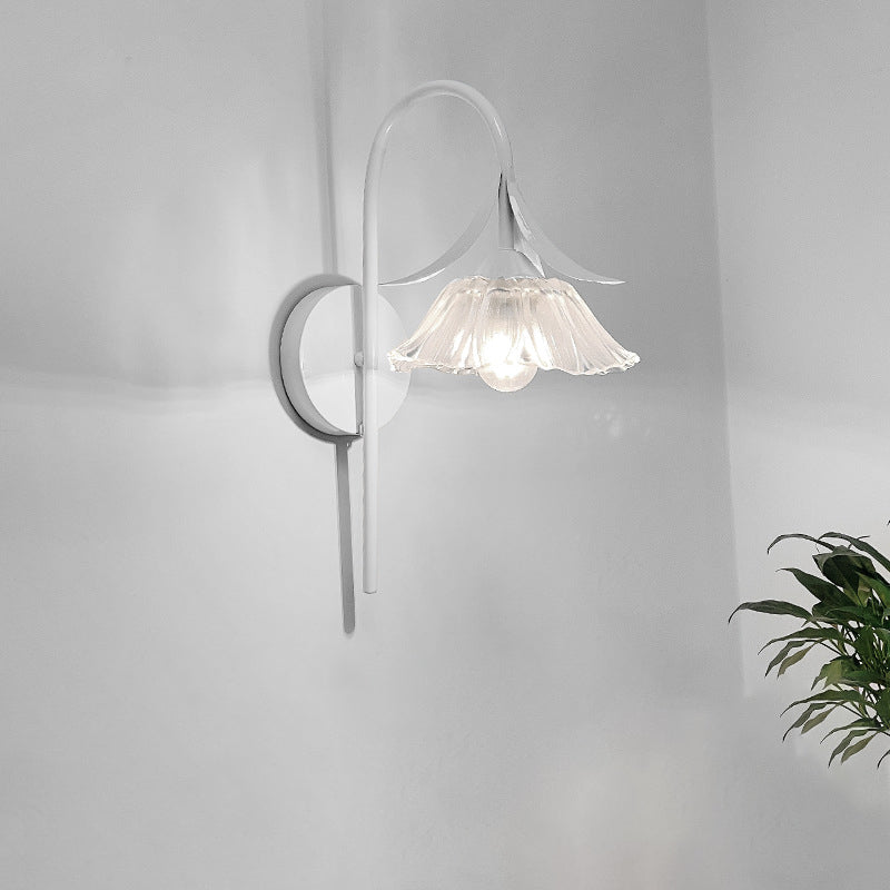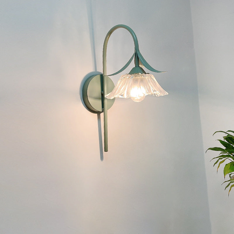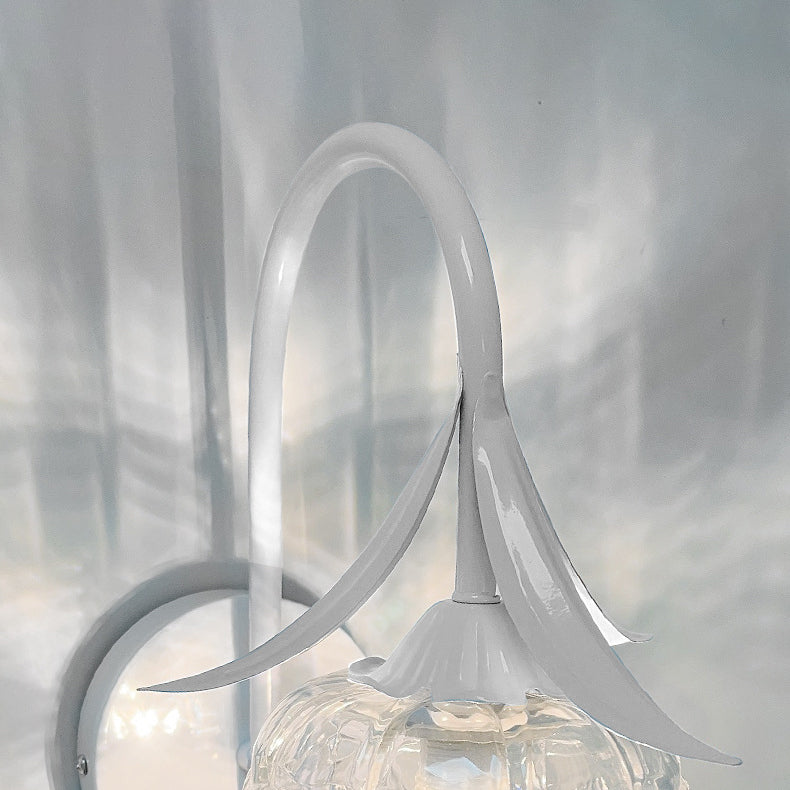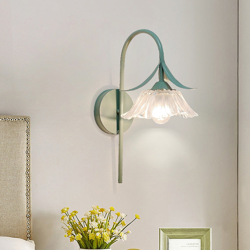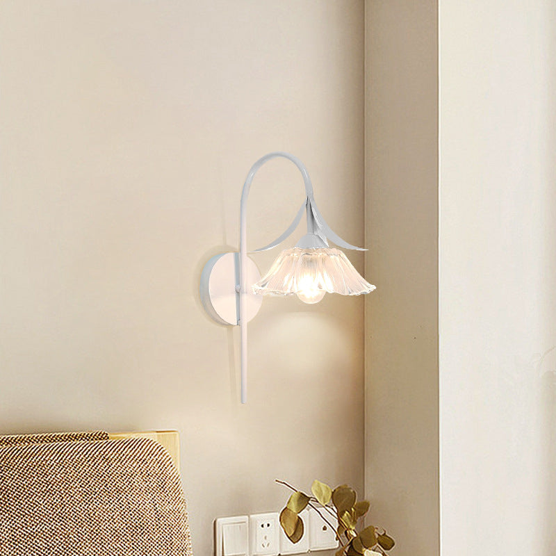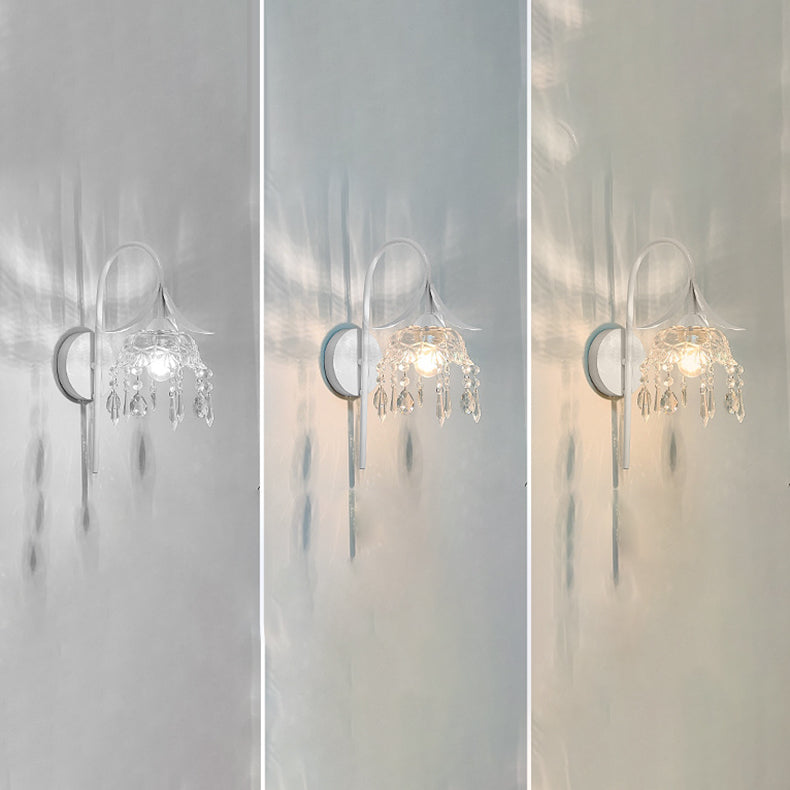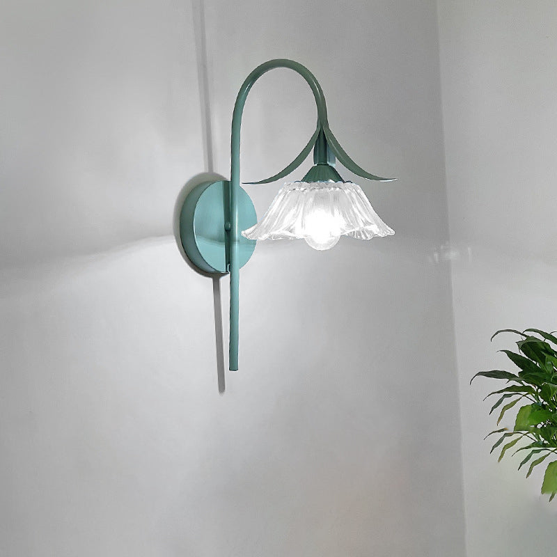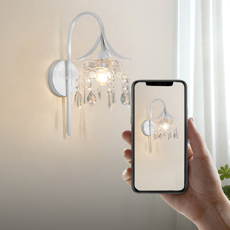 Contemporary Creative Iron Lotus Flower Glass Shade Crystal 1-Light Wall Sconce Lamp For Living Room