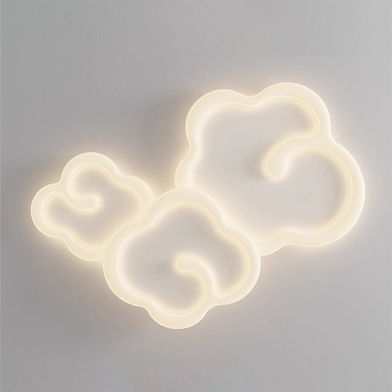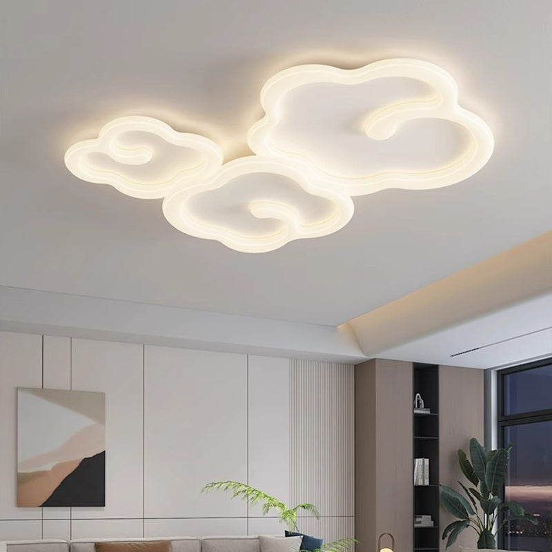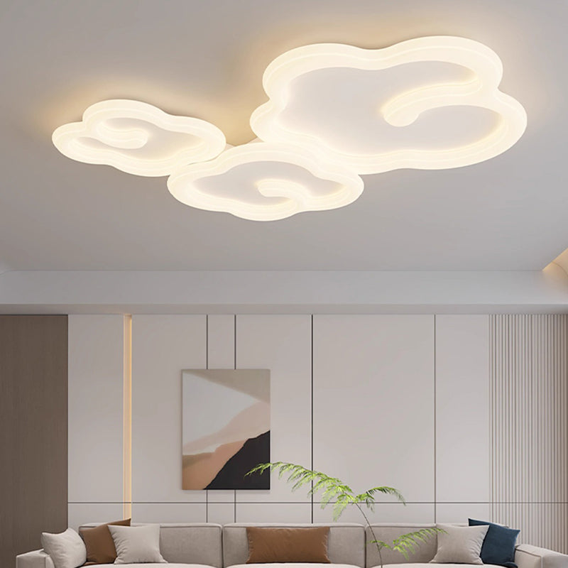 Contemporary Creative Iron PE Auspicious Cloud Shade LED Flush Mount Ceiling Light For Living Room