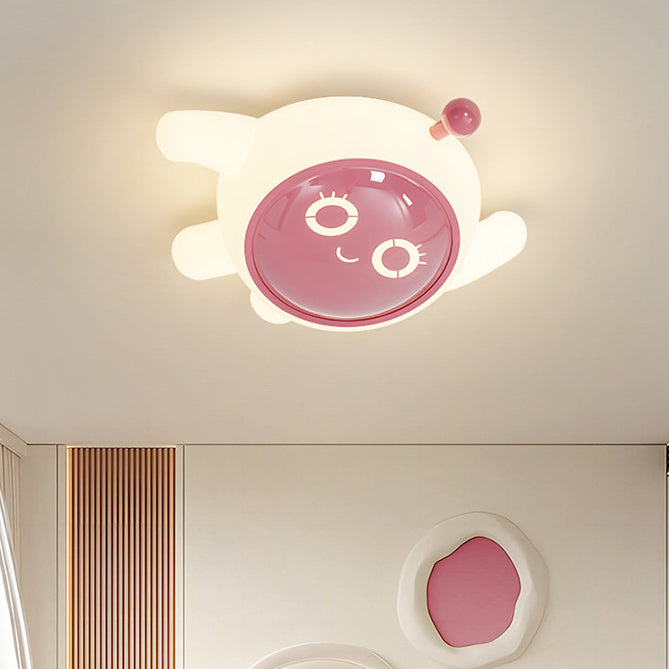 Contemporary Creative Iron PE Cartoon Spaceman LED Flush Mount Ceiling Light For Bedroom