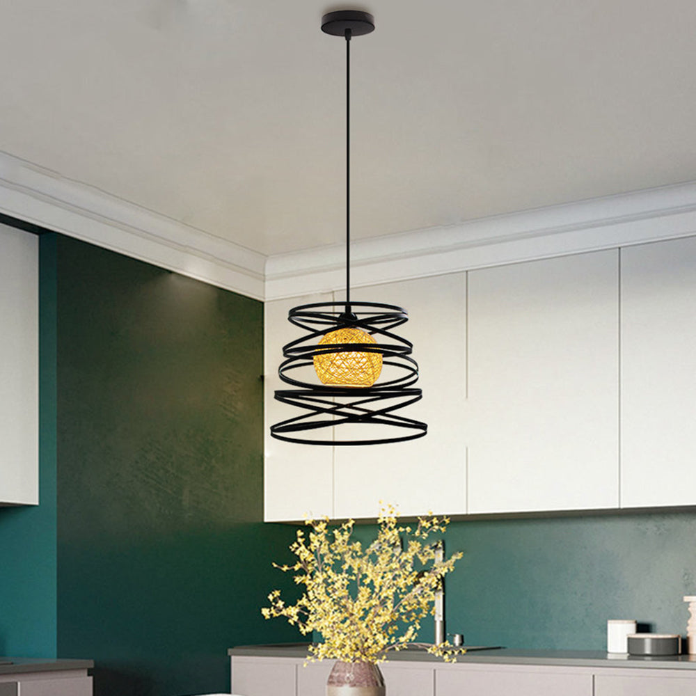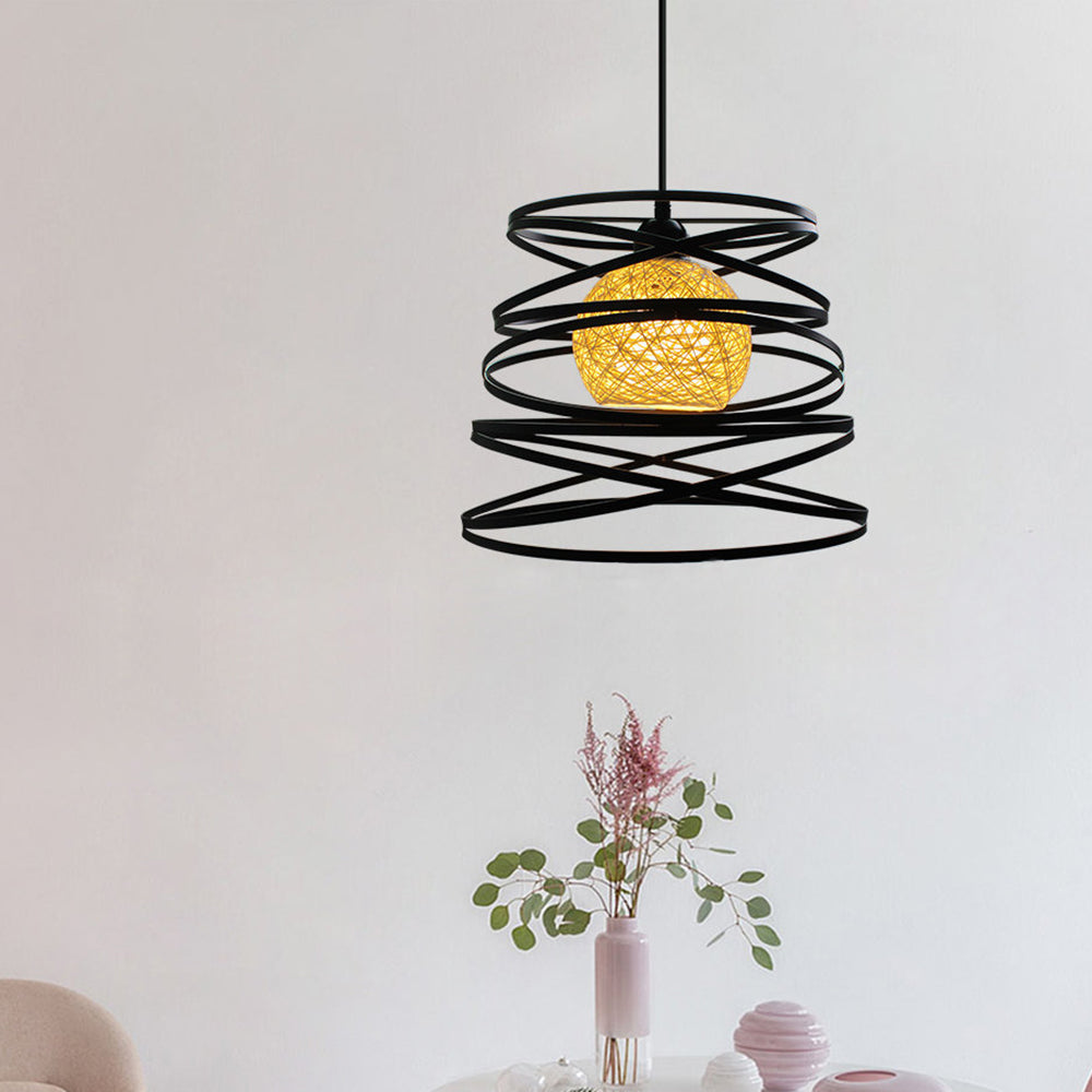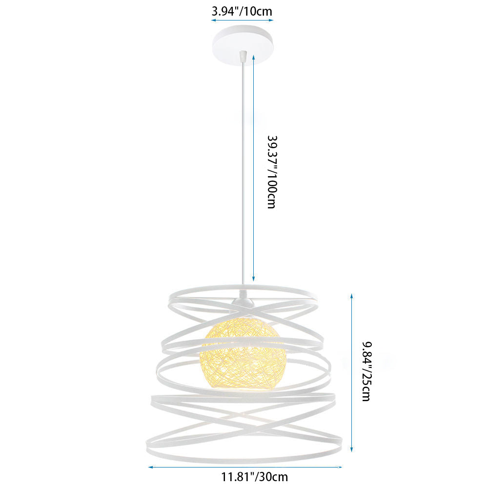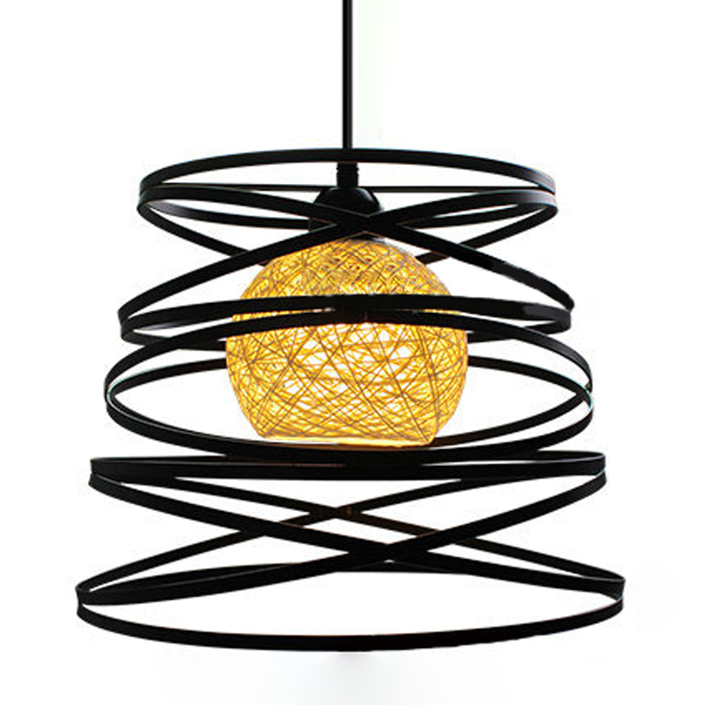 Contemporary Creative Iron Spiral Spherical Shade 1-Light Pendant Light For Living Room