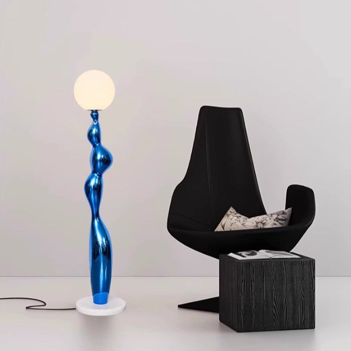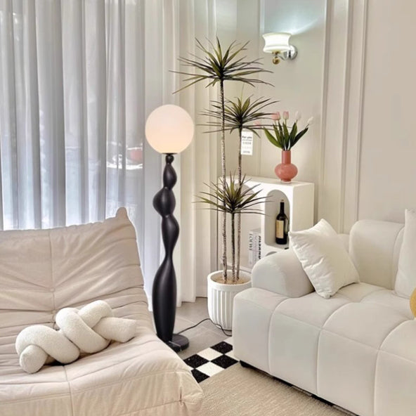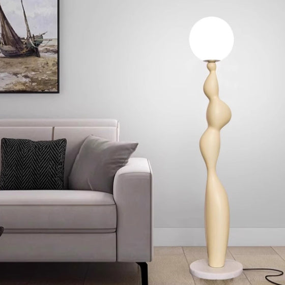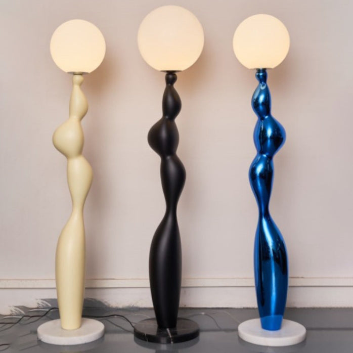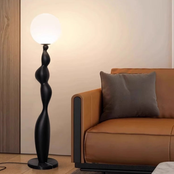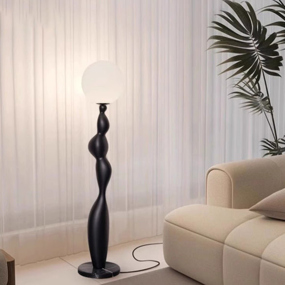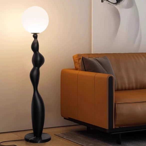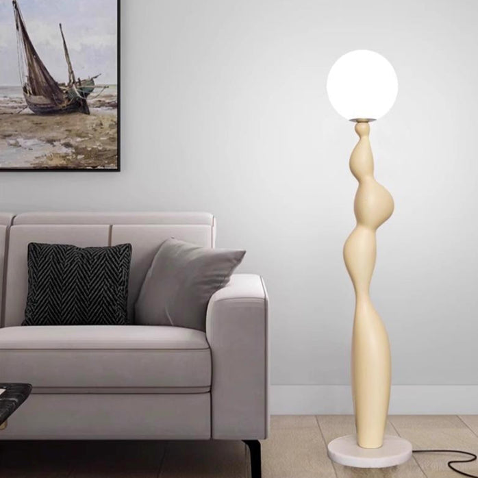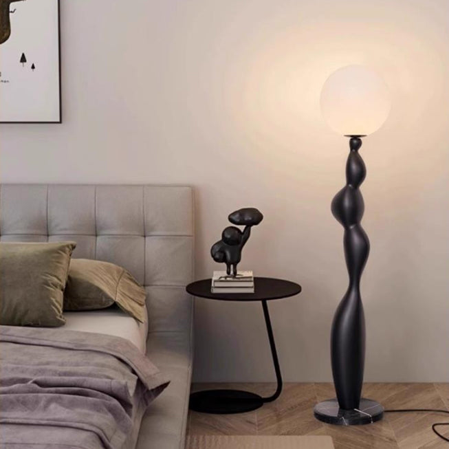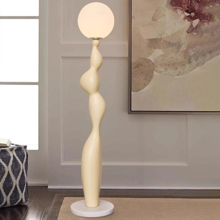Contemporary Creative Irregular Cylinder Base Orb Shade PE Resin Marble 1-Light Standing Floor Lamp For Living Room