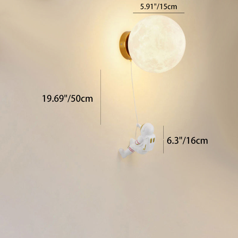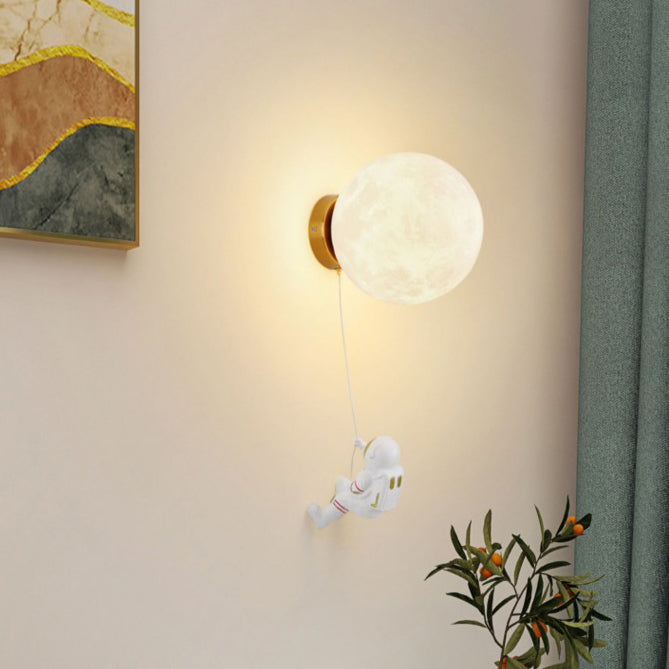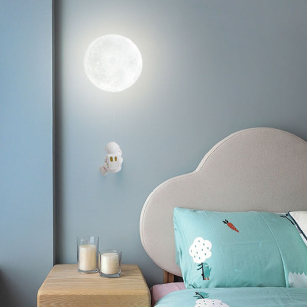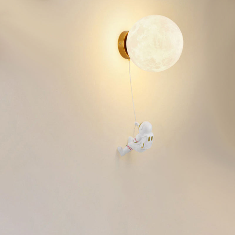 Contemporary Creative Kids Astronaut 3D Moon Silicone Resin Aluminum 1-Light Wall Sconce Lamp For Bedroom