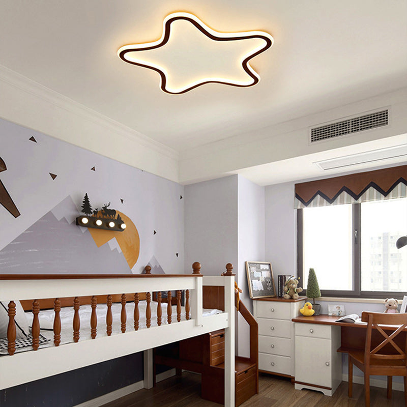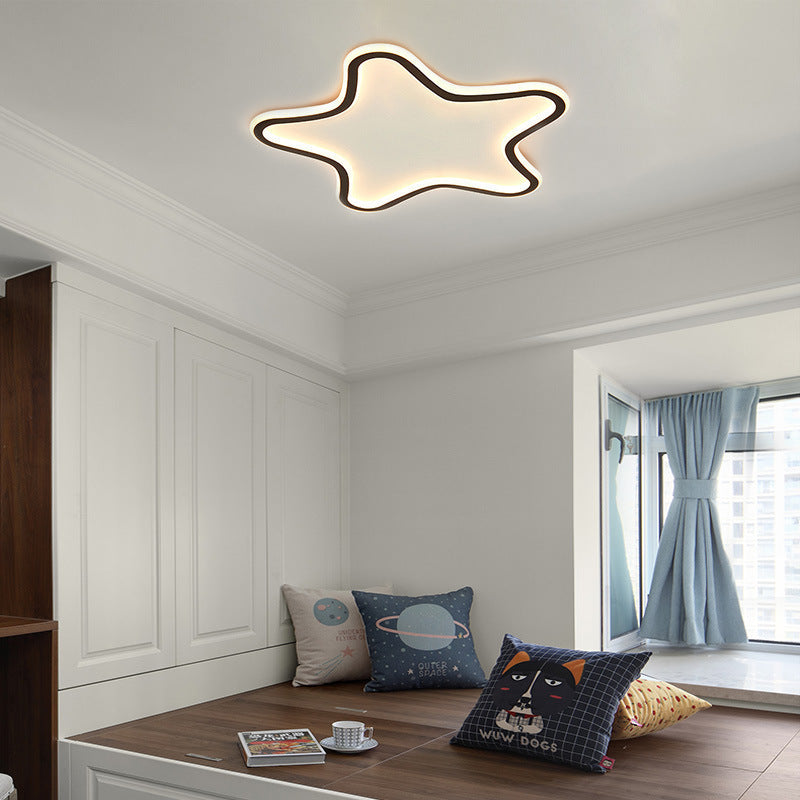 Contemporary Creative Kids Star Shape Silicone Aluminum Iron LED Flush Mount Ceiling Light For Bedroom