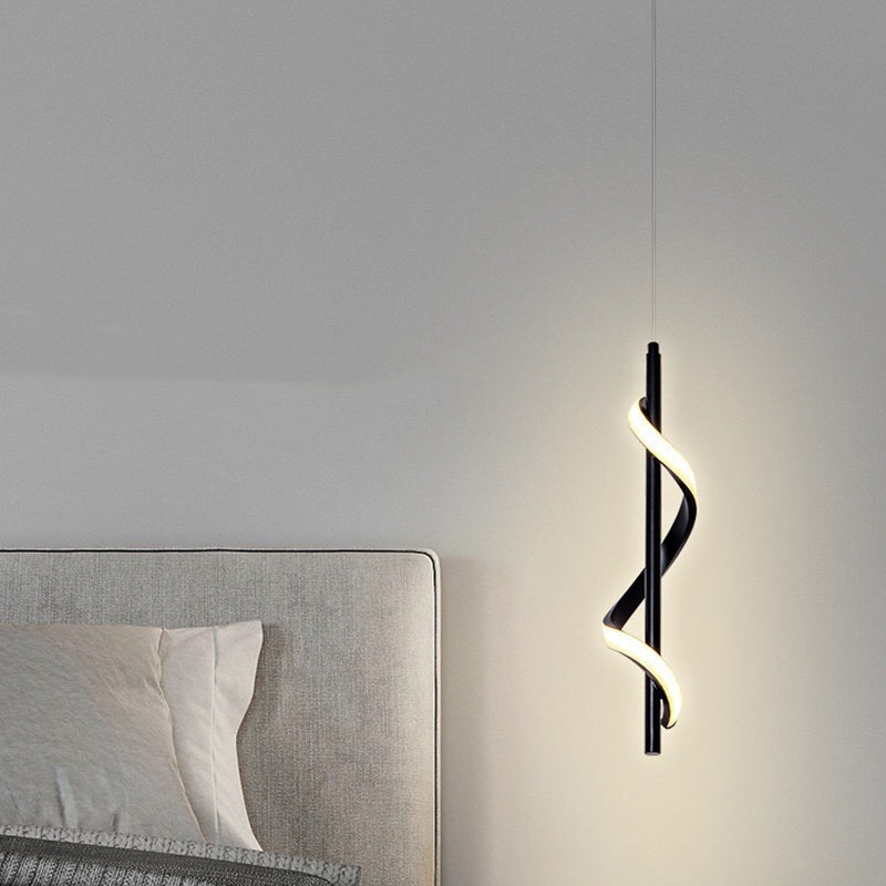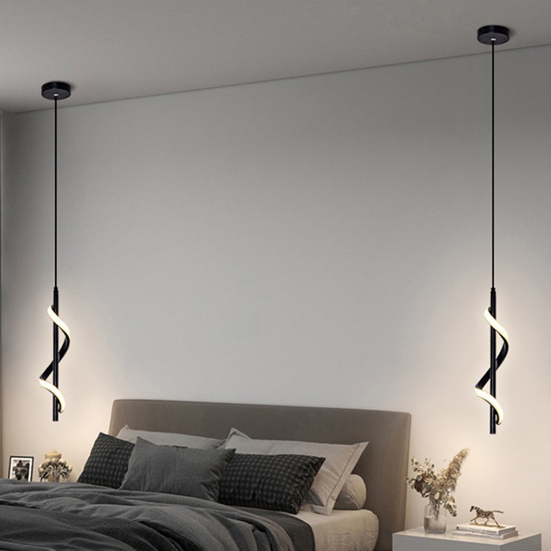 Contemporary Creative Linear Spiral Hardware Silicone LED Pendant Light For Bedroom