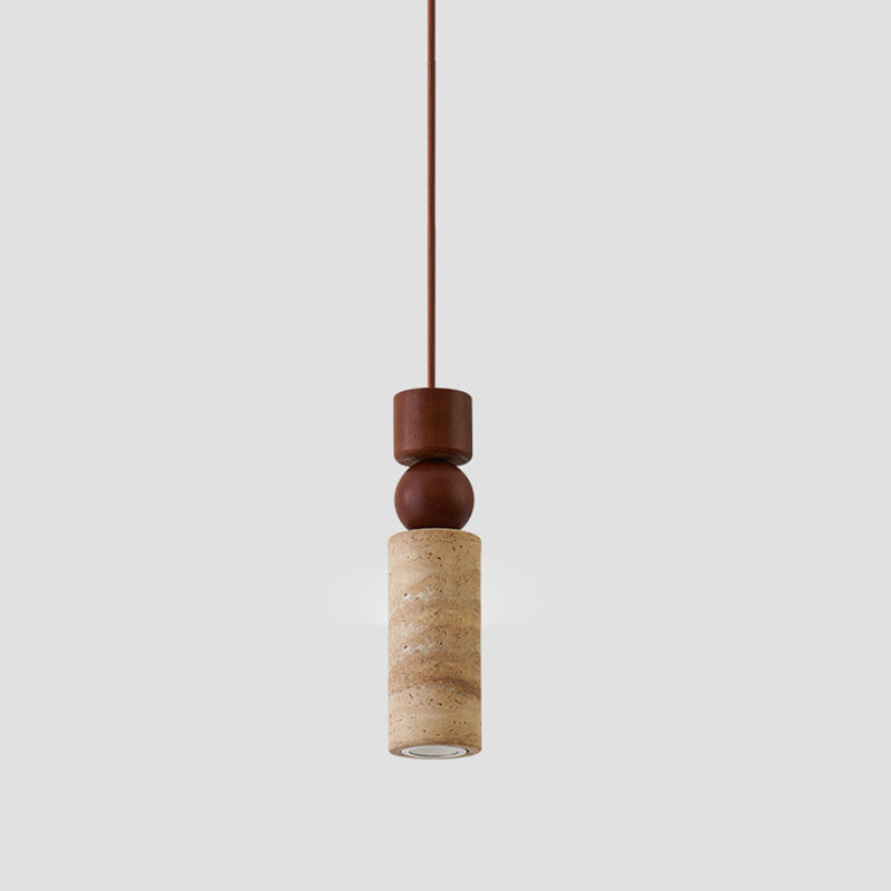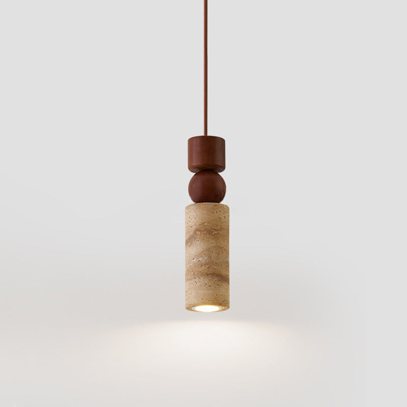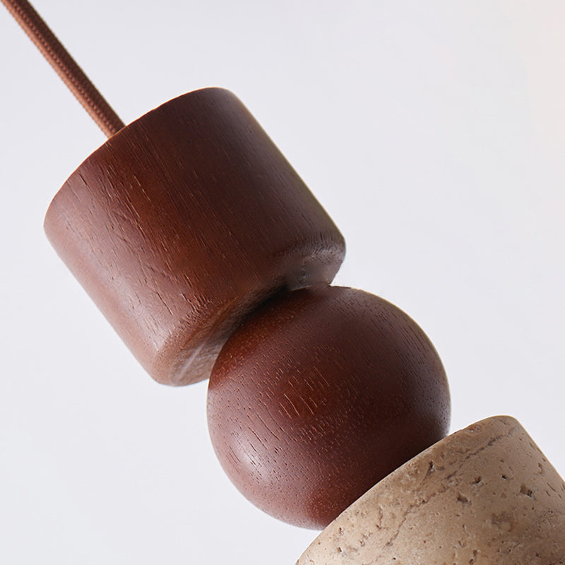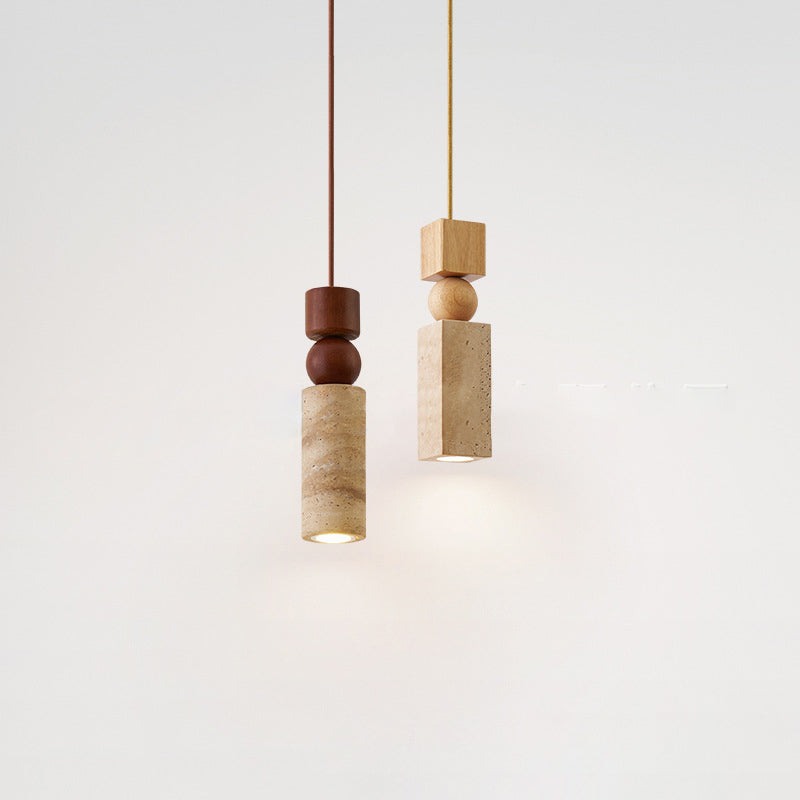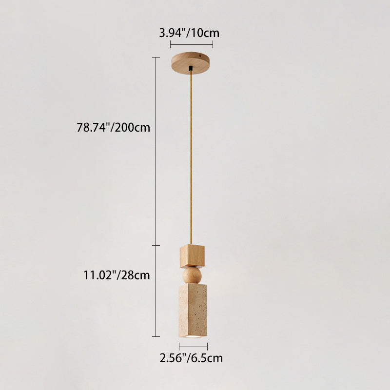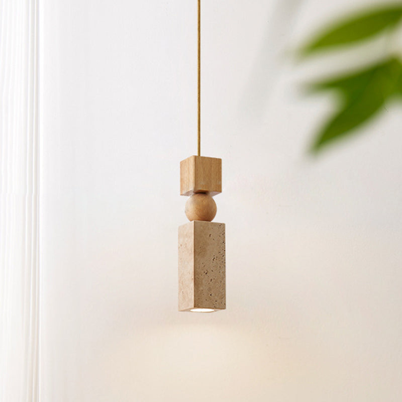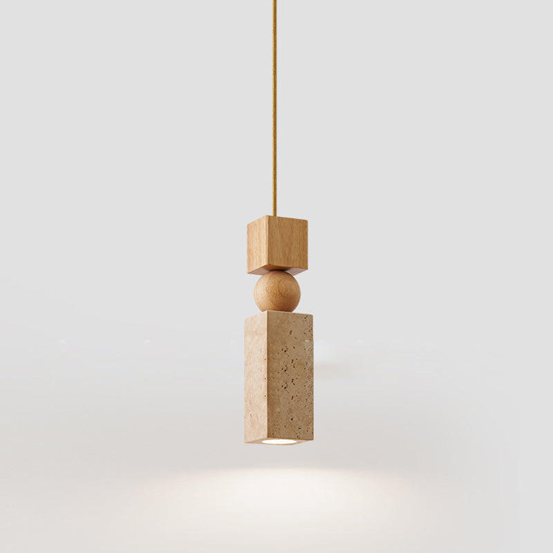 Contemporary Creative Linear Wooden Yellow Travertine 1-Light Pendant Light For Living Room
