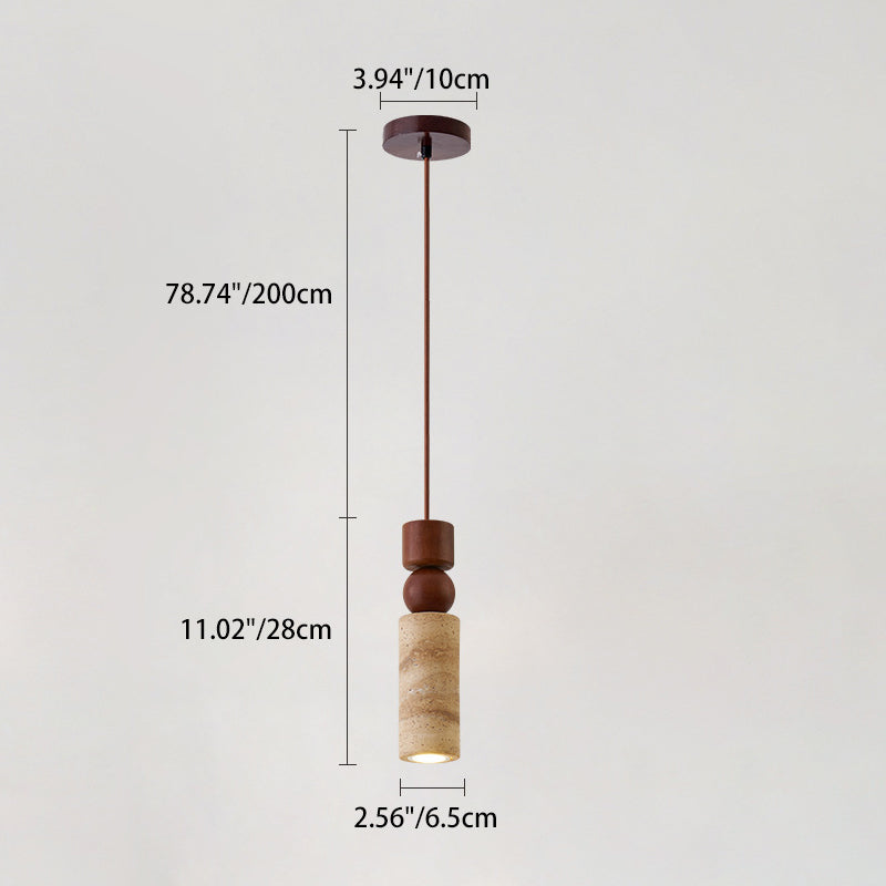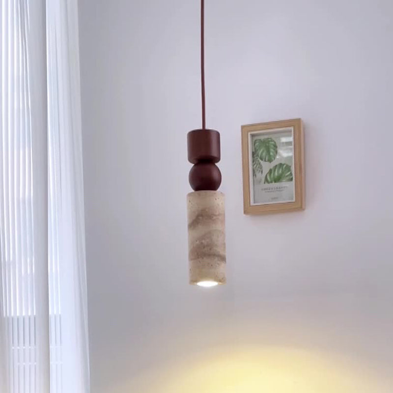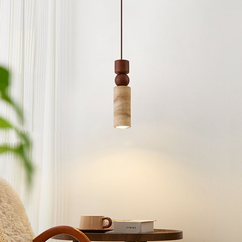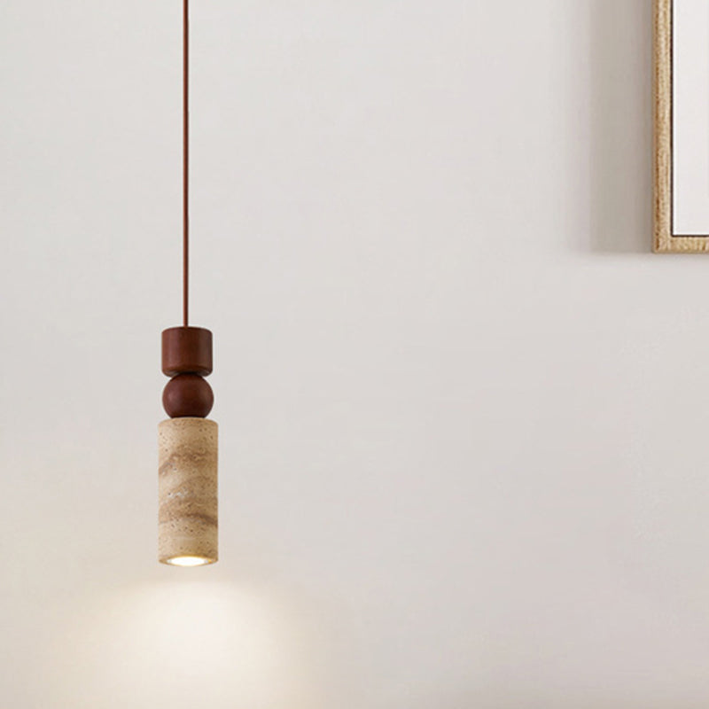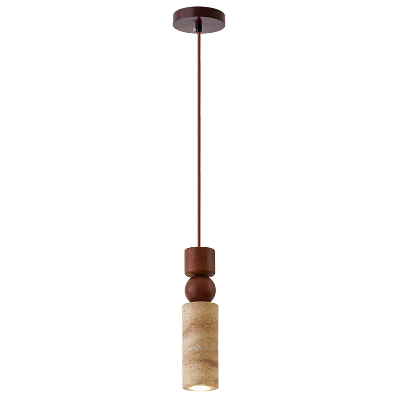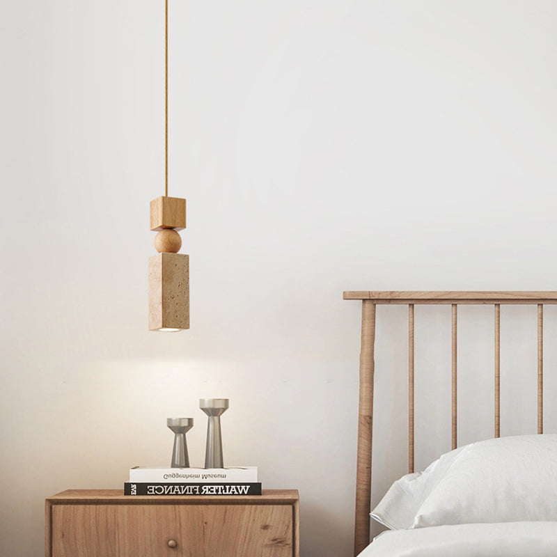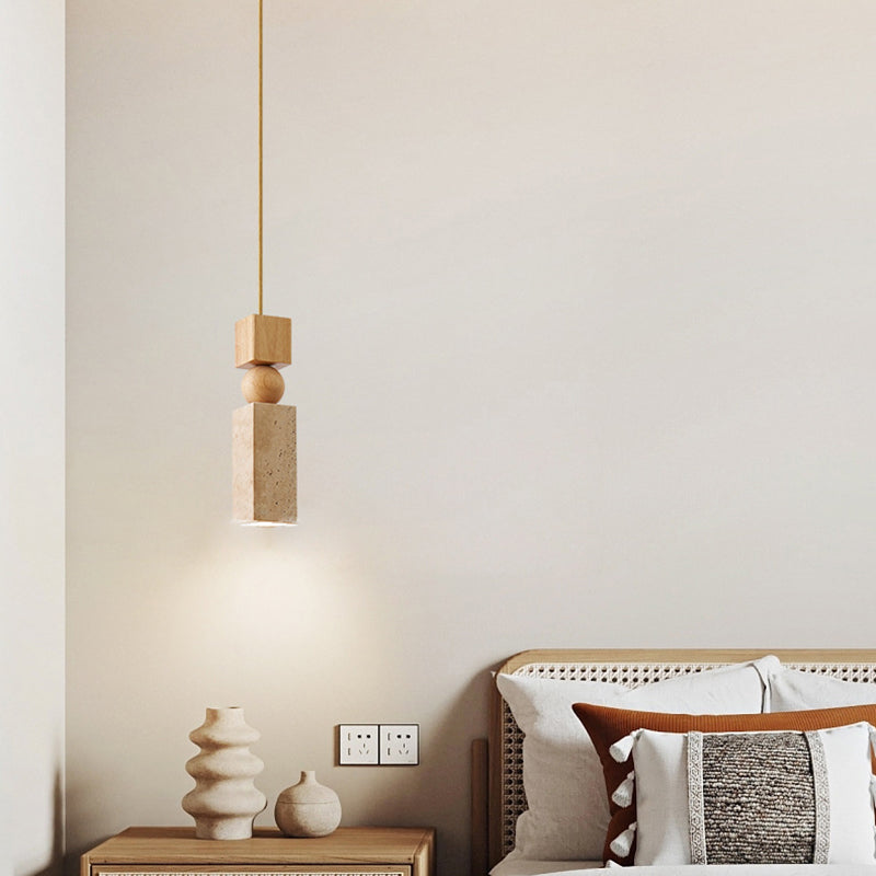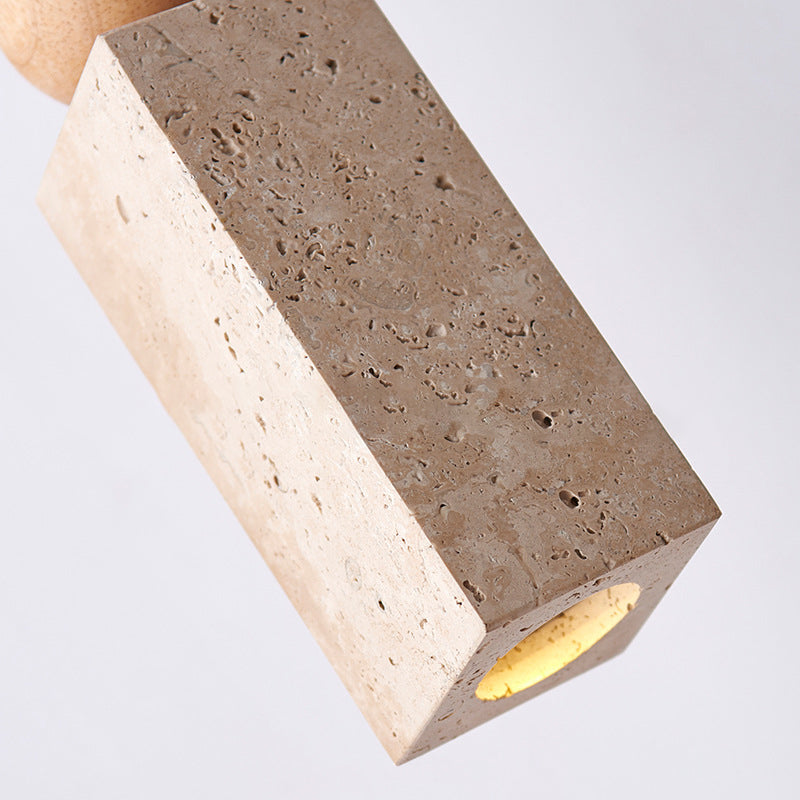 Contemporary Creative Linear Wooden Yellow Travertine 1-Light Pendant Light For Living Room