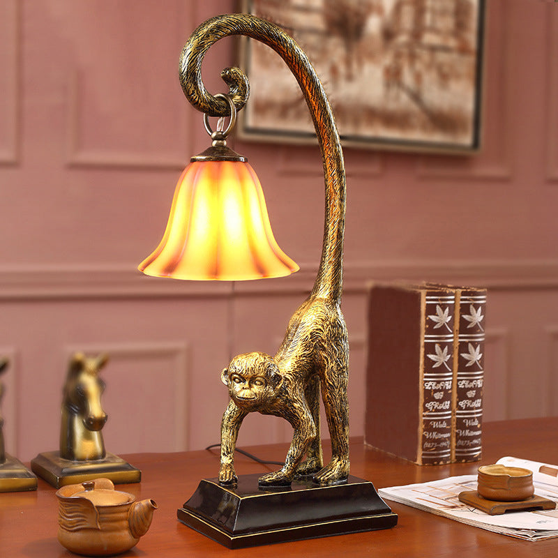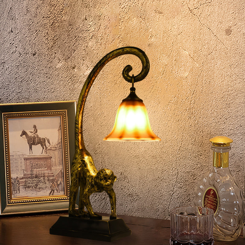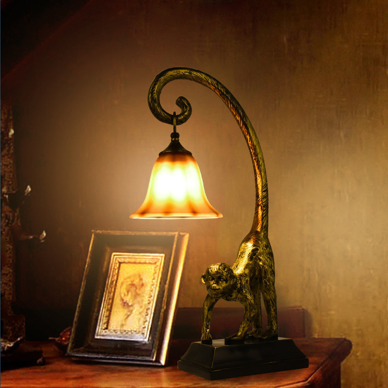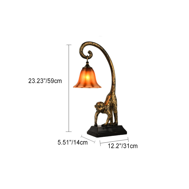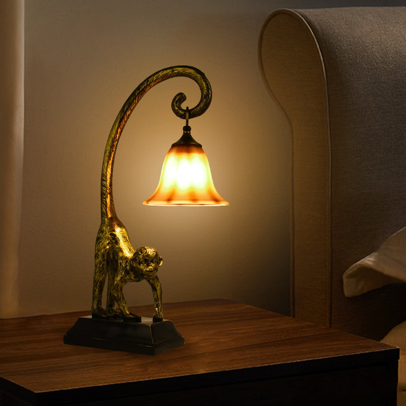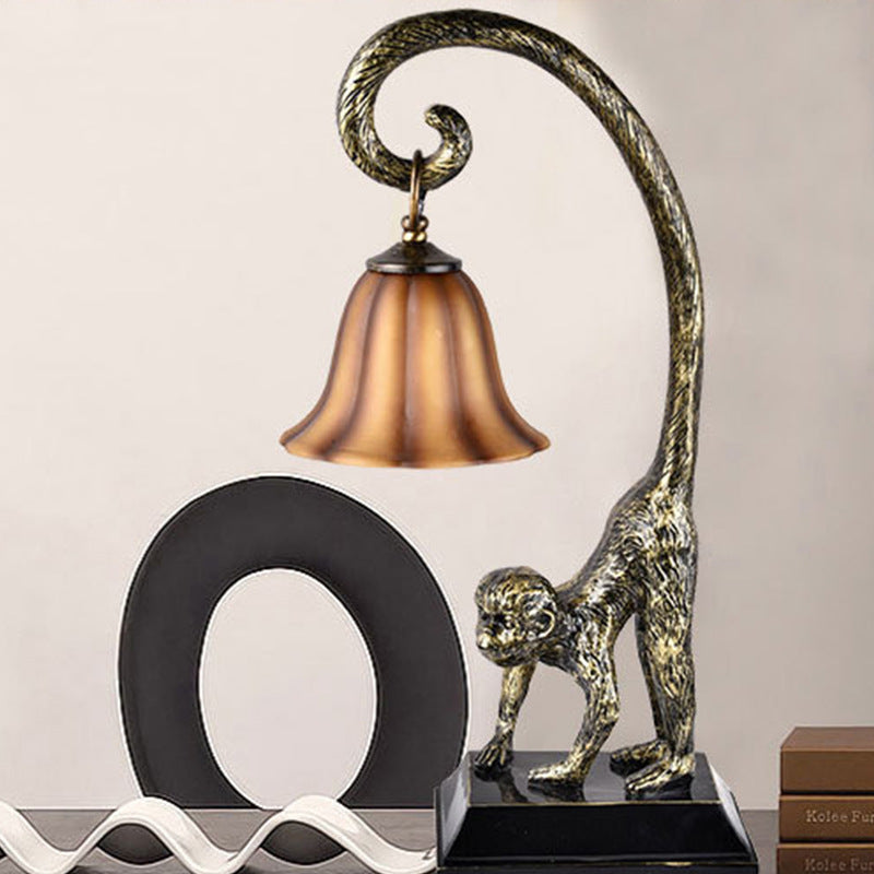 Contemporary Creative Monkey Copper Glass 1-Light Table Lamp For Bedroom