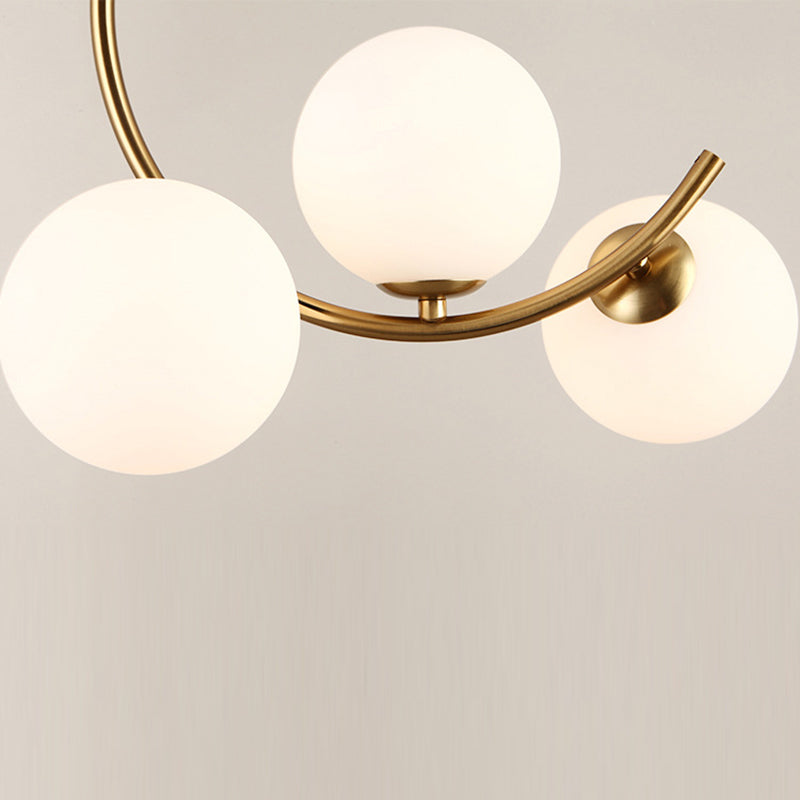 Contemporary Creative Orb Circle Iron Glass 3-Light Semi-Flush Mount Ceiling Light For Bedroom