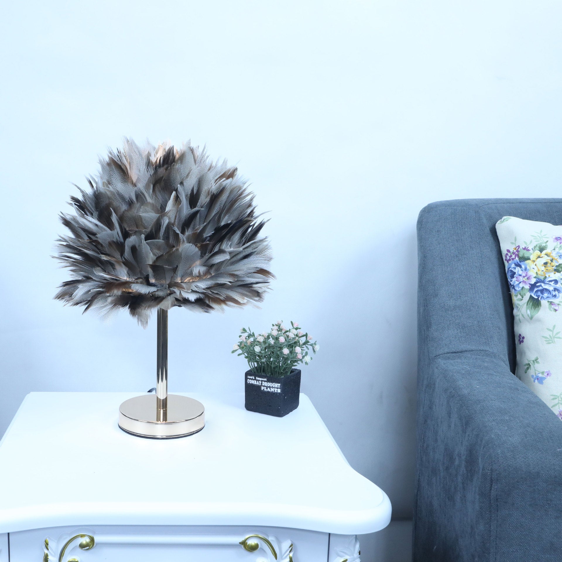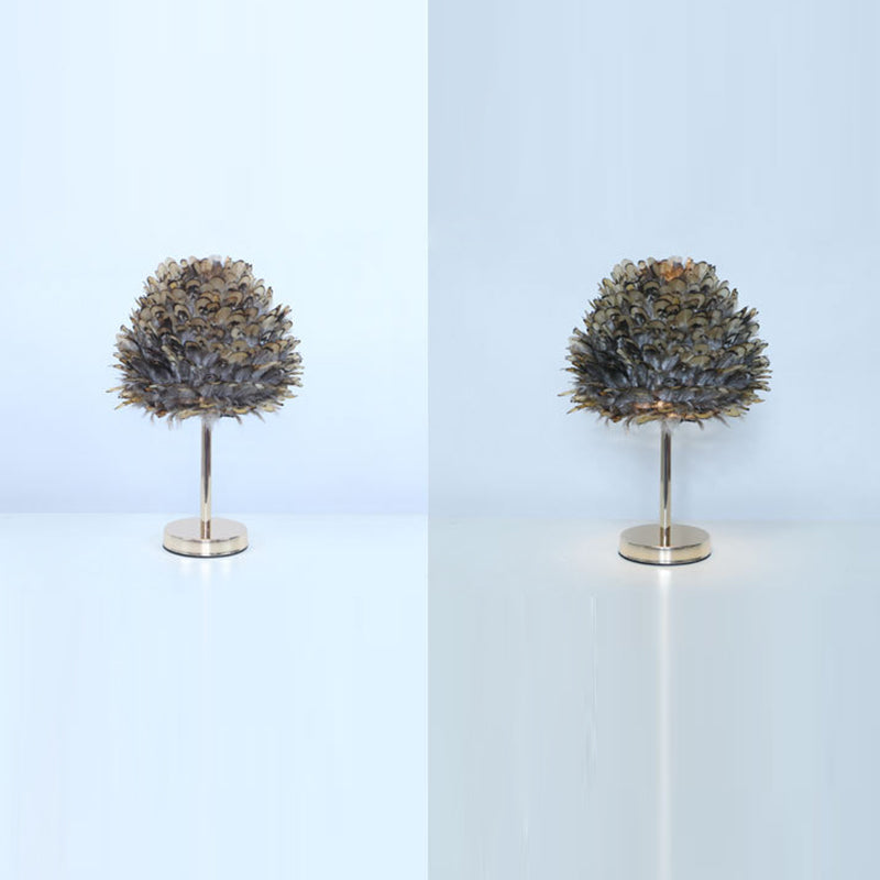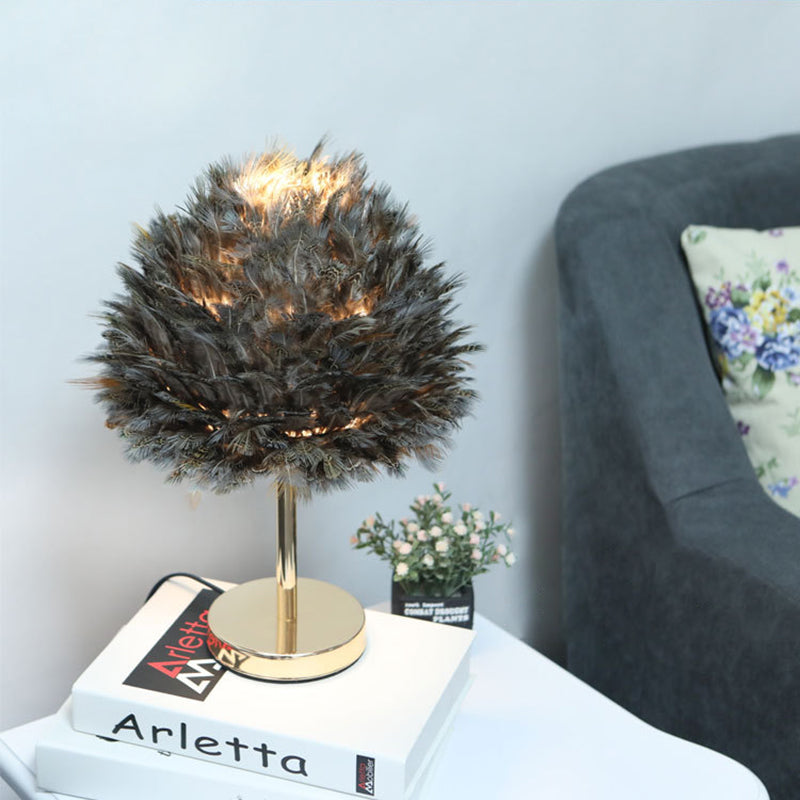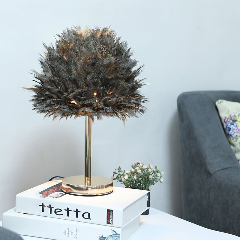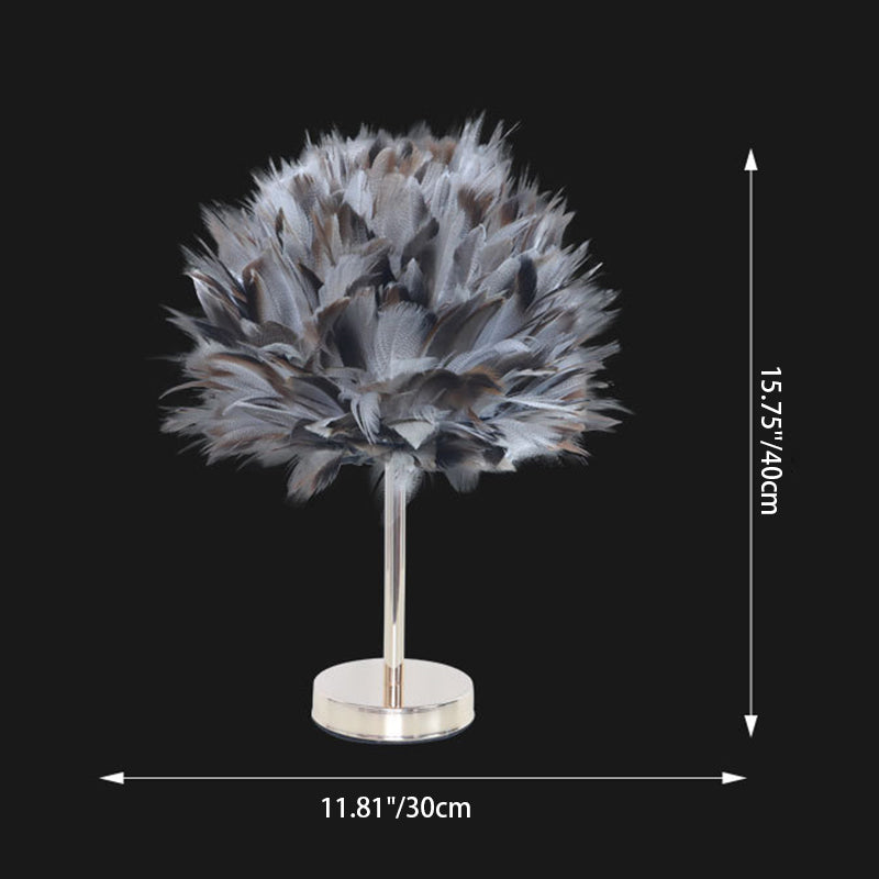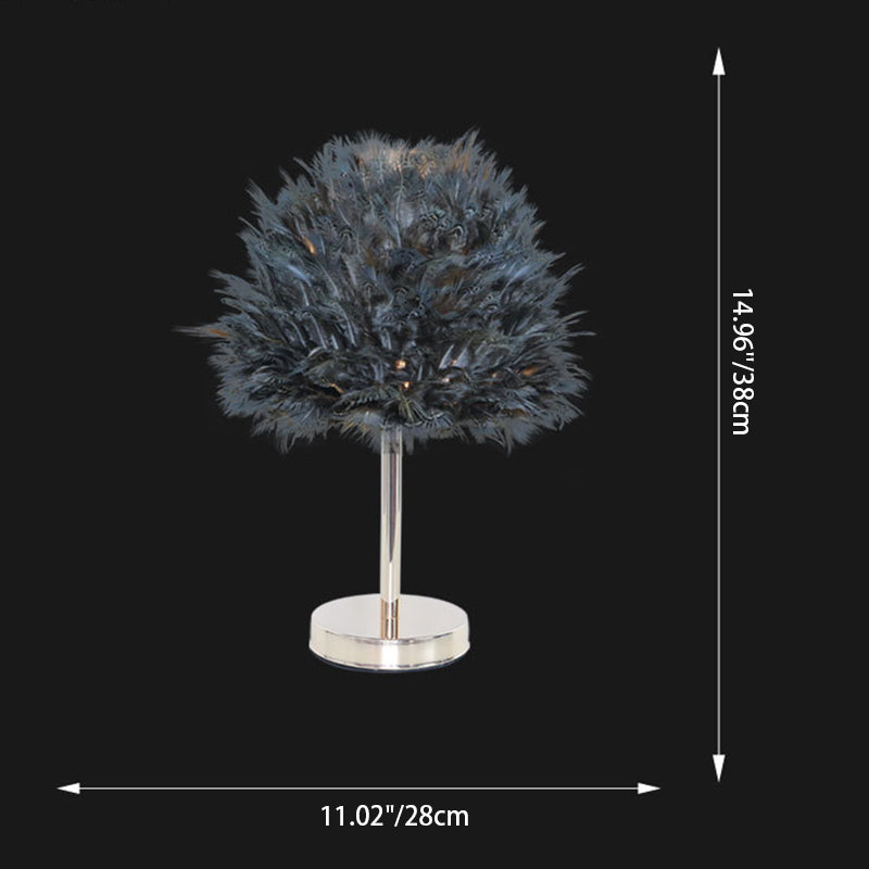 Contemporary Creative Oval Feather Iron 1-Light Table Lamp For Living Room