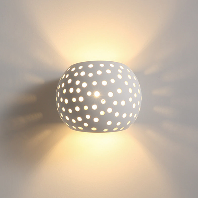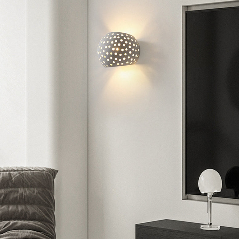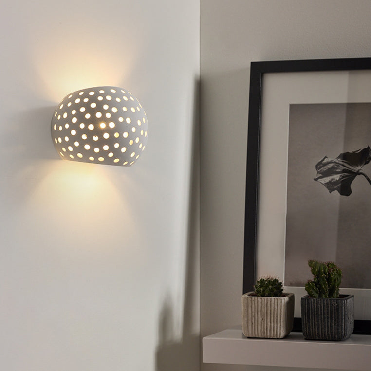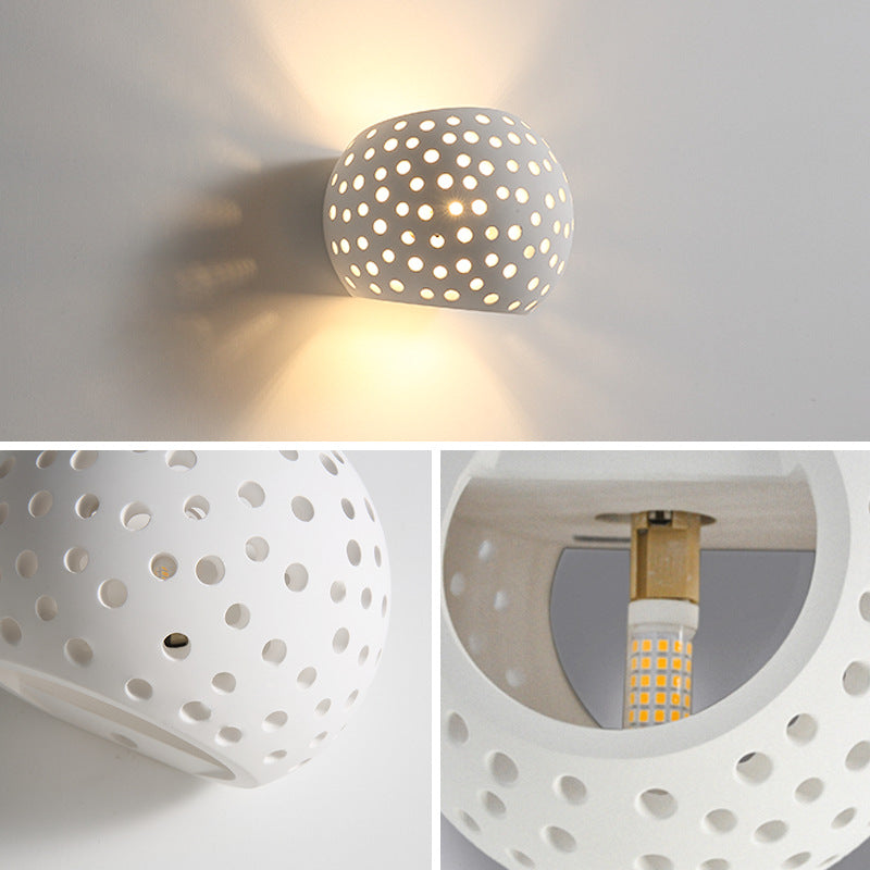 Contemporary Creative Plaster Sphere Hollowed 1-Light Wall Sconce Lamp For Bedside