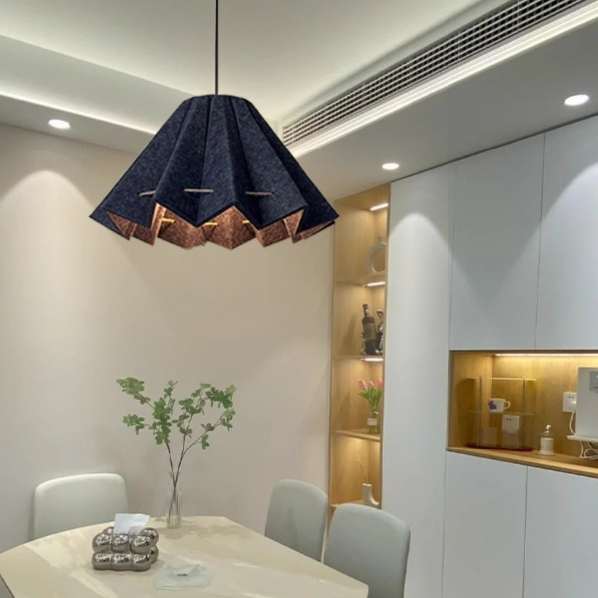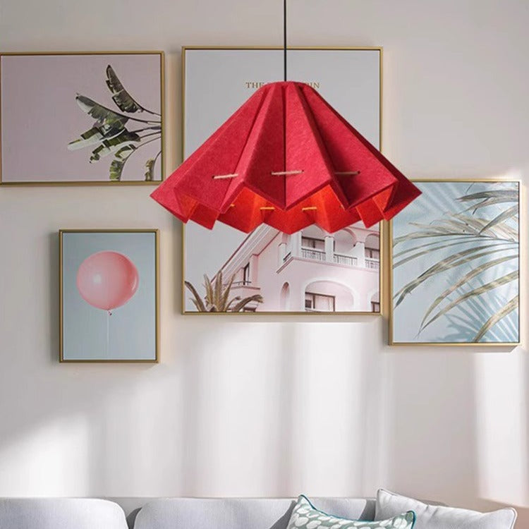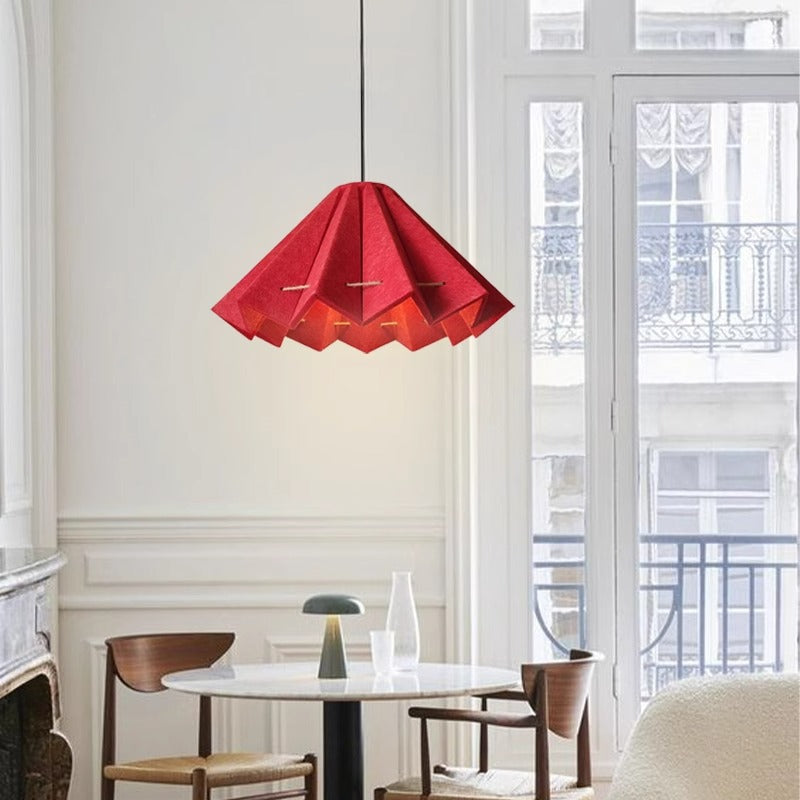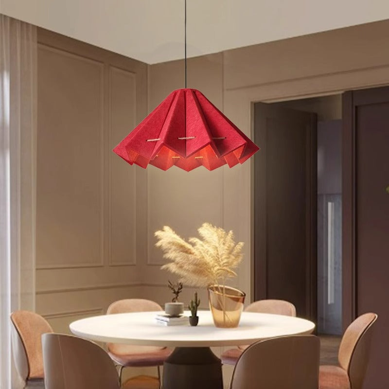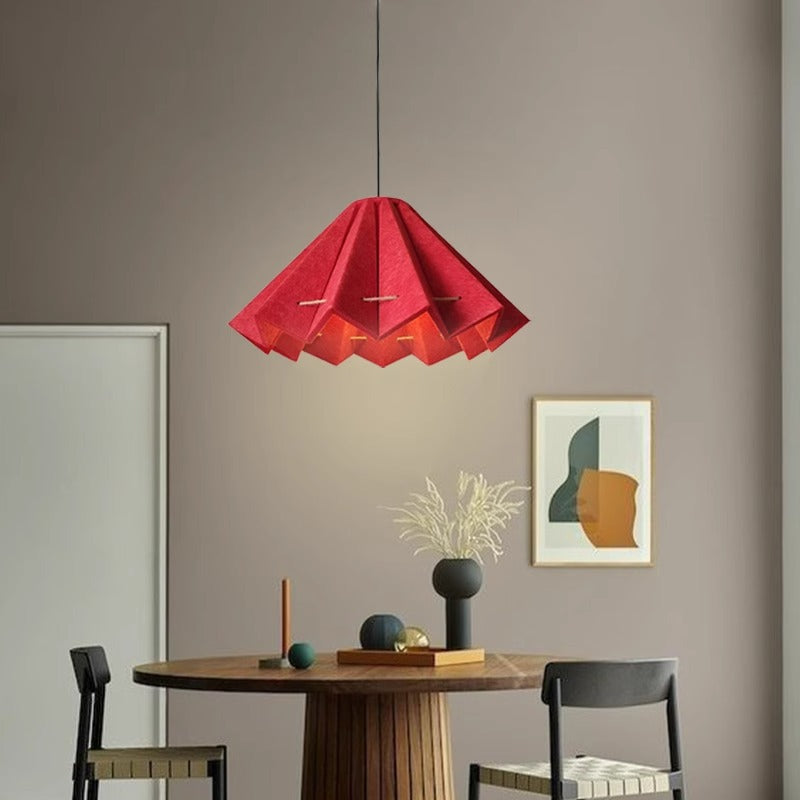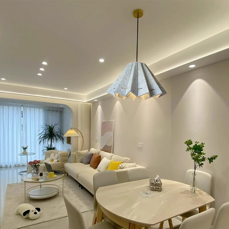 Contemporary Creative Pleated Round Rectangular Angled Aluminum Felt 1-Light Pendant Light For Living Room