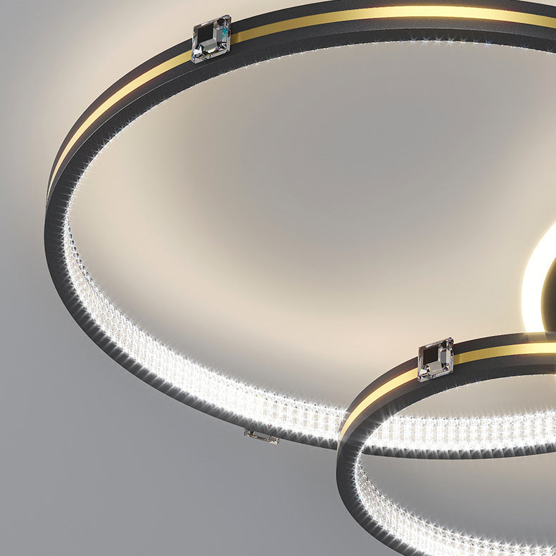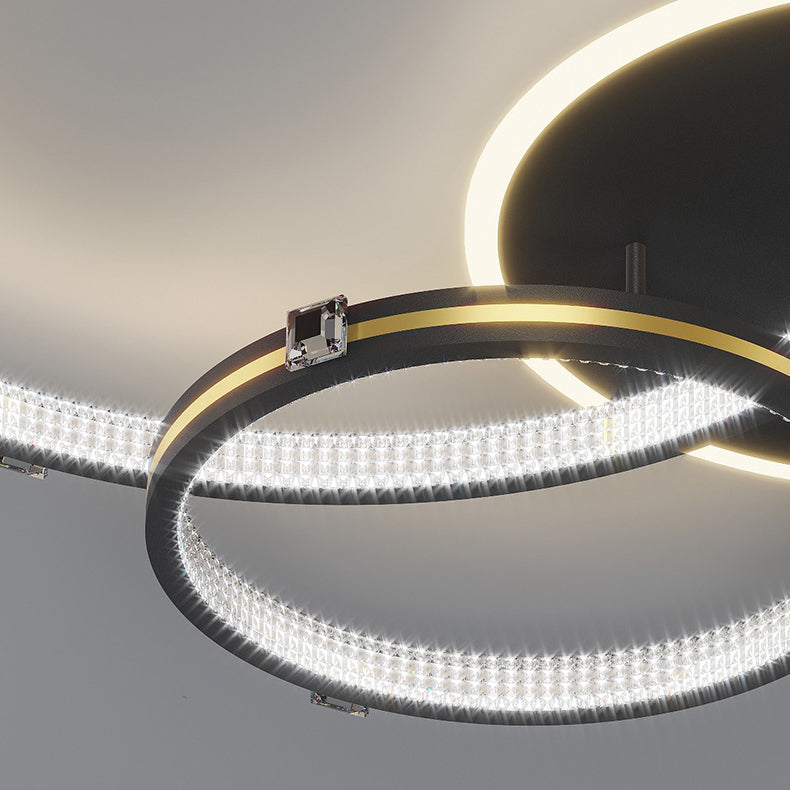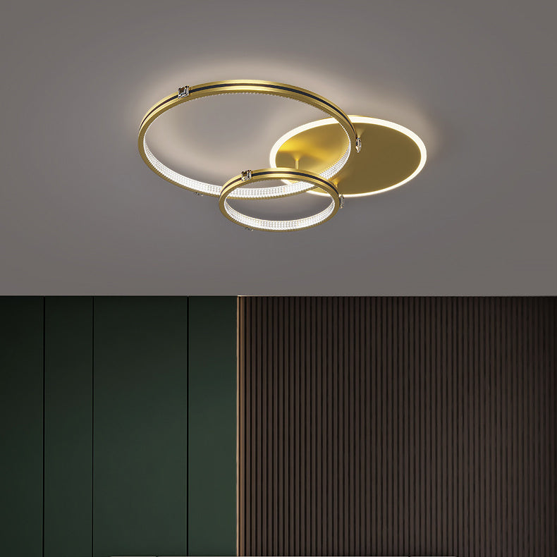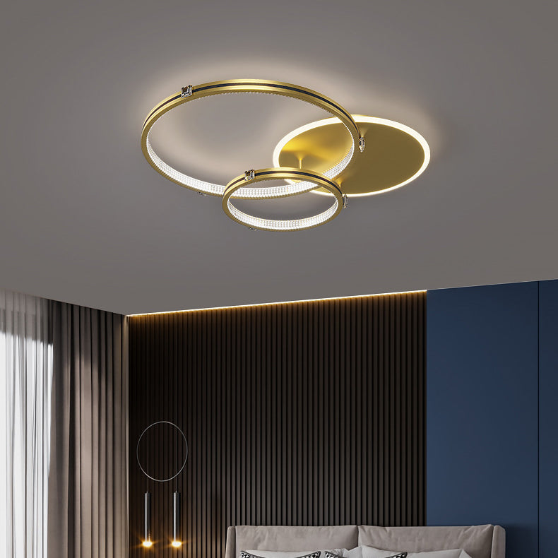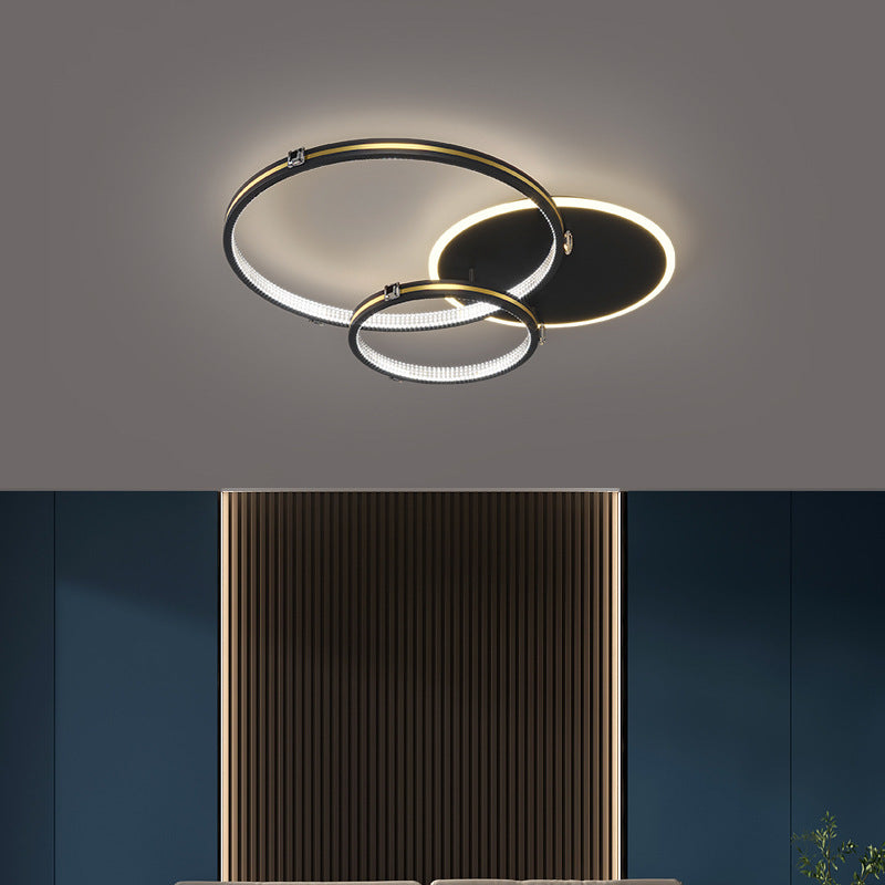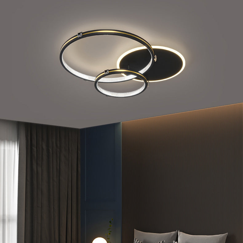 Contemporary Creative Round Circle Intersecting Iron Acrylic LED Flush Mount Ceiling Light For Bedroom