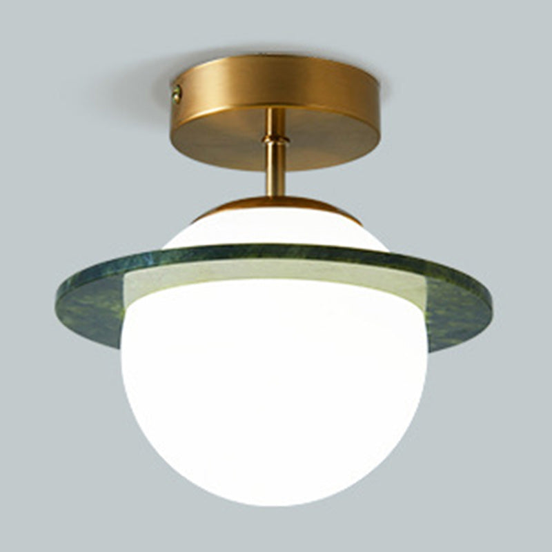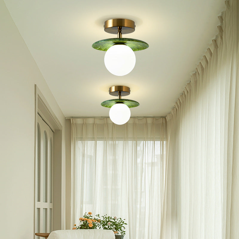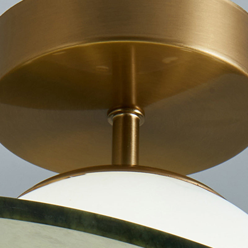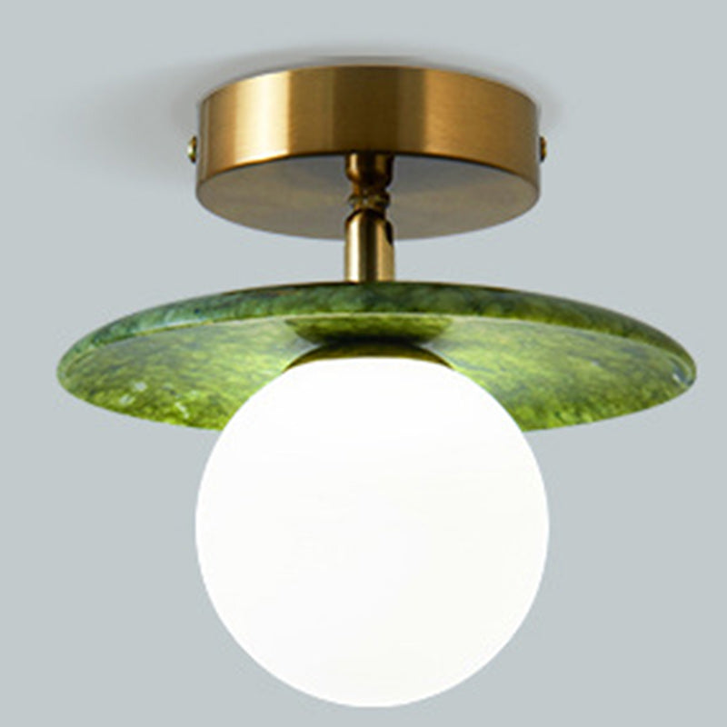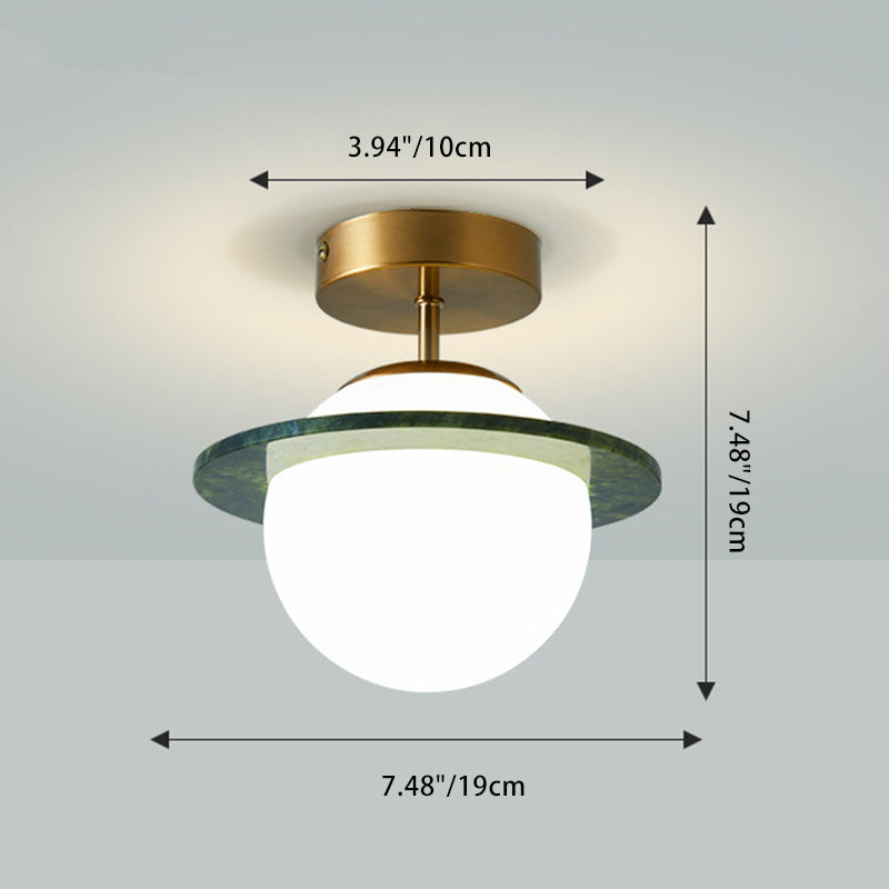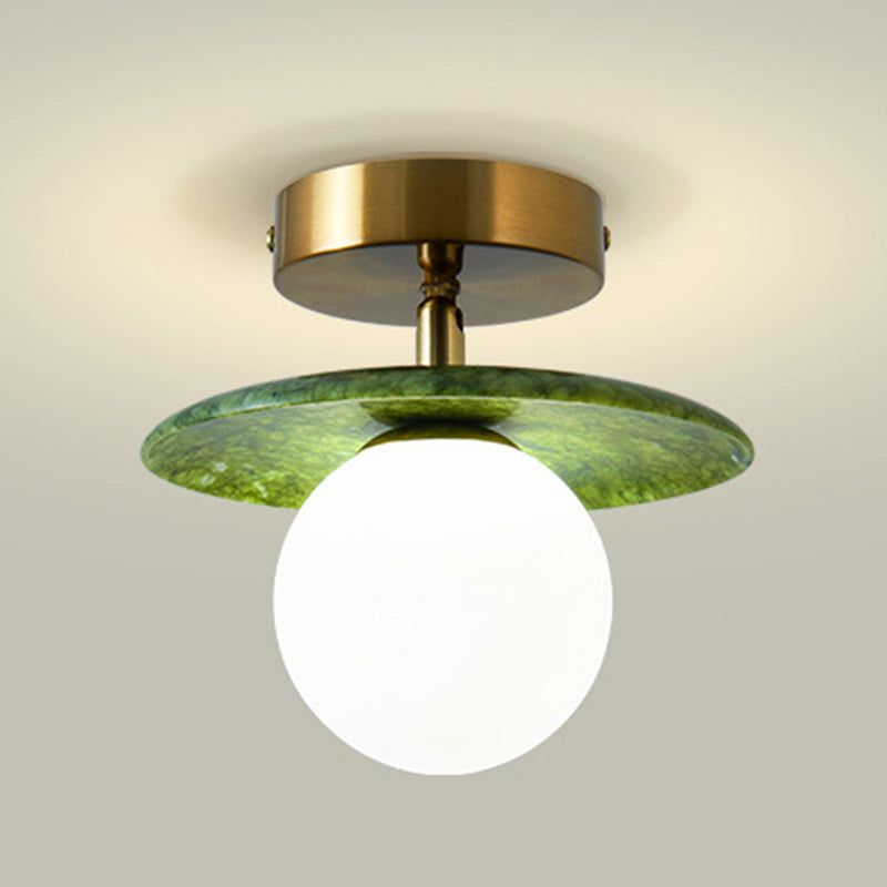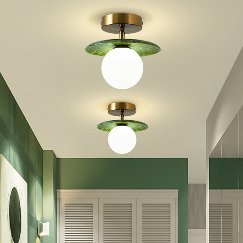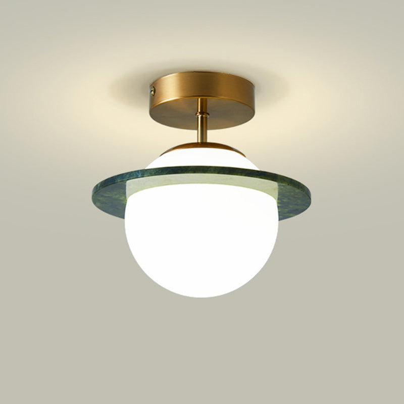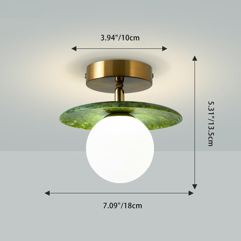 Contemporary Creative Round Orb Glass Jade Hardware 1-Light Semi-Flush Mount Ceiling Light For Living Room