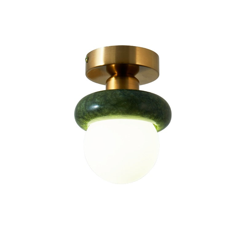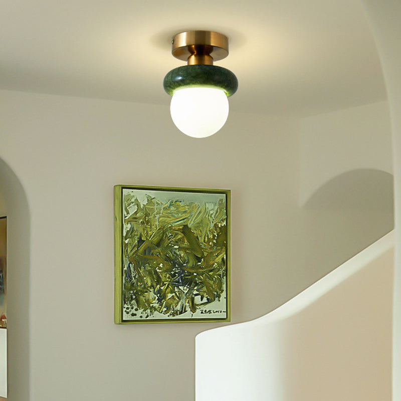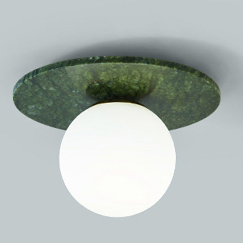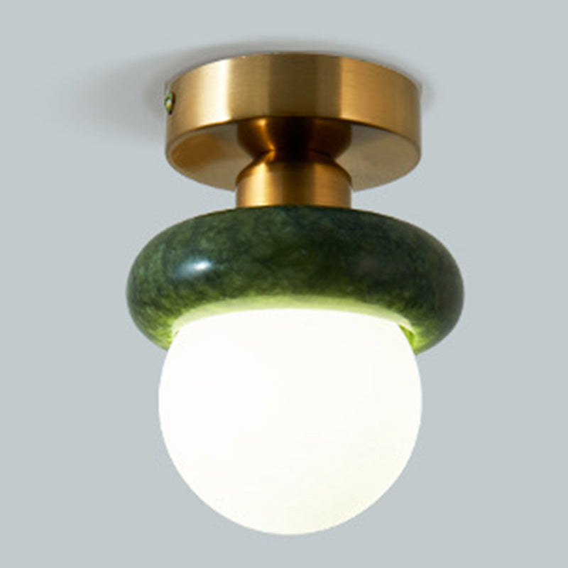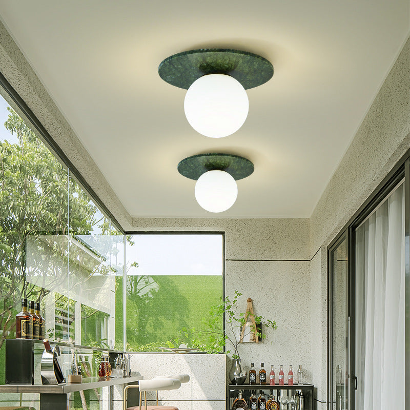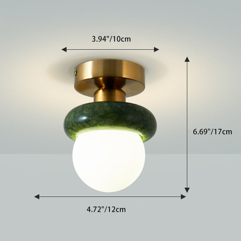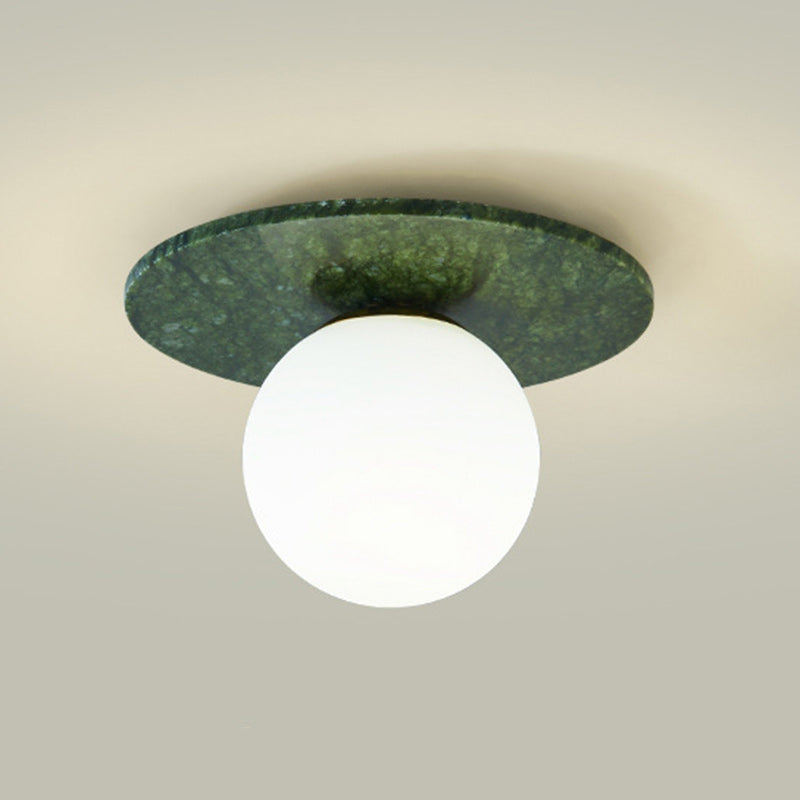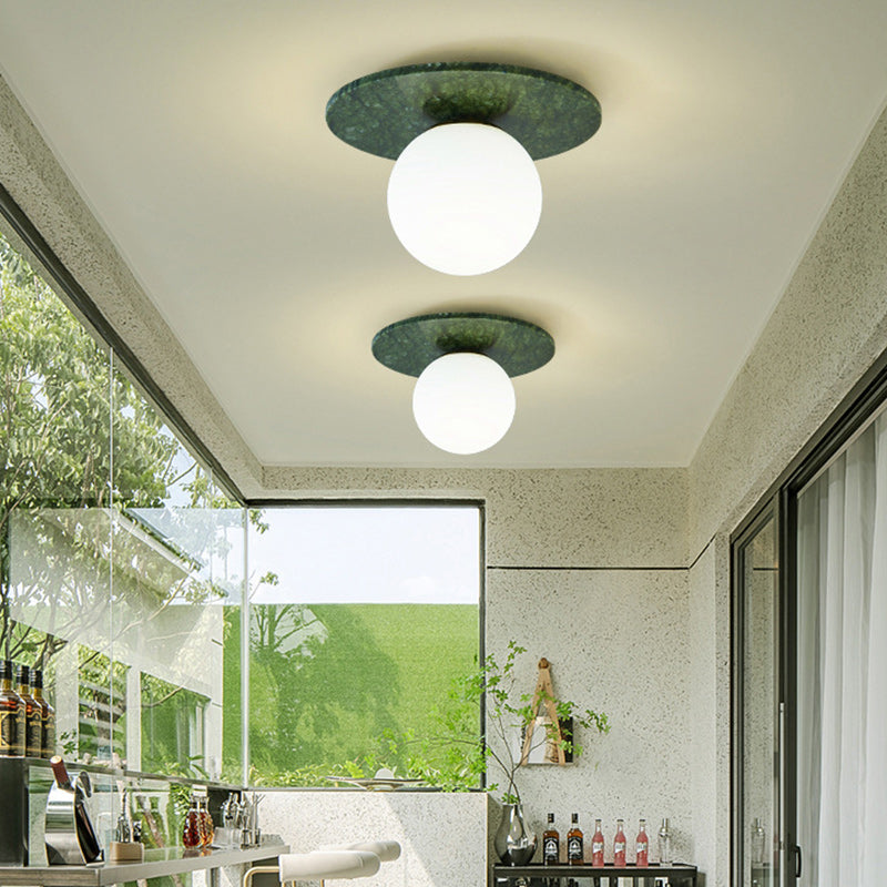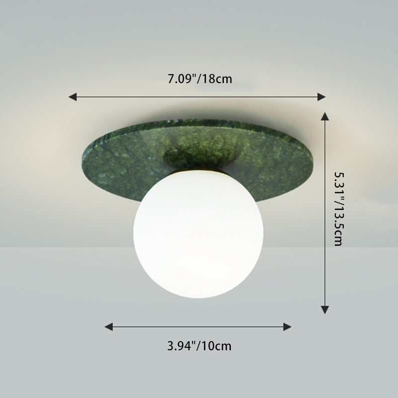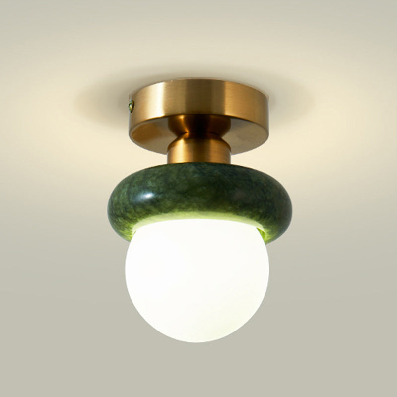 Contemporary Creative Round Orb Glass Jade Hardware 1-Light Semi-Flush Mount Ceiling Light For Living Room