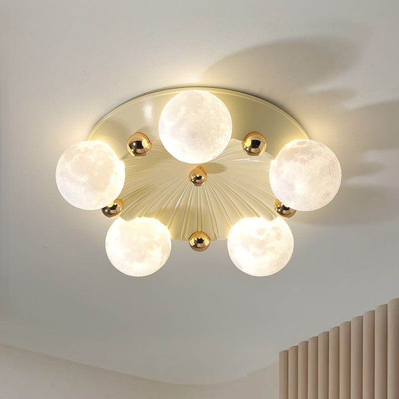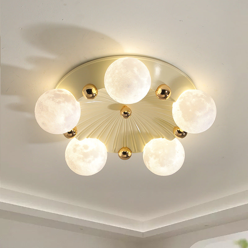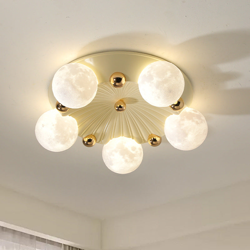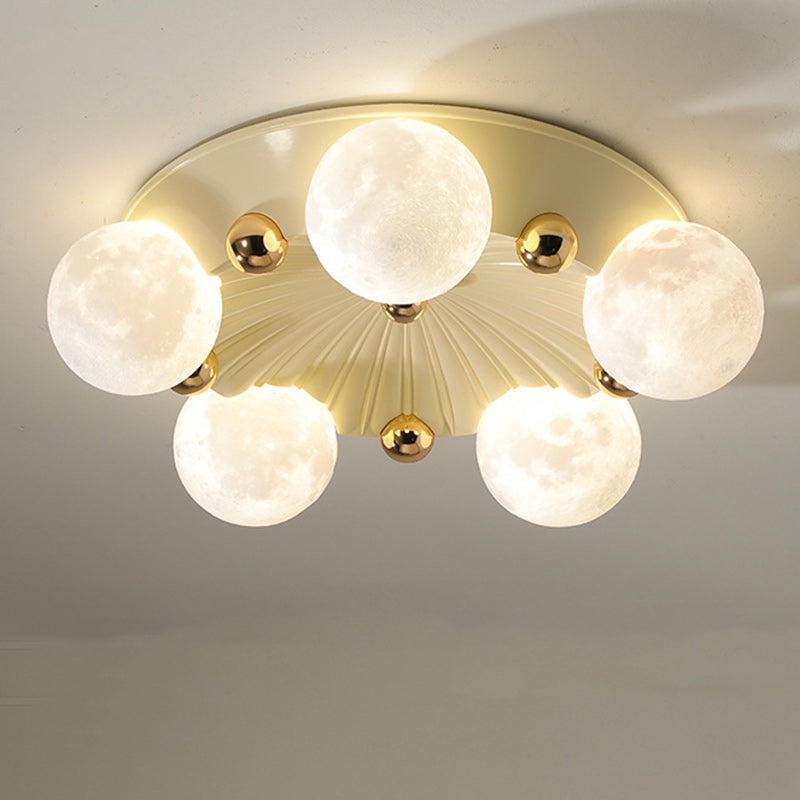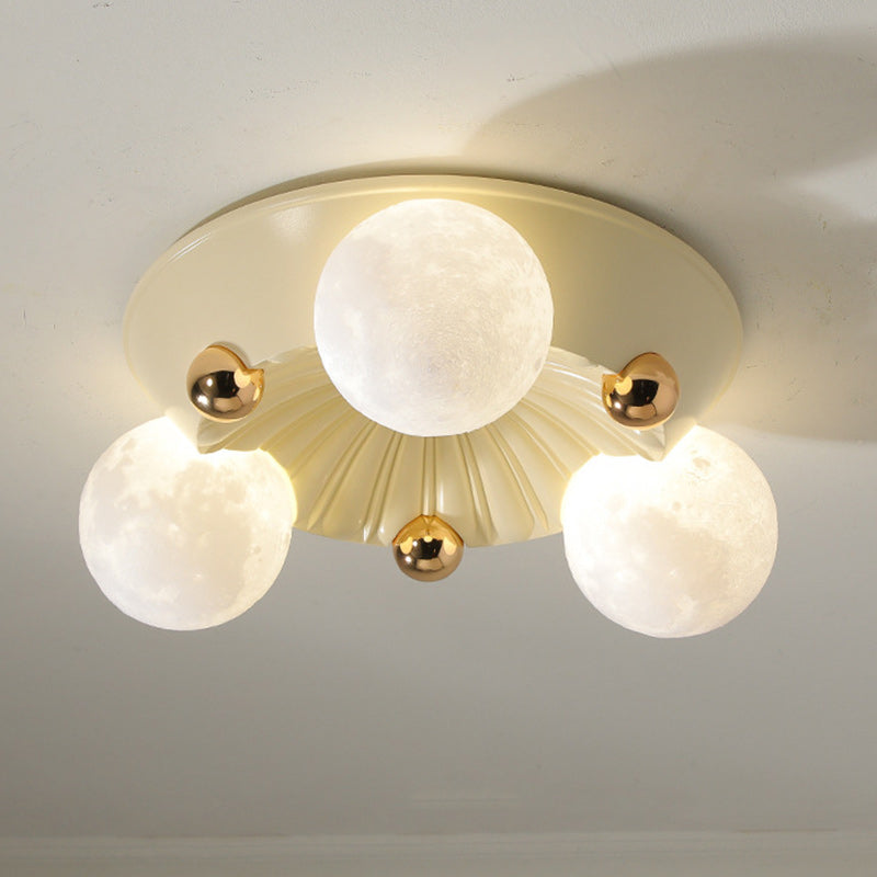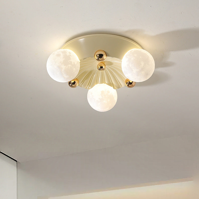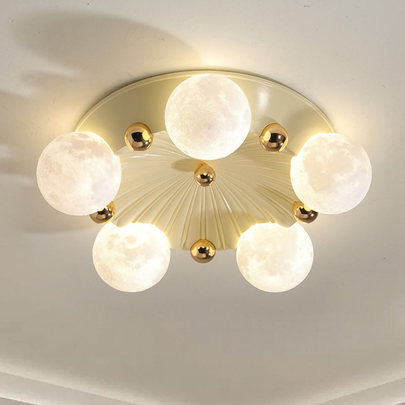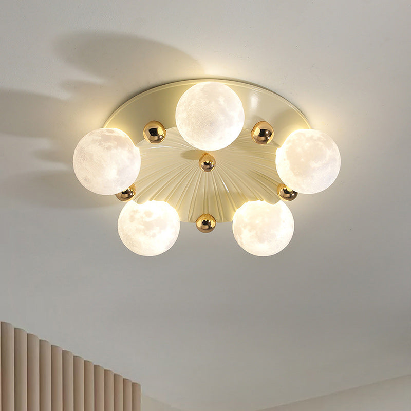 Contemporary Creative Round Orb Moon Hardware Frame Resin Shade 3/5 Light Flush Mount Ceiling Light For Bedroom