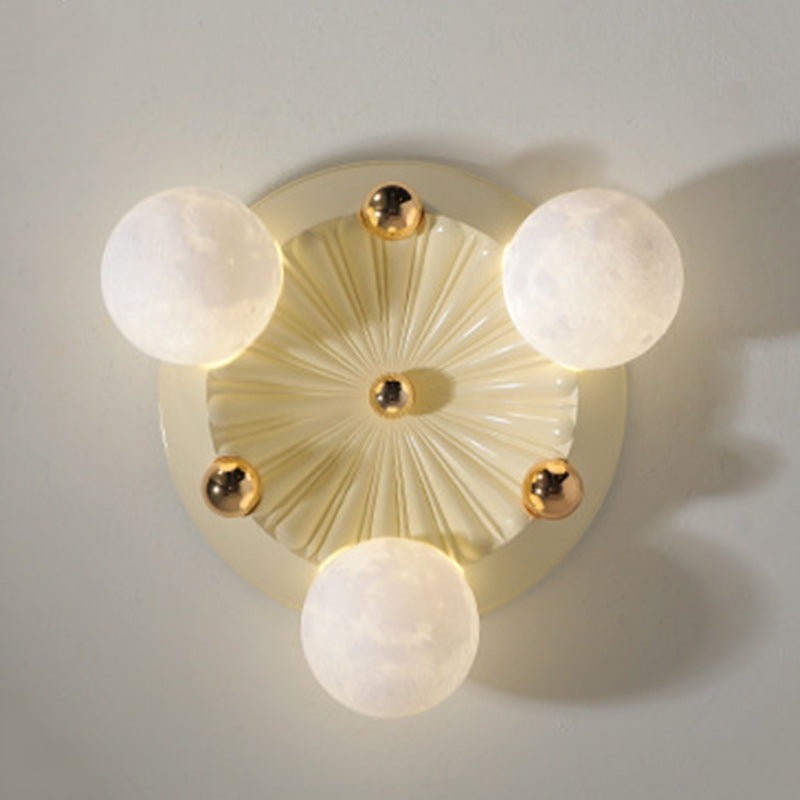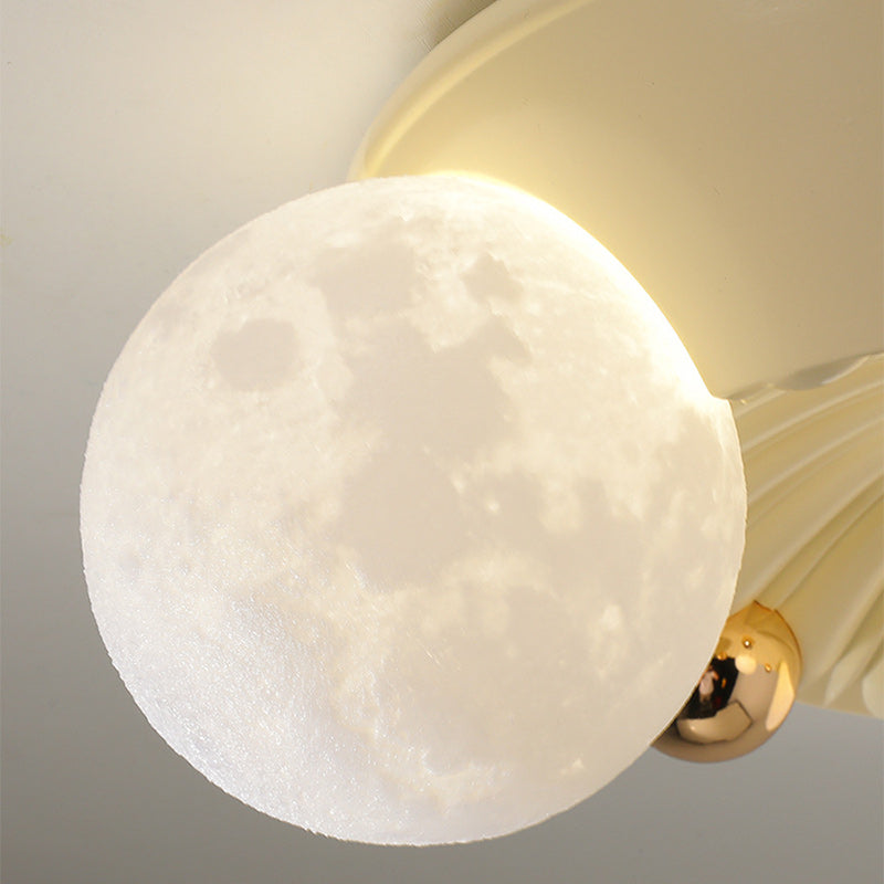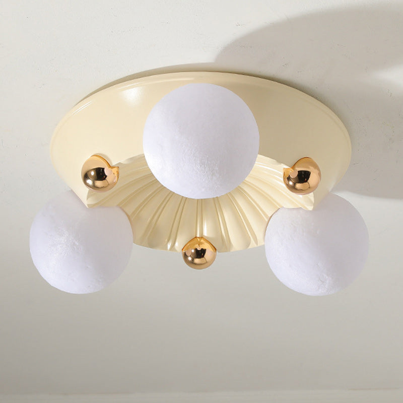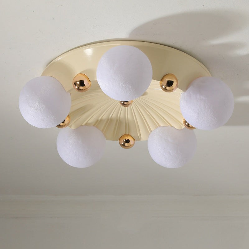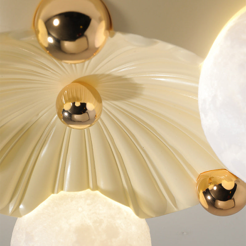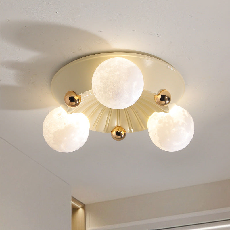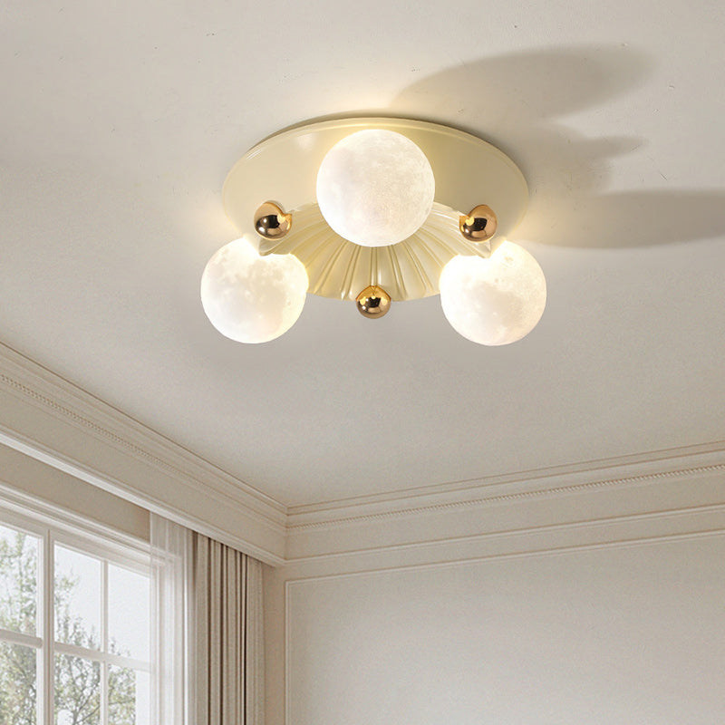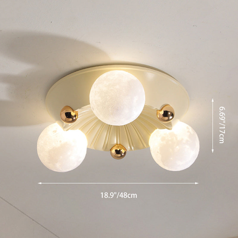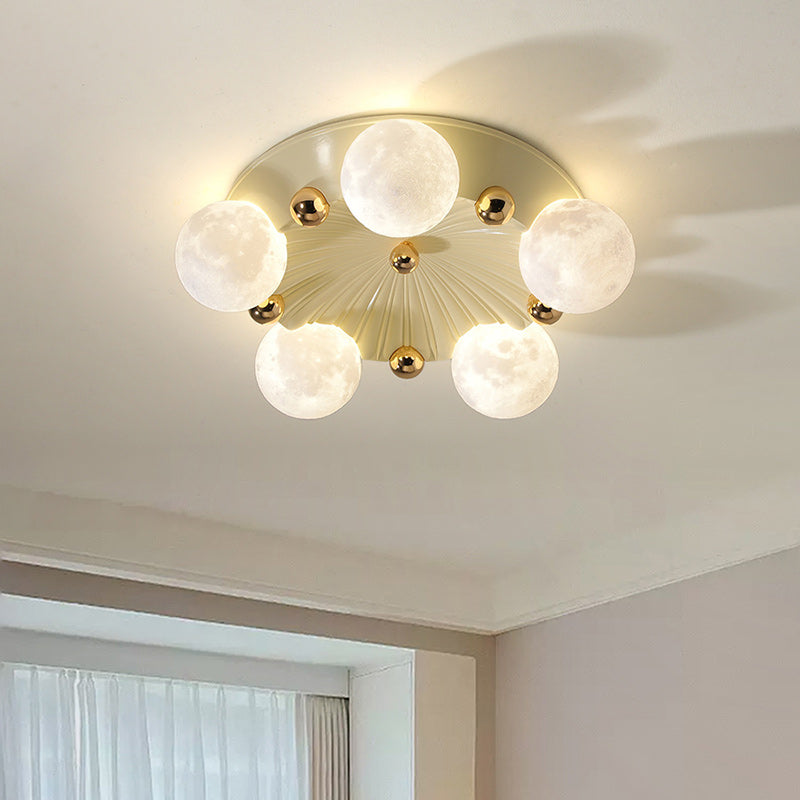 Contemporary Creative Round Orb Moon Hardware Frame Resin Shade 3/5 Light Flush Mount Ceiling Light For Bedroom