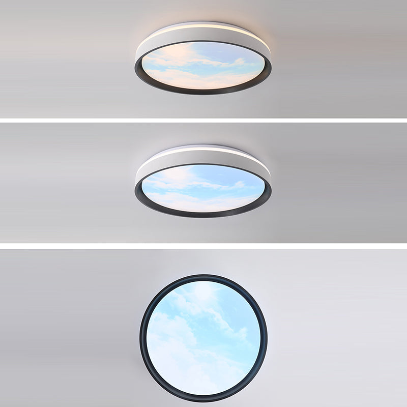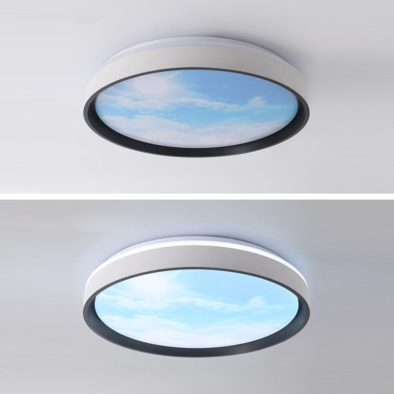 Contemporary Creative Round Sky Iron Acrylic LED Flush Mount Ceiling Light For Bedroom