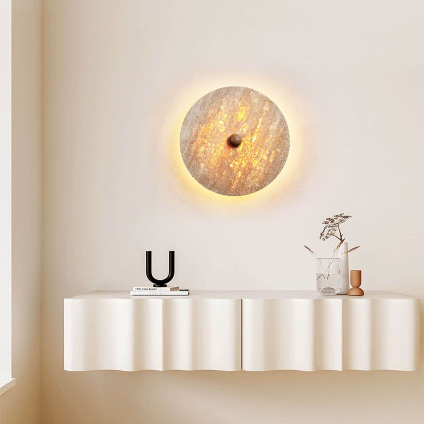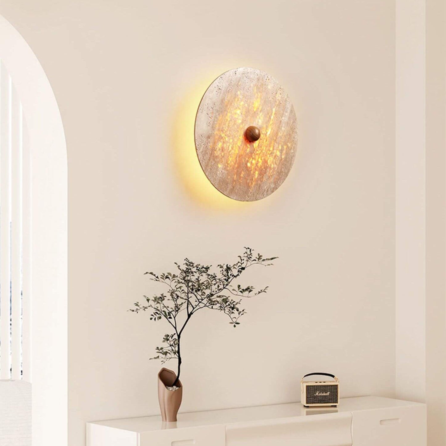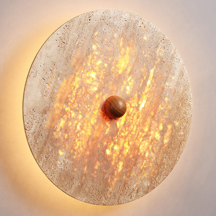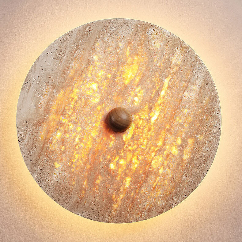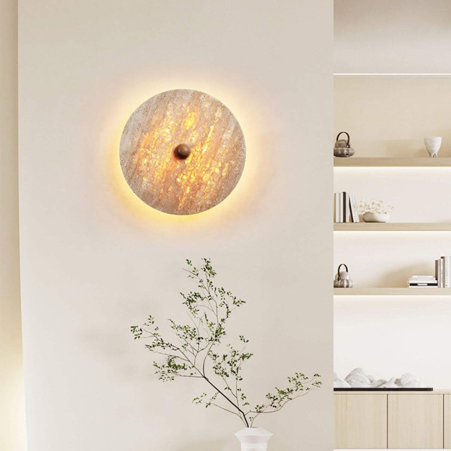 Contemporary Creative Round Yellow Travertine LED Wall Sconce Lamp For Bedroom