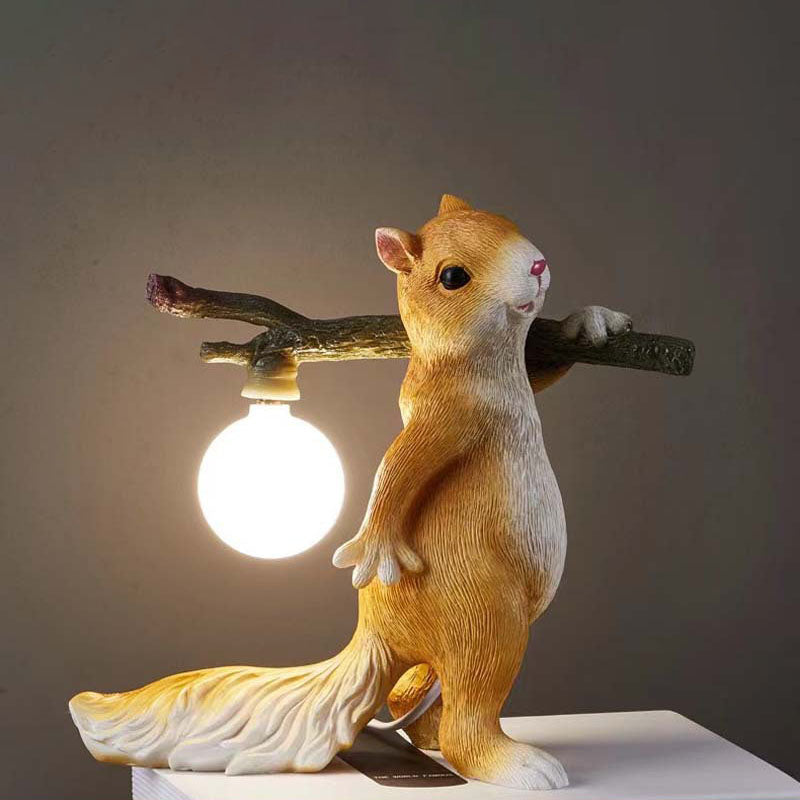 Contemporary Creative Squirrel Resin Glass 1-Light Table Lamp For Bedroom