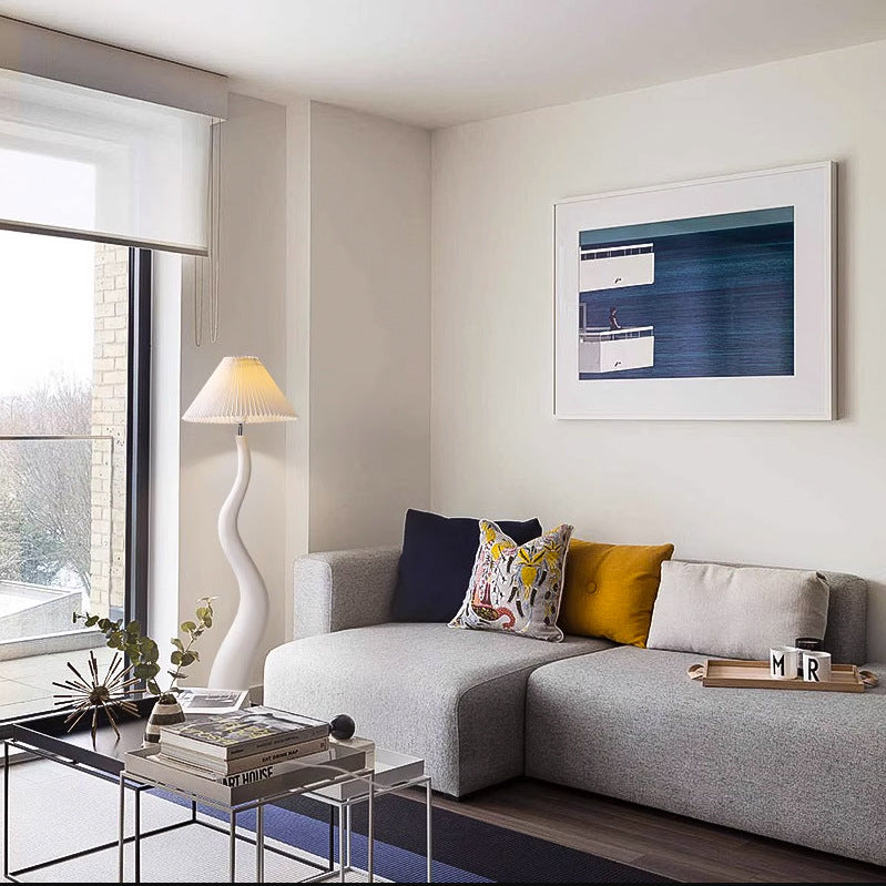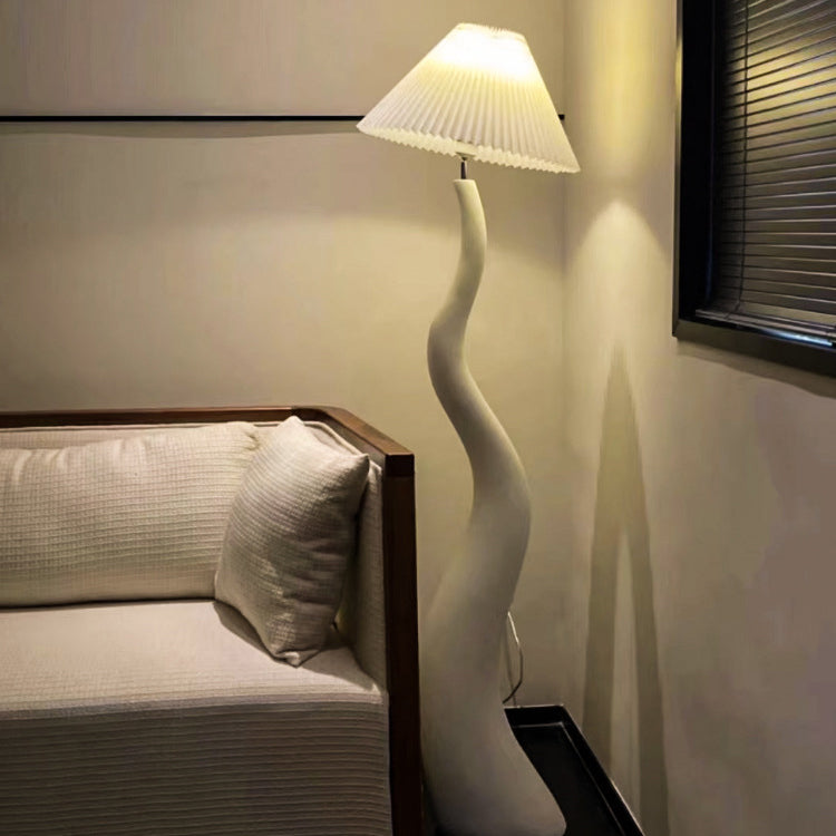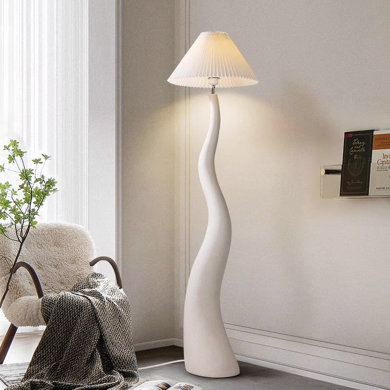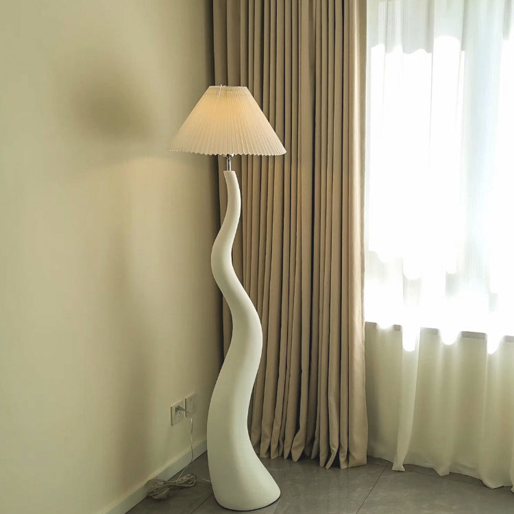Contemporary Creative Tapered Waves Resin Fabric 1-Light Standing Floor Lamp For Bedroom