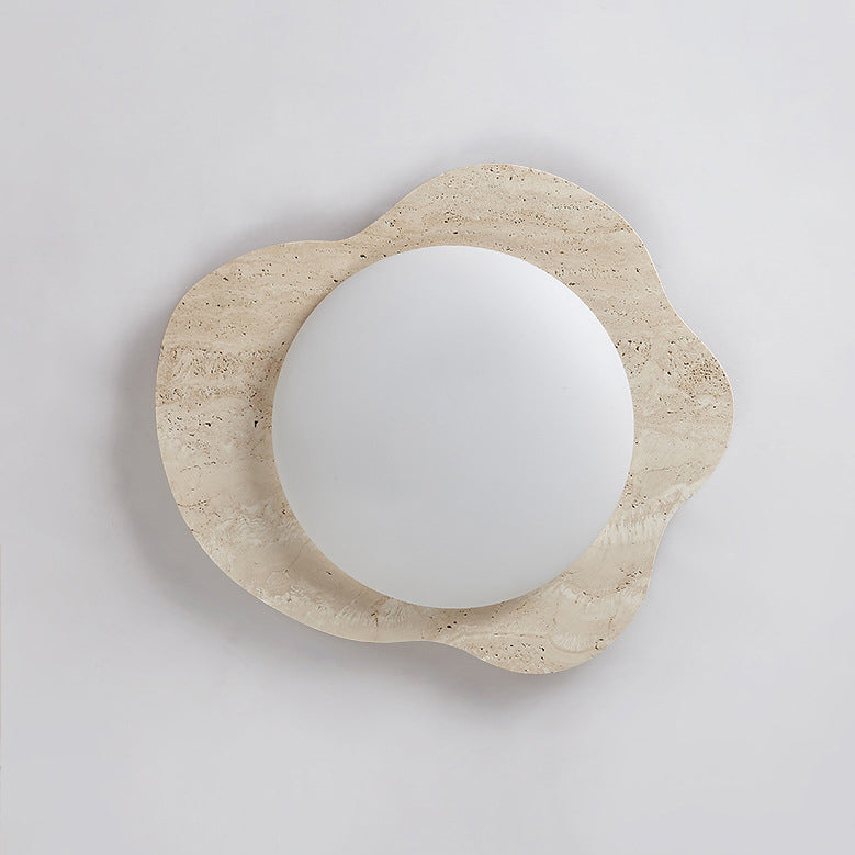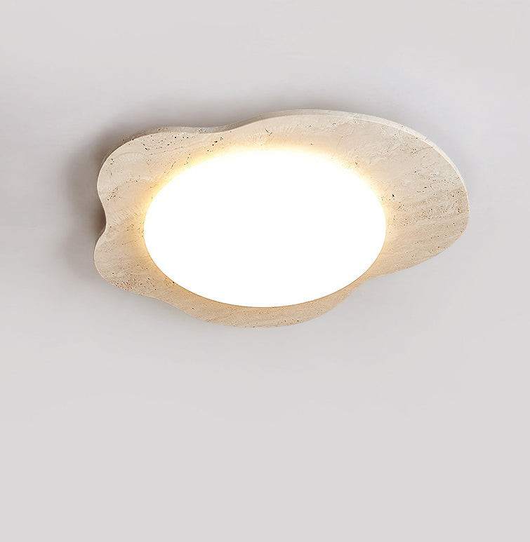 Contemporary Creative Travertine & Plastic Egg-Shaped LED Flush Mount Ceiling Light For Bedroom & Living Room