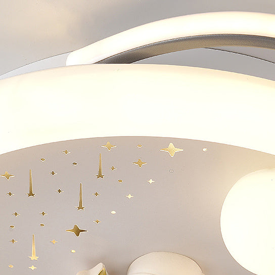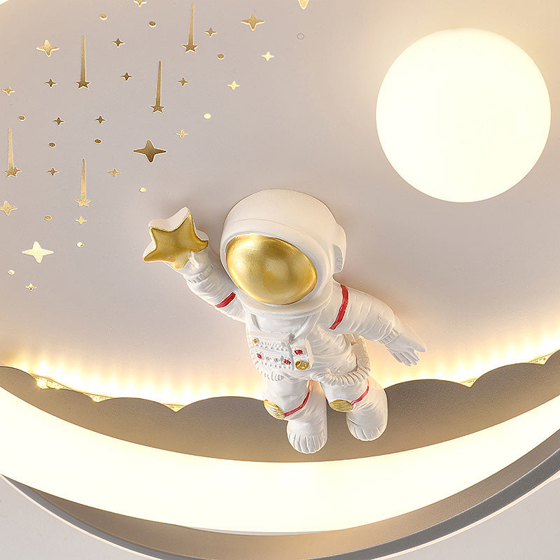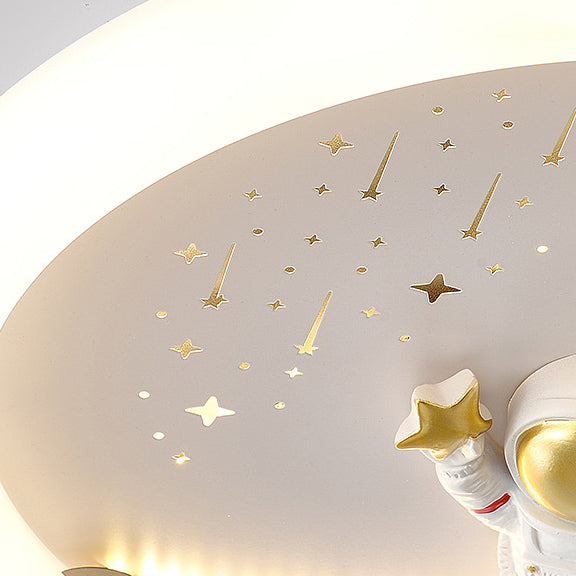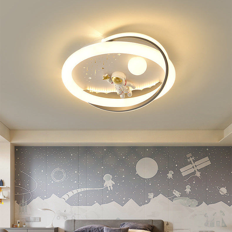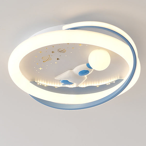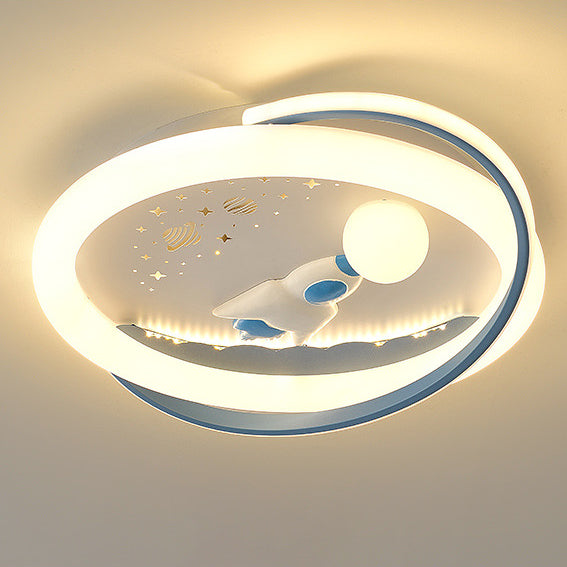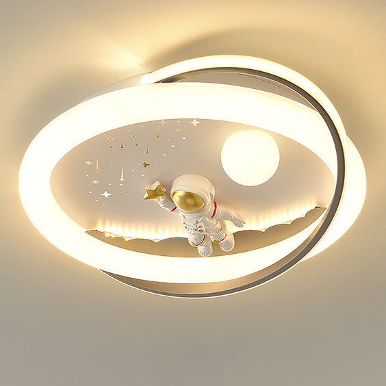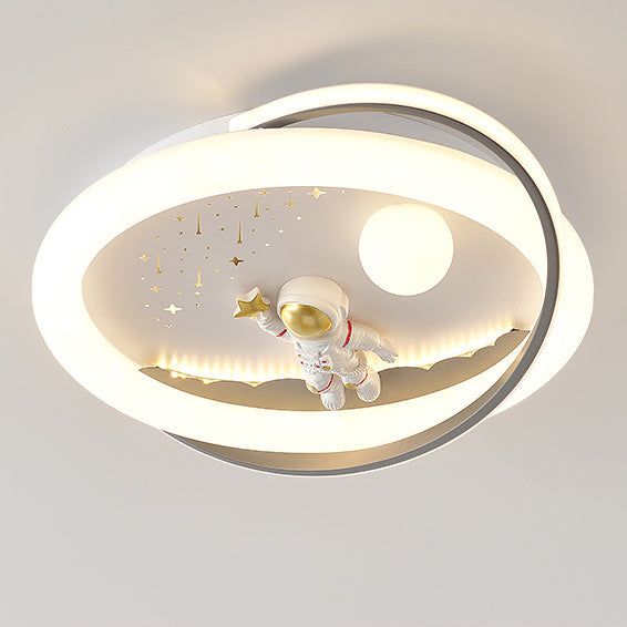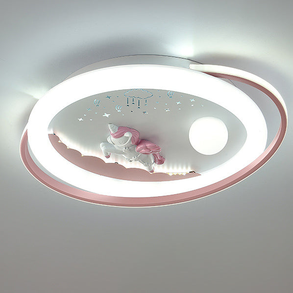 Contemporary Creative Unicorn Astronaut Rocket Round Iron Acrylic Resin LED Flush Mount Ceiling Light For Bedroom