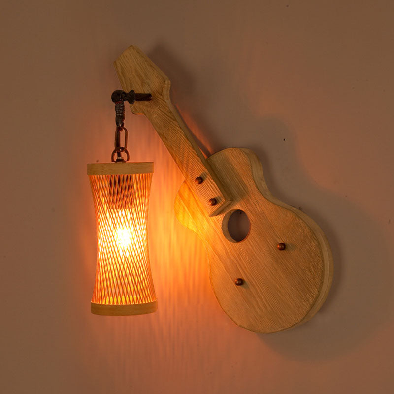 Contemporary Creative Wooden Violin Cylinder Shade 1-Light Wall Sconce Lamp For Dining Room