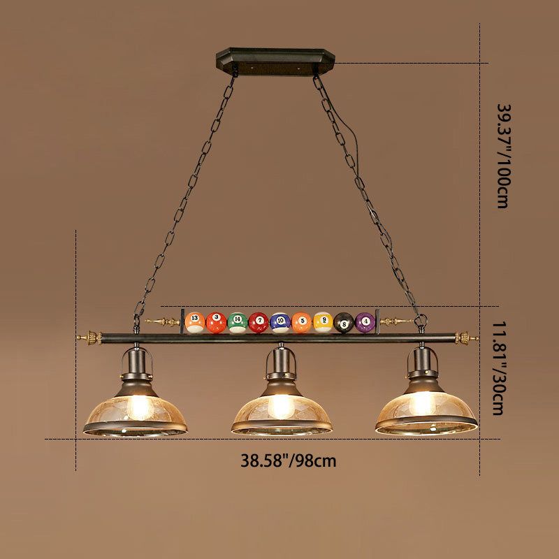 Contemporary Industrial Billiard Round Strip Iron Glass 2/3 Light Island Light Chandelier For Dining Room