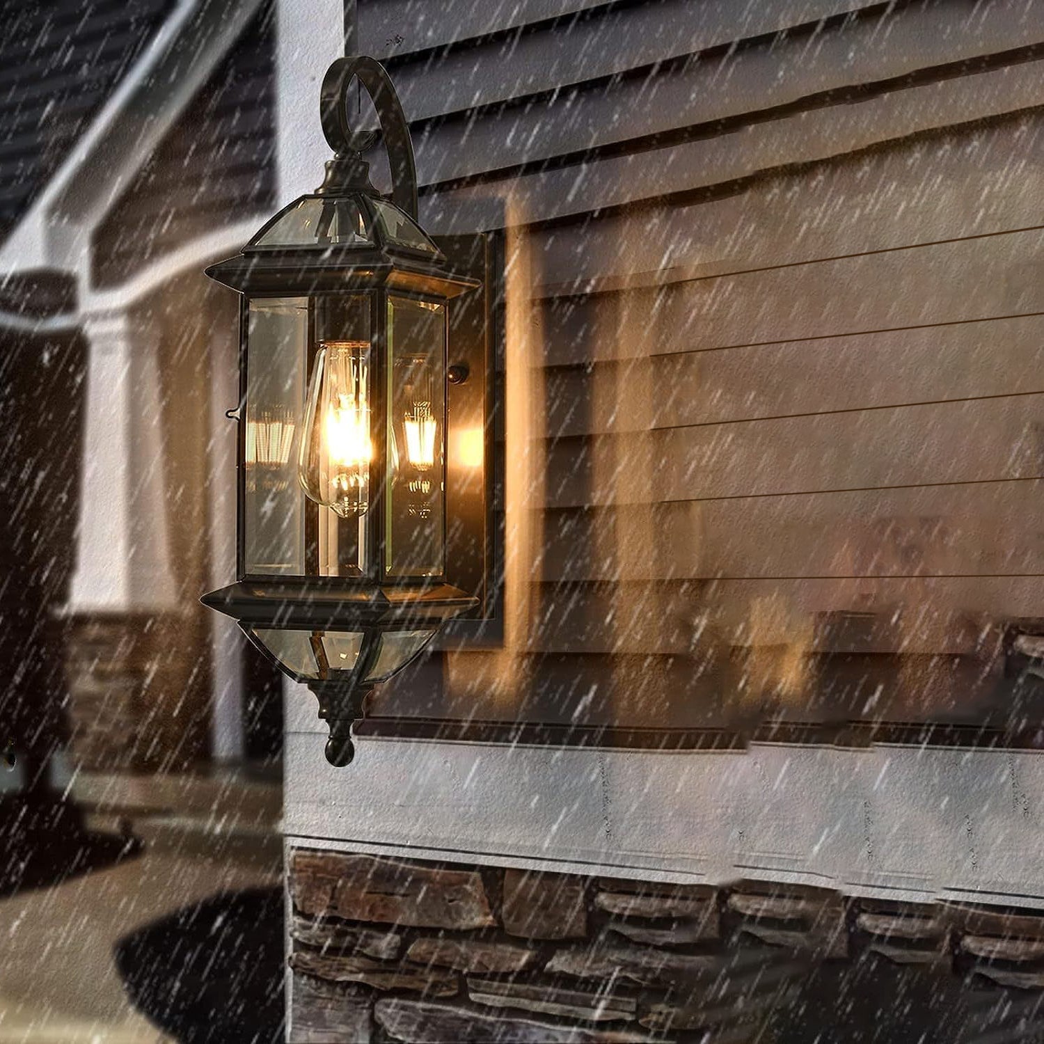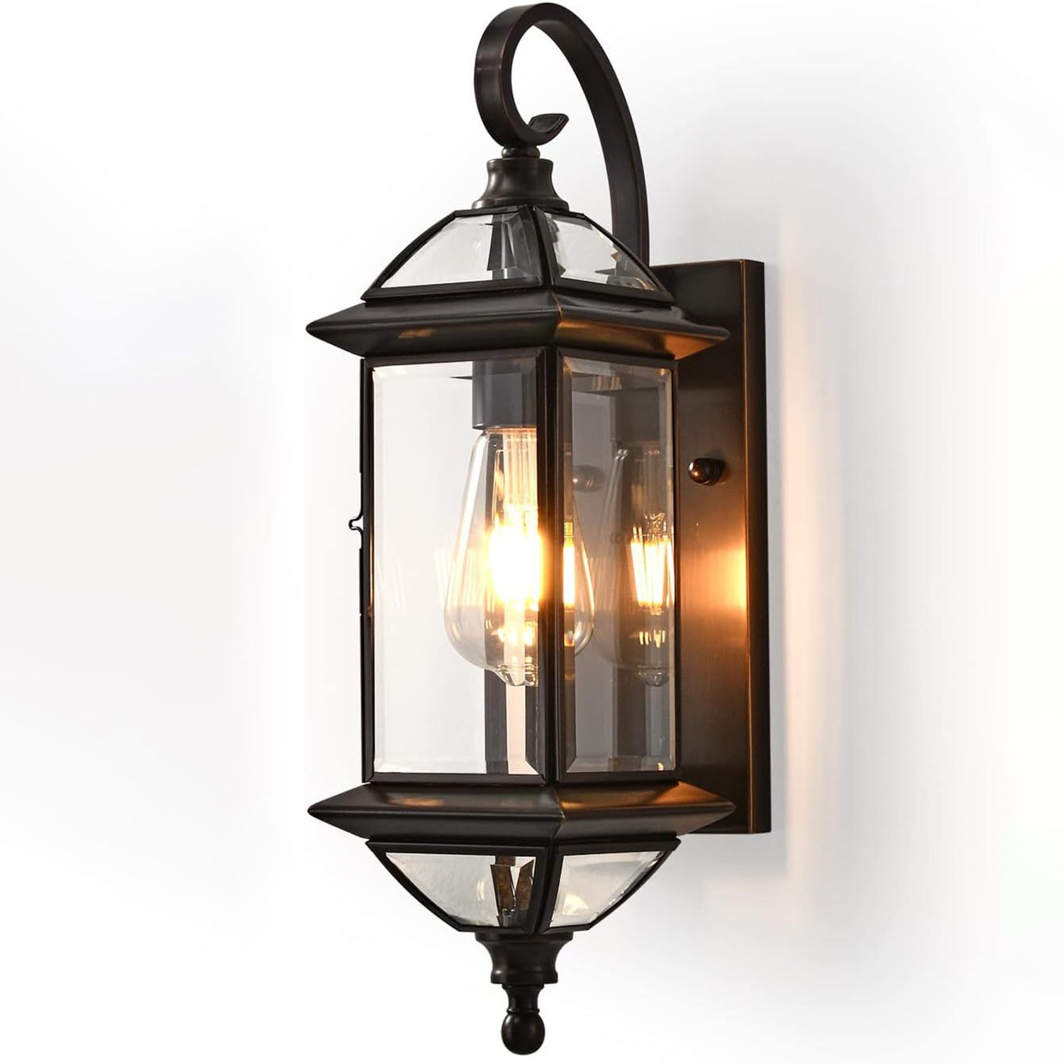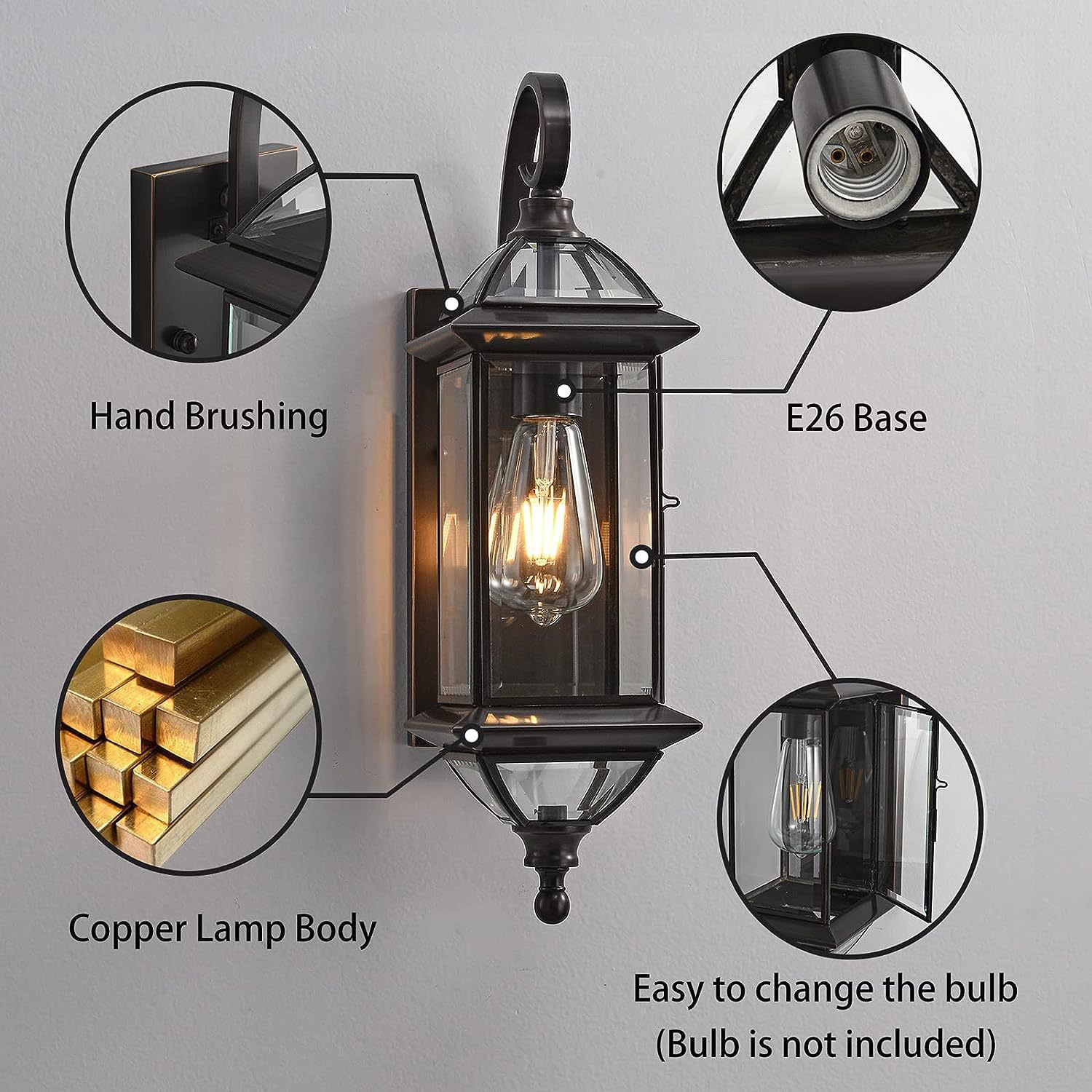 Contemporary Industrial Copper Glass Lantern 1-Light Waterproof Wall Sconce Lamp For Outdoor Patio