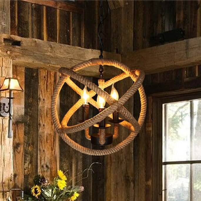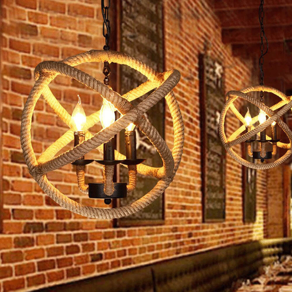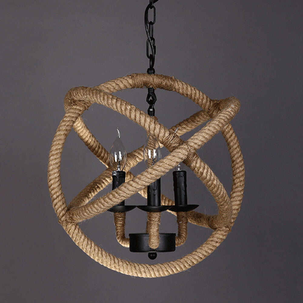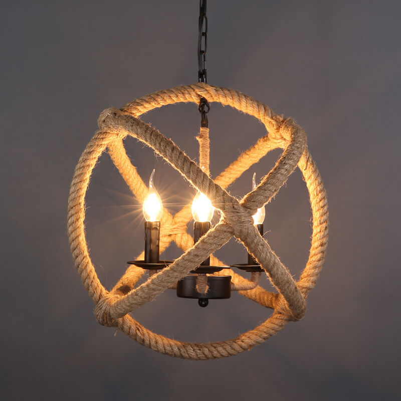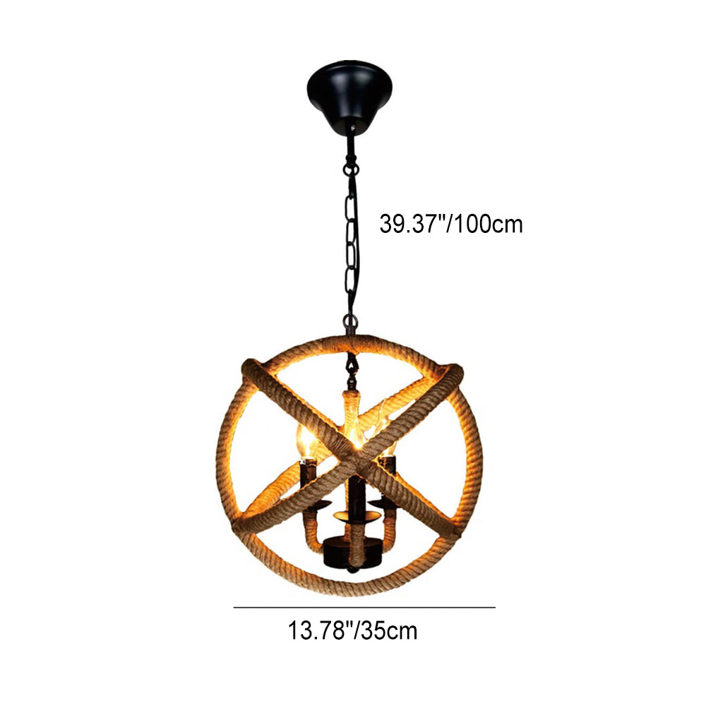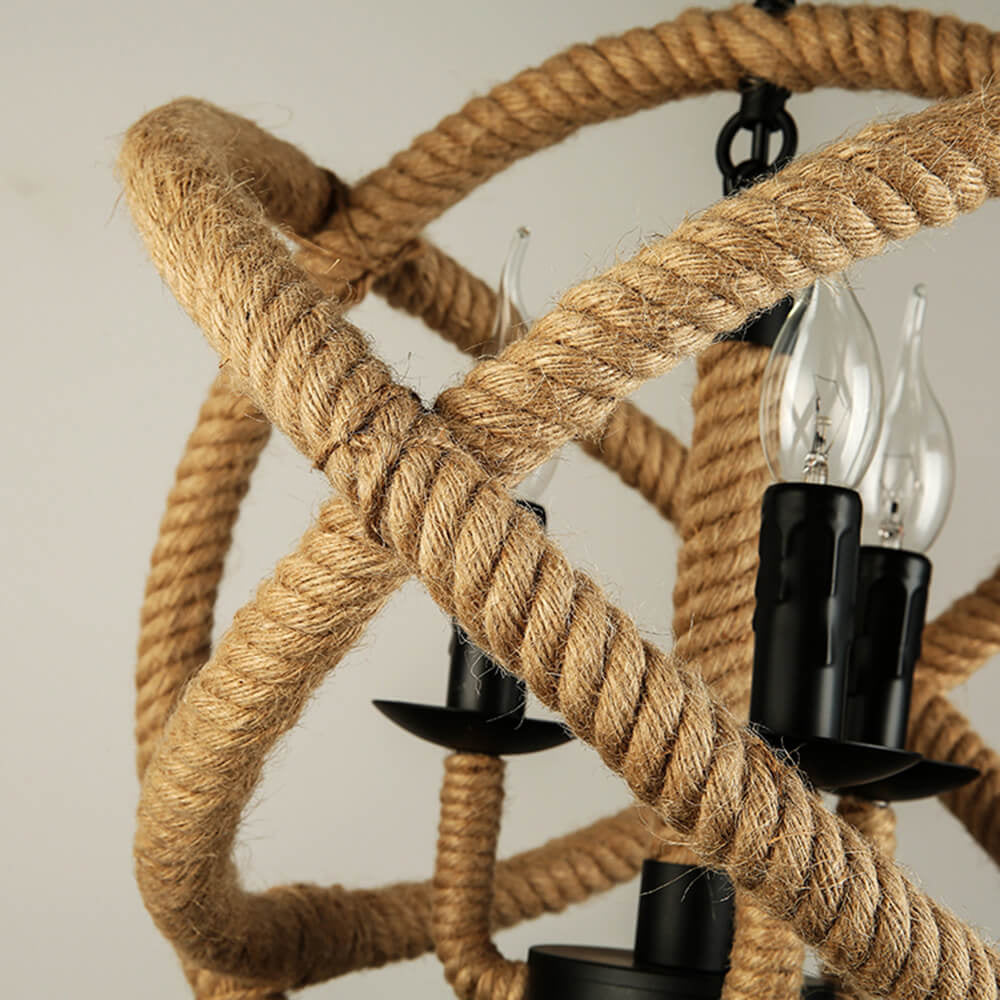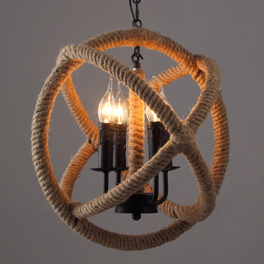Contemporary Industrial Hemp Rope Round 4-Light Pendant Light For Dining Room