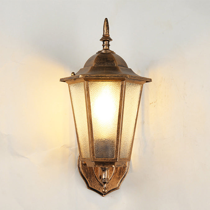 Contemporary Industrial Hexagonal Aluminum Frame Frosted Glass 1-Light Outdoor Wall Sconce Lamp For Garden