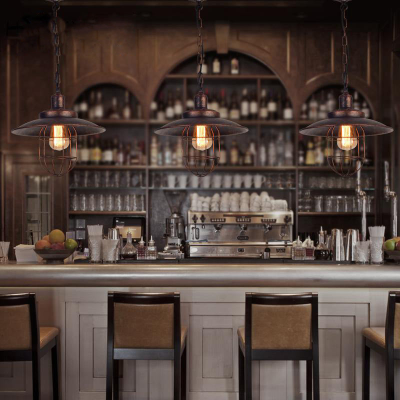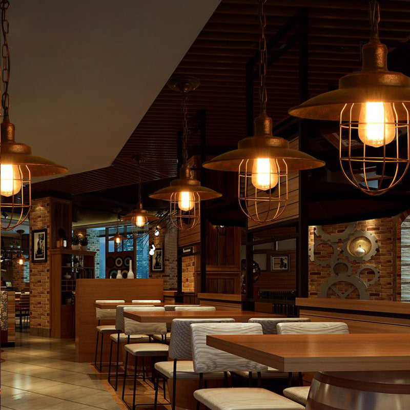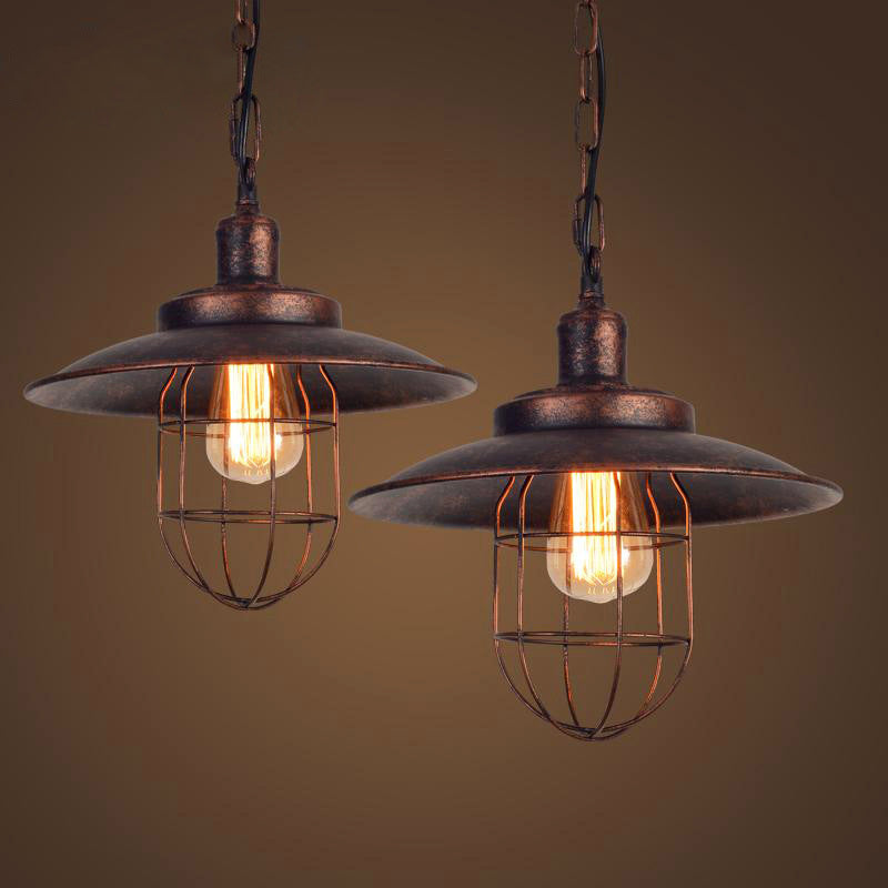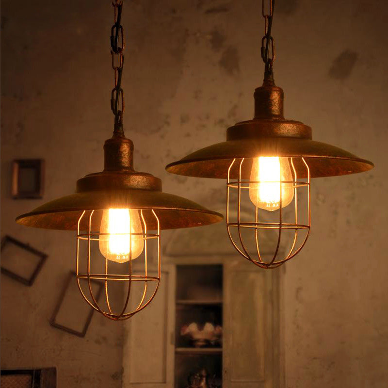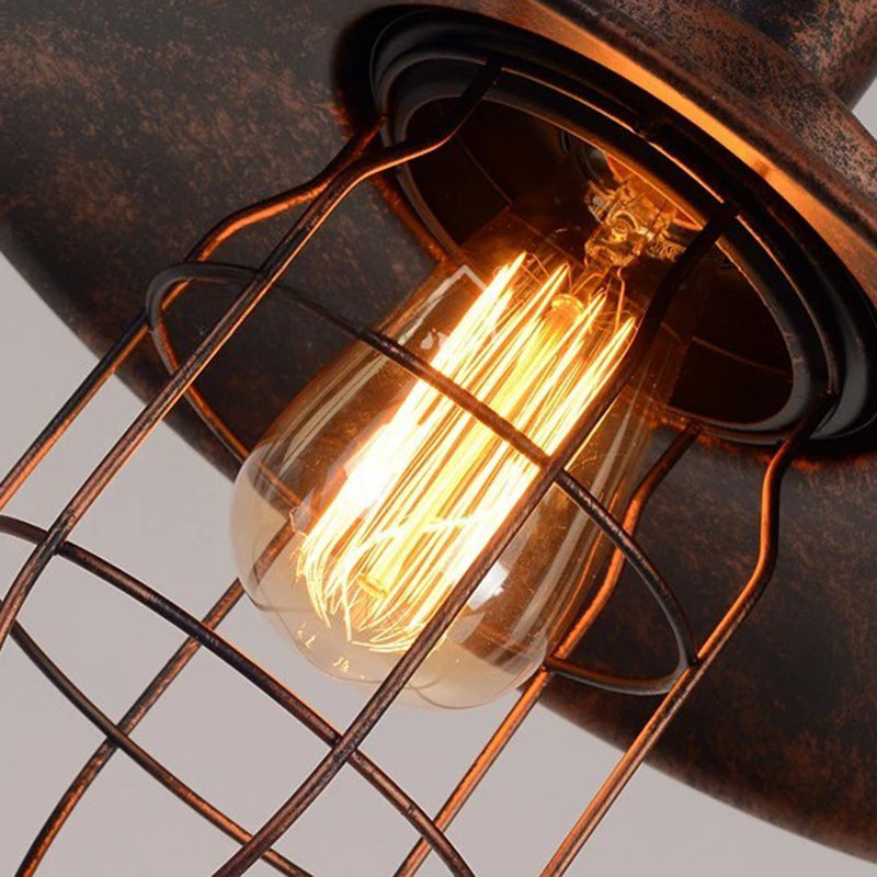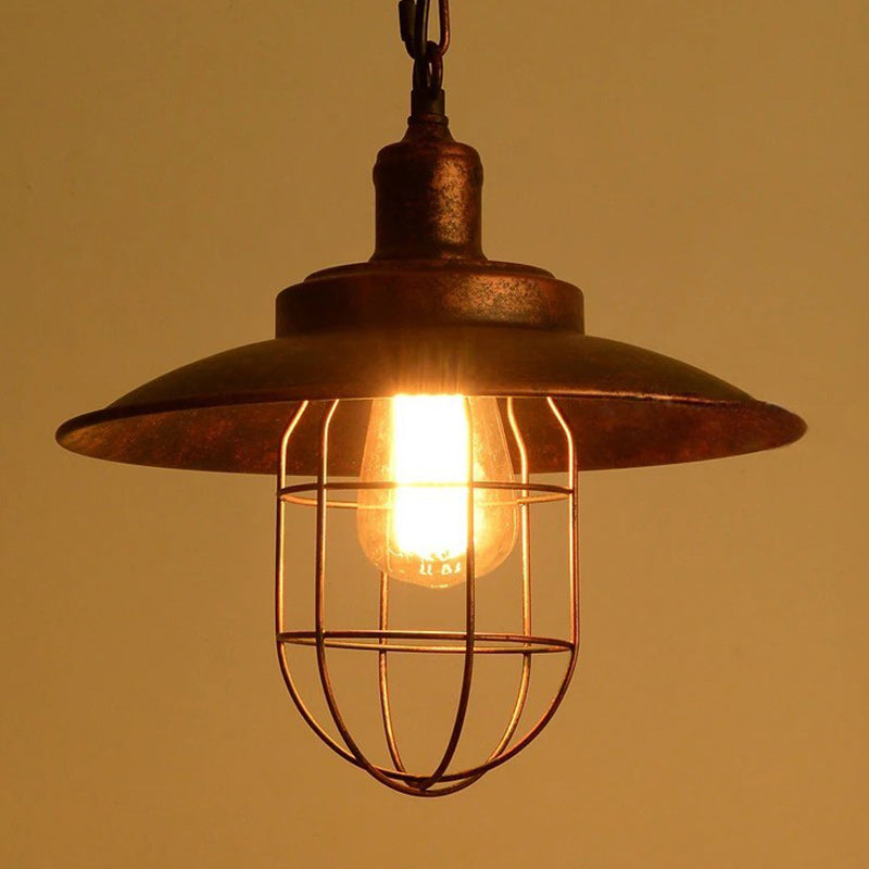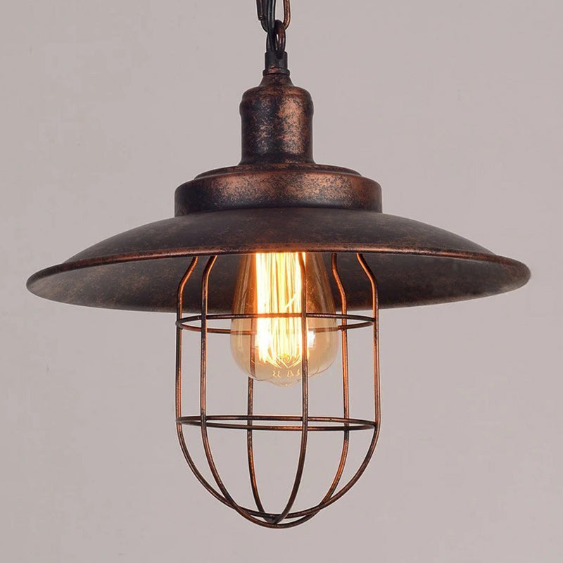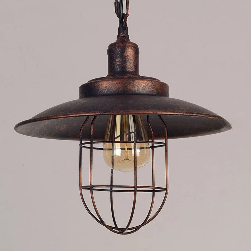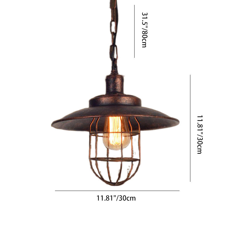 This 1-Light pendant light features a rust-colored iron finish with a bold cone-shaped design, perfect for industrial loft, bar, or café settings. Its vintage charm and sturdy metal build add a modern industrial edge to any dining or living space.