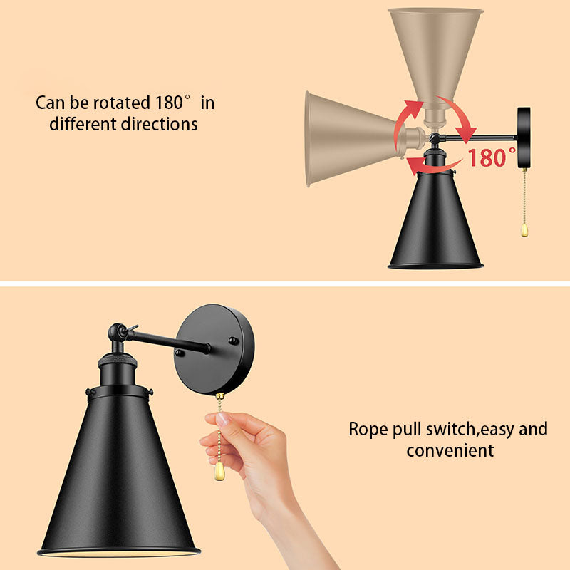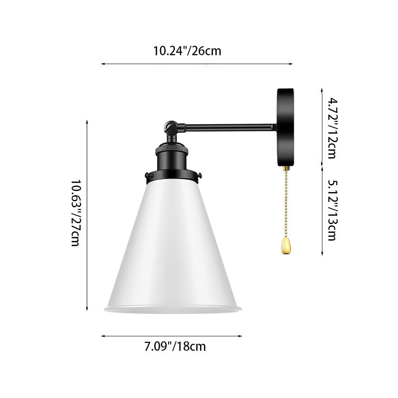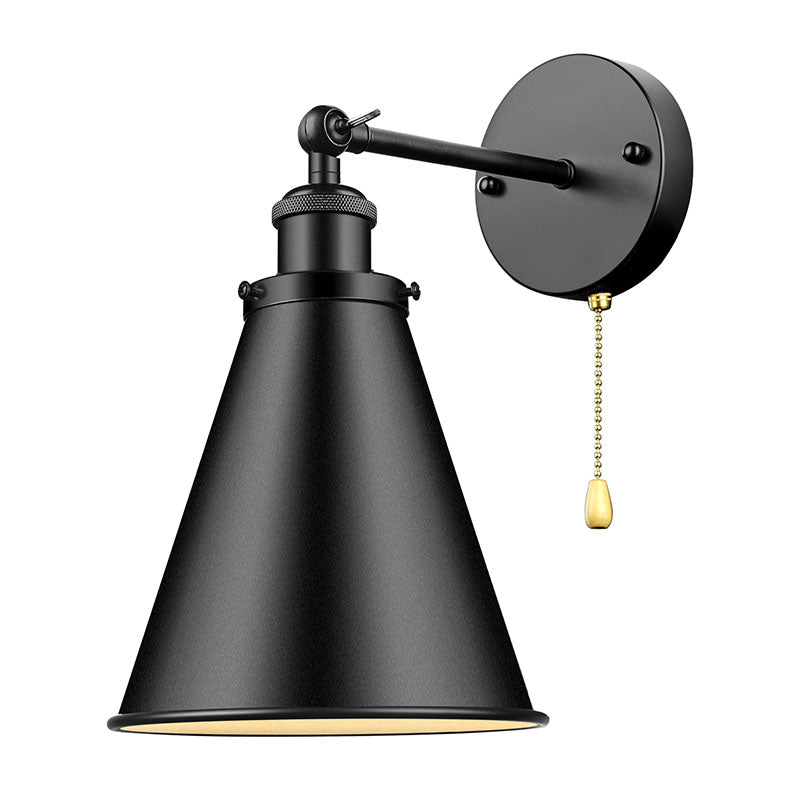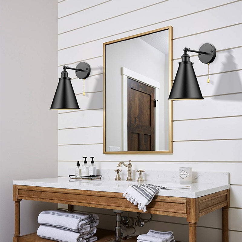 Contemporary Industrial Iron Conical Shade 1-Light Wall Sconce Lamp For Bathroom