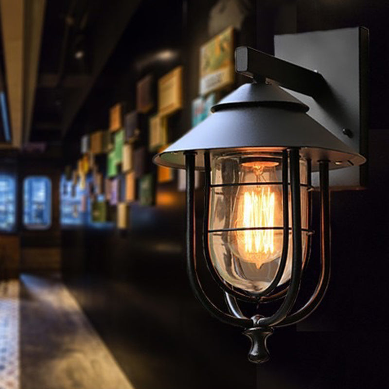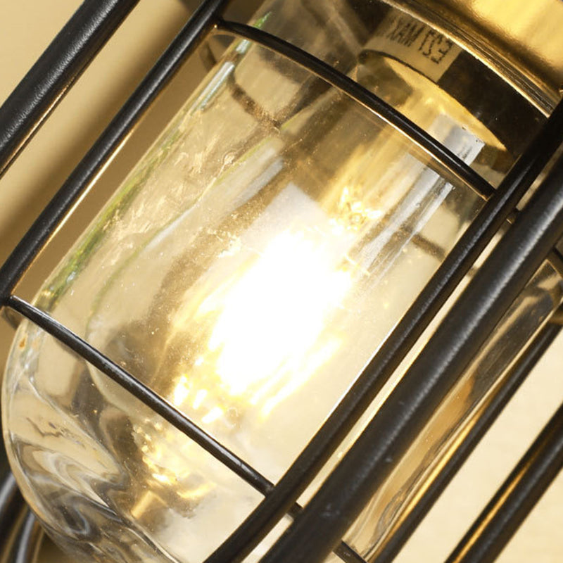 Enhance your outdoor space with this contemporary industrial-style wall sconce lamp, featuring a black iron cage design, durable glass shade, and excellent light transmittance. Built to resist water, rust, and corrosion—perfect for patios, corridors, or café décor.