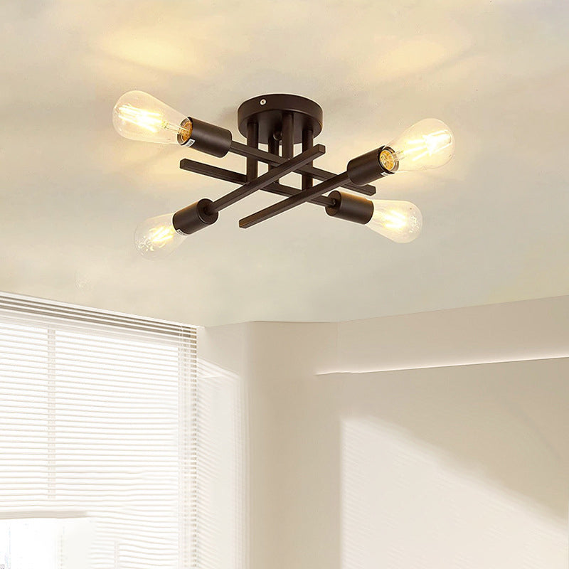 Contemporary Industrial Long Tube Iron 4-Light Semi-Flush Mount Ceiling Light For Bedroom