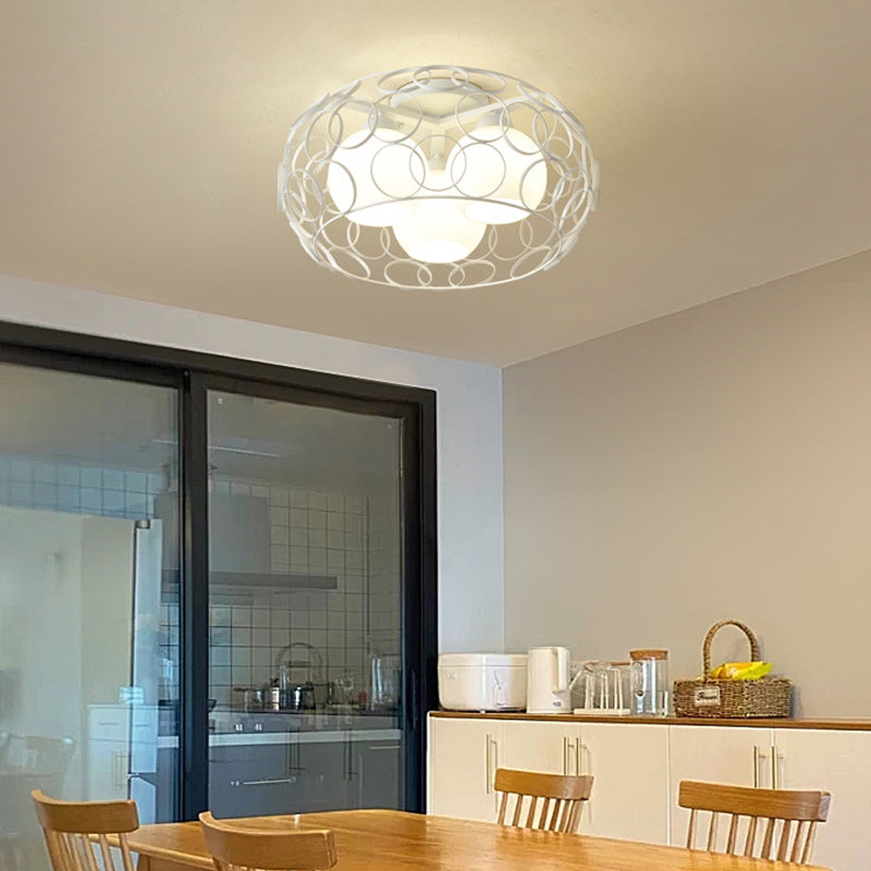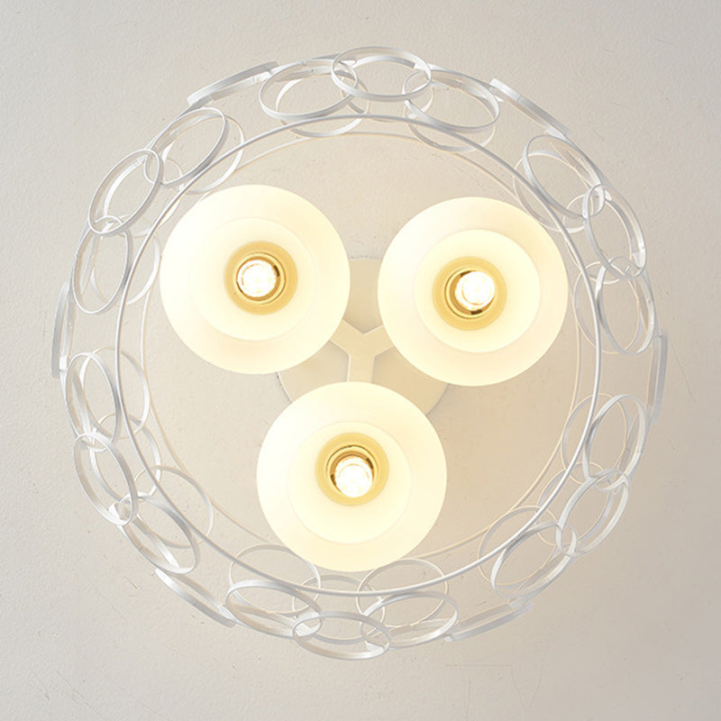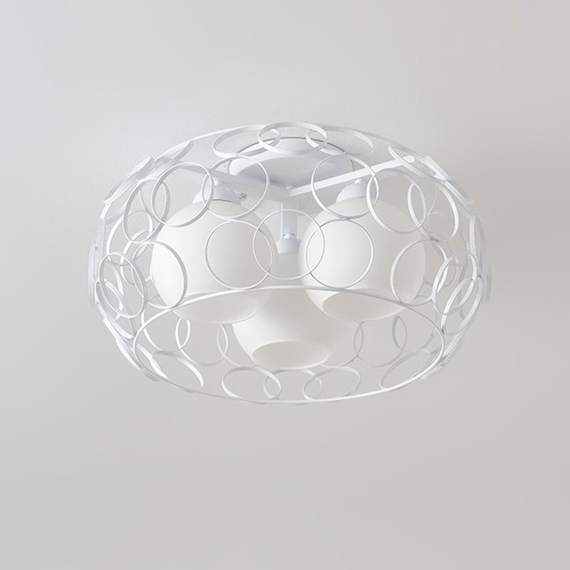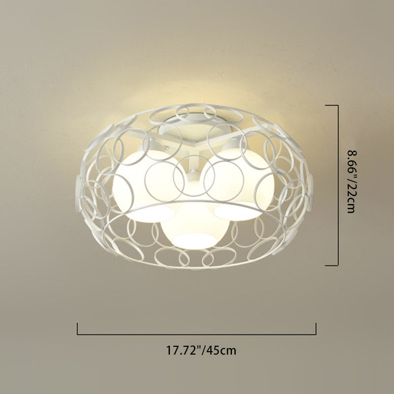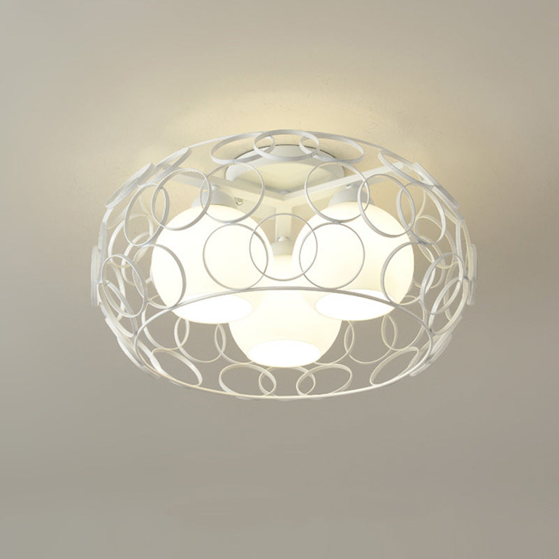 Contemporary Industrial Openwork Circle Round Glass Iron 3-Light Semi-Flush Mount Ceiling Light For Bedroom