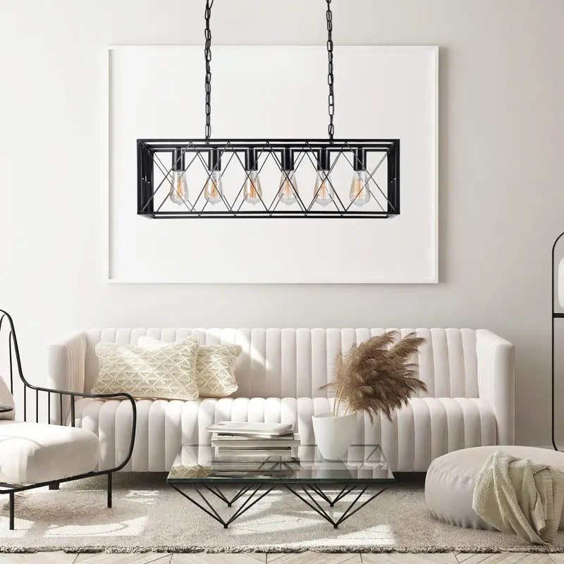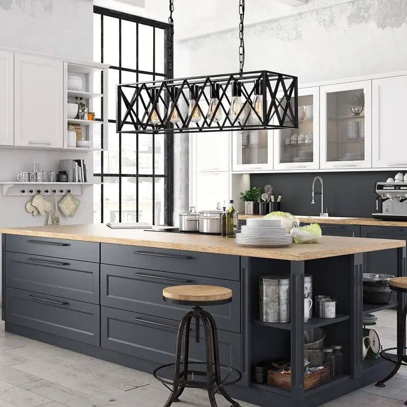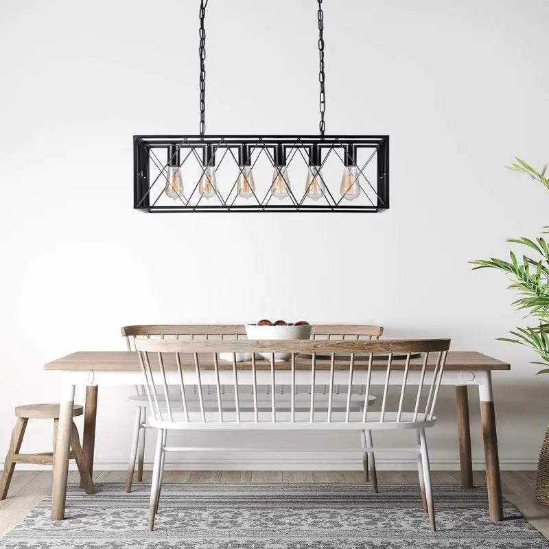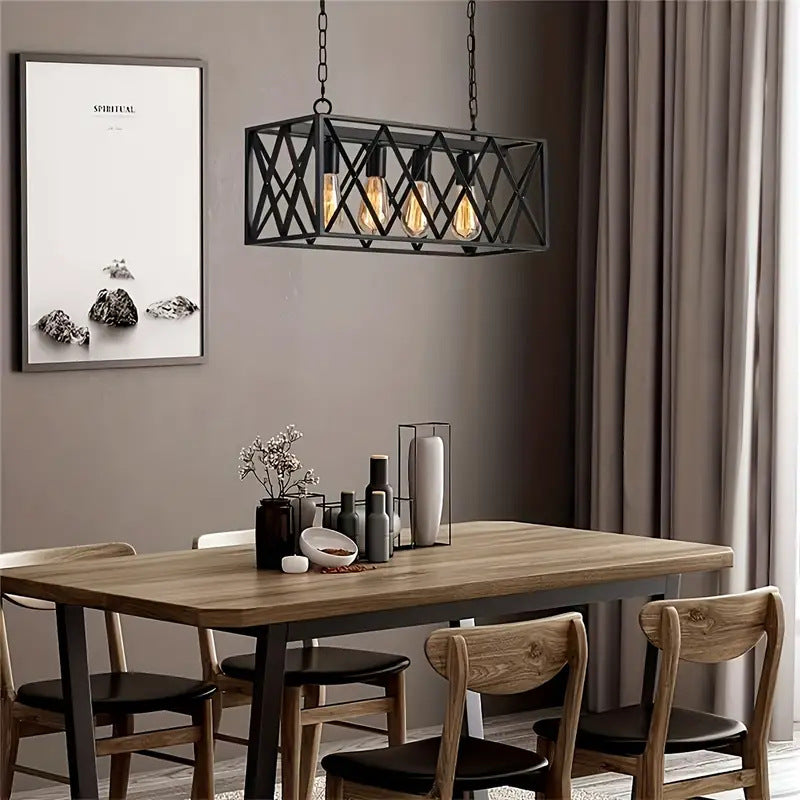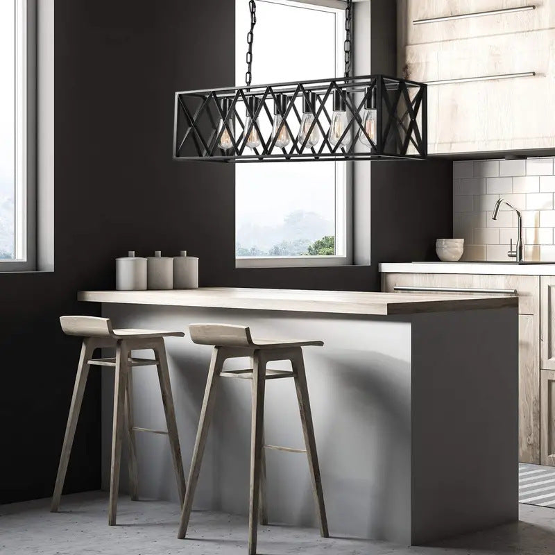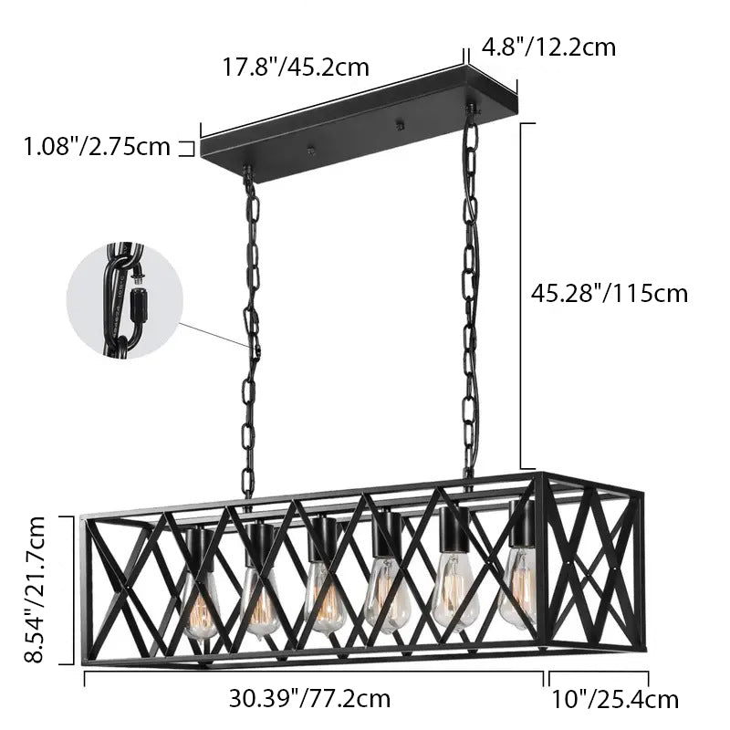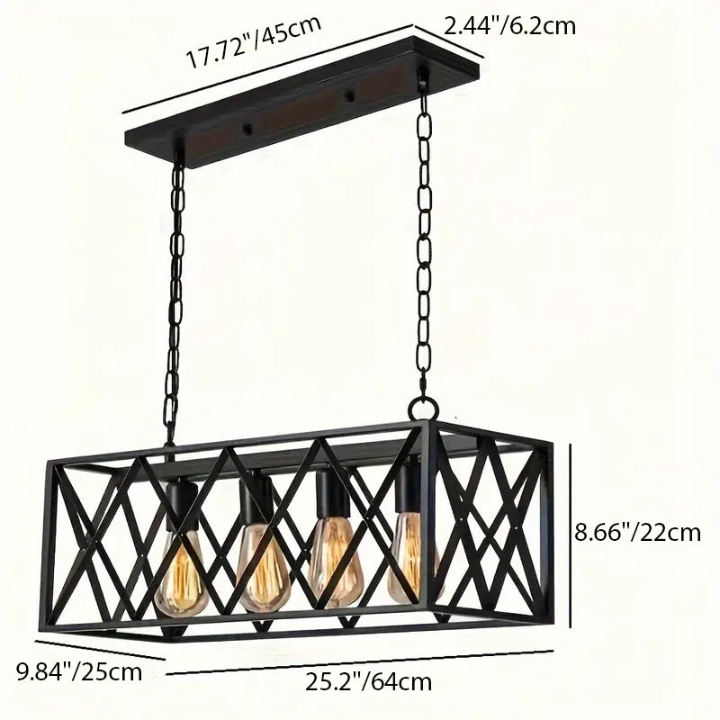 Contemporary Industrial Rectangle Mesh Long Iron 4/6 Light Chandelier Island Light For Dining Room