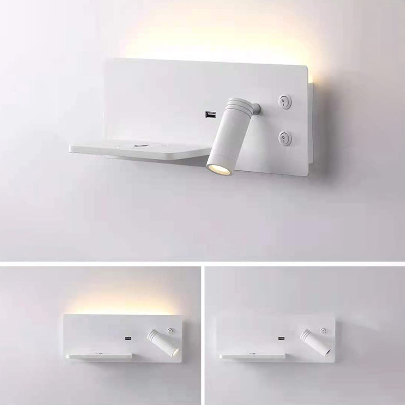 Contemporary Industrial Rectangular USB Rechargeable LED Rotatable Spotlight Wall Sconce Lamp For Bedroom