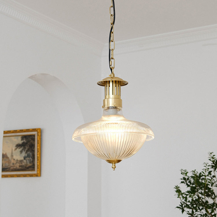 Contemporary Industrial Ribbed Glass Funnel Shade Iron 1-Light Pendant Light For Bedroom