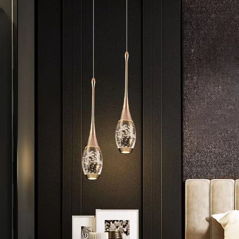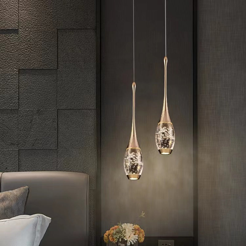 Contemporary Luxury Aluminum Water Drop Crystal LED Pendant Light For Living Room