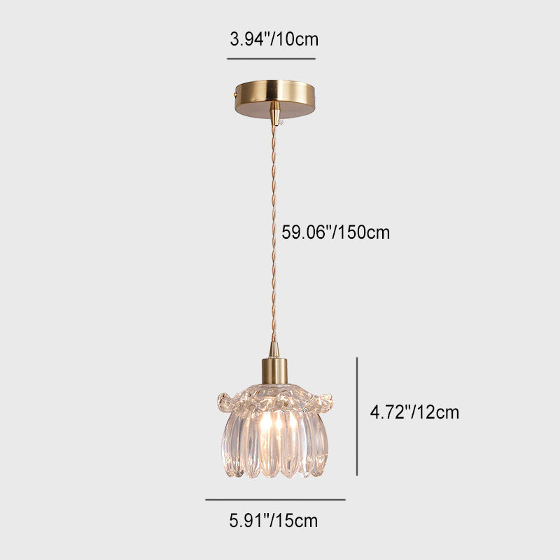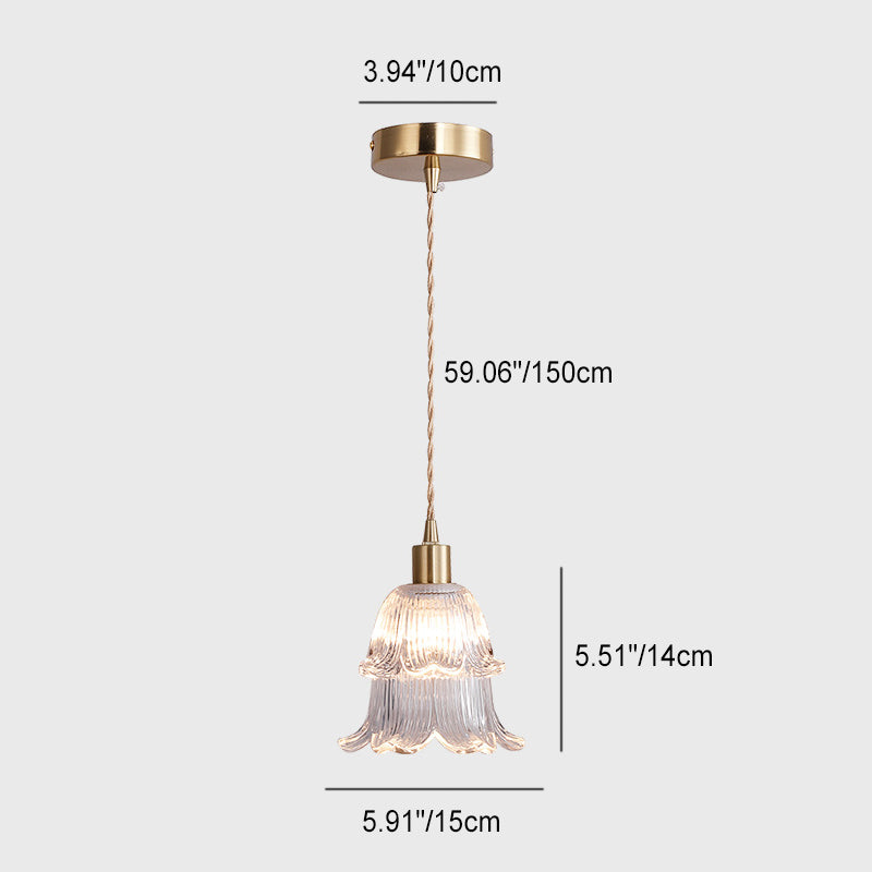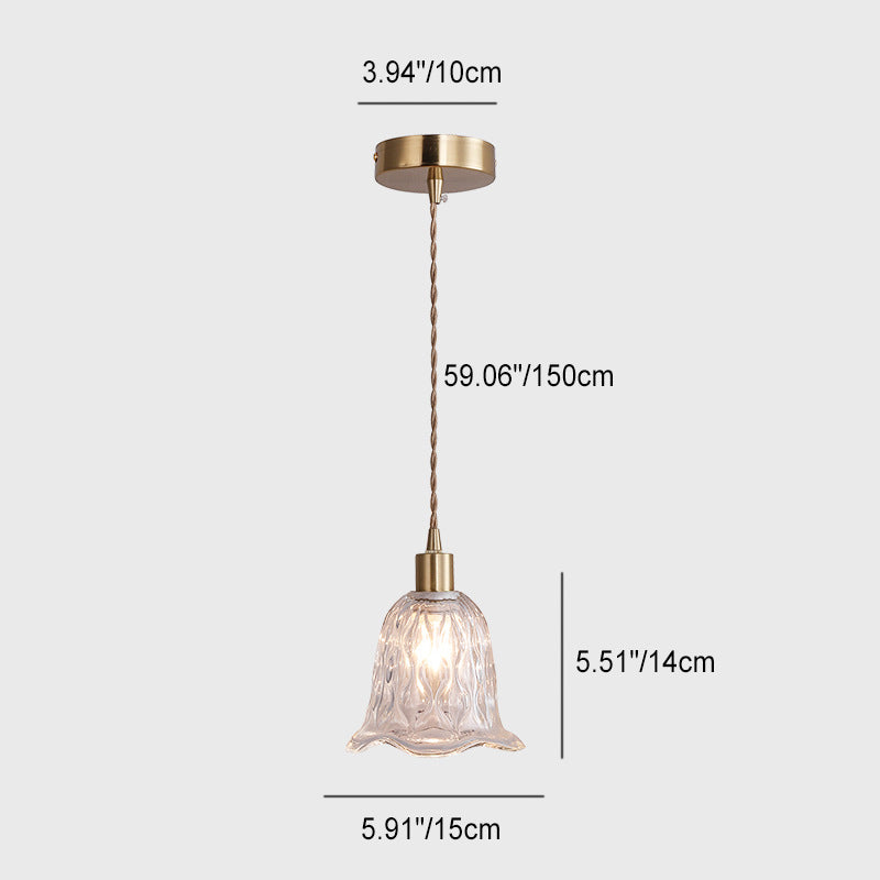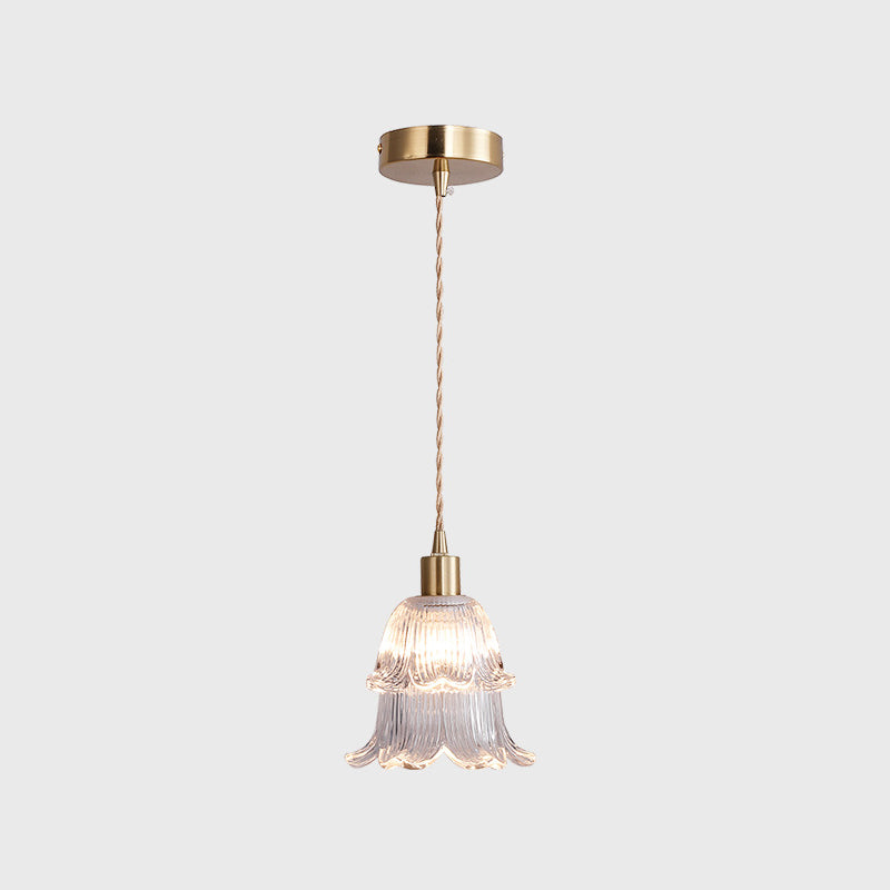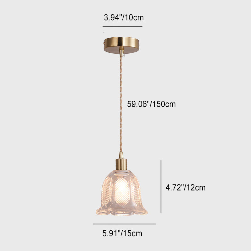 Contemporary Luxury Antique Brass Flower Glass Design 1-Light Pendant Light For Living Room