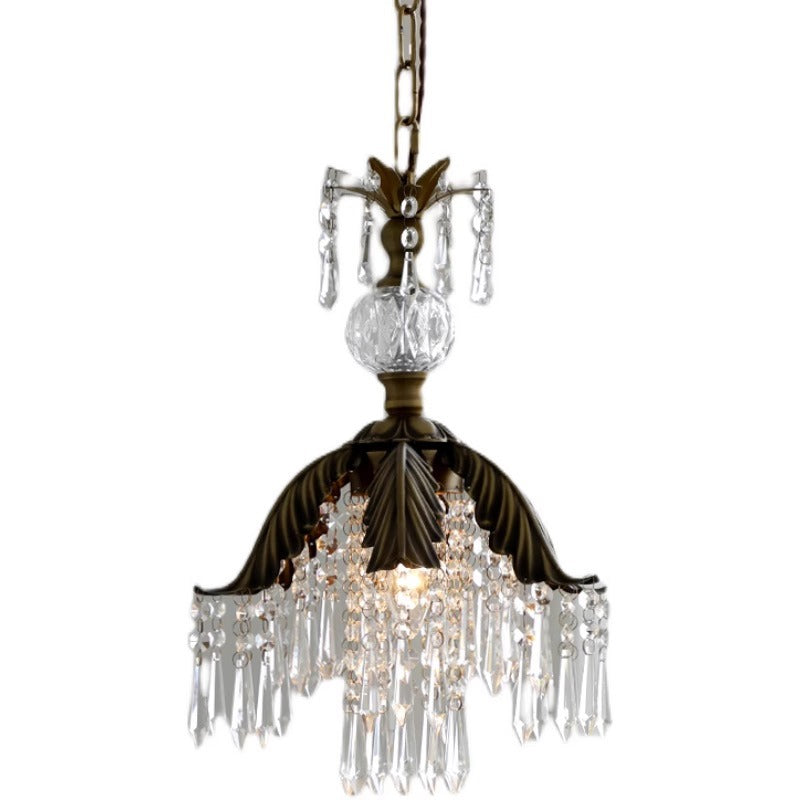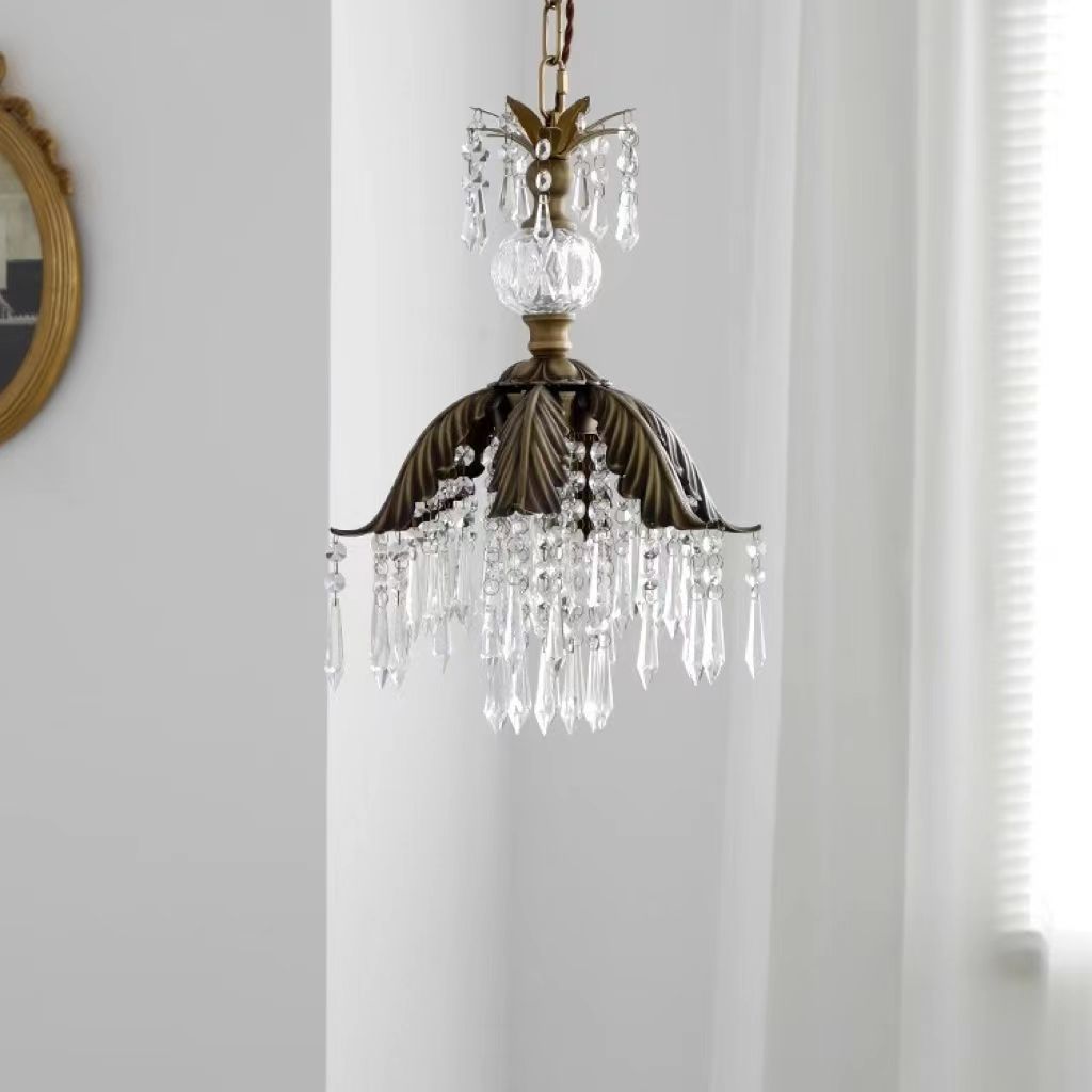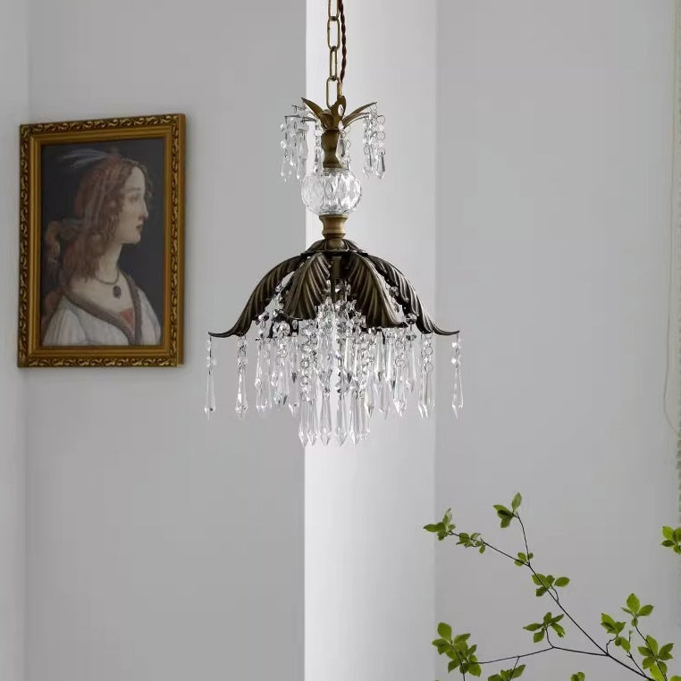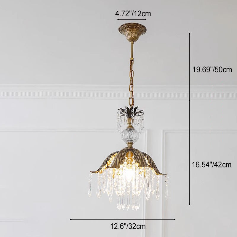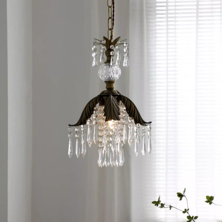 Contemporary Luxury Antique Brass Frame Crystal Tassel 1-Light Pendant Light For Dining Room