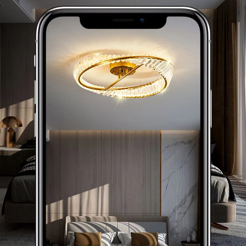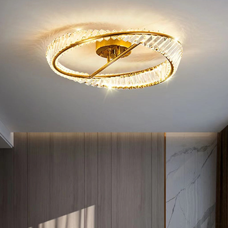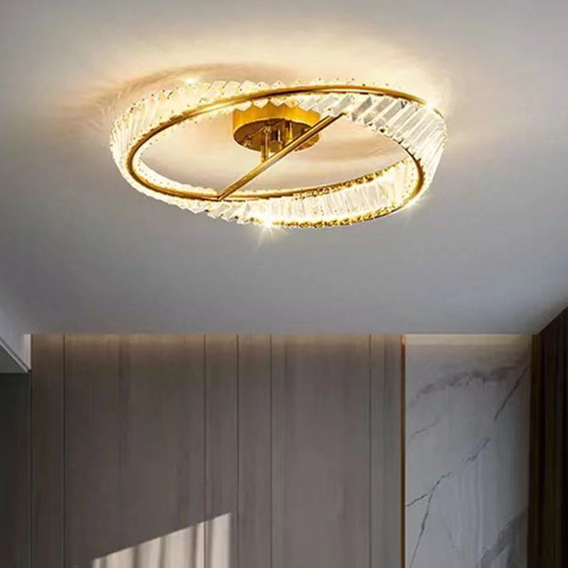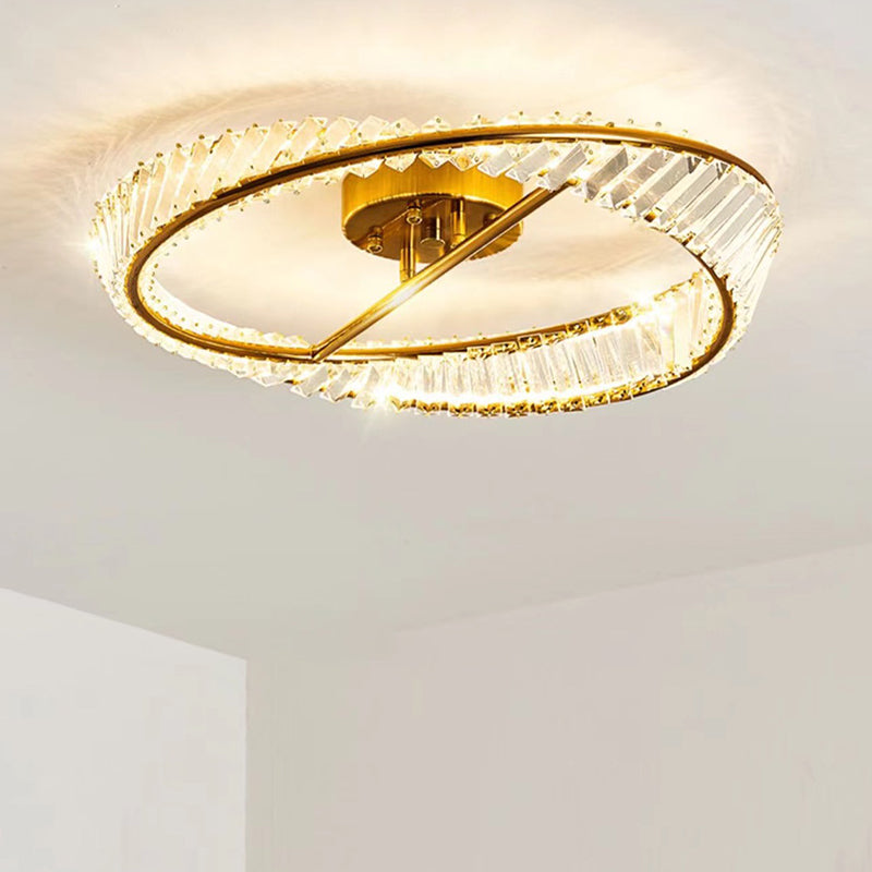 Contemporary Luxury Arc Hardware Crystal LED Flush Mount Ceiling Light For Bedroom