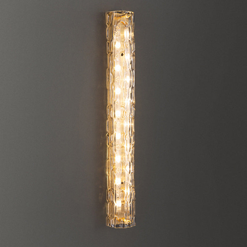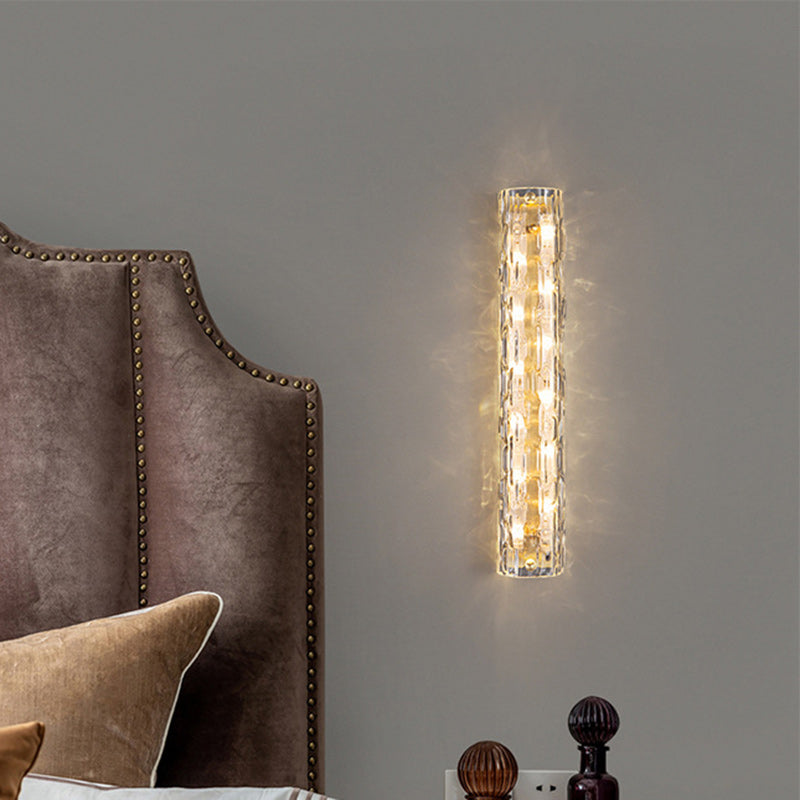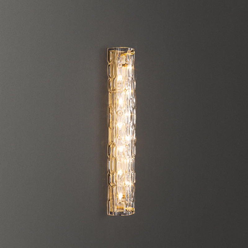 Contemporary Luxury Brass Crystal Column LED Wall Sconce Lamp For Living Room