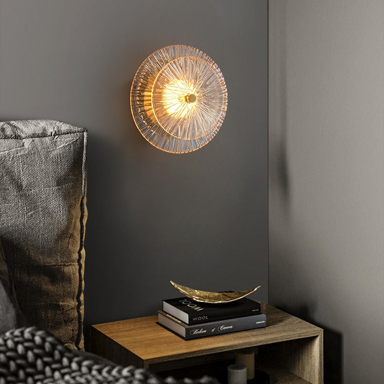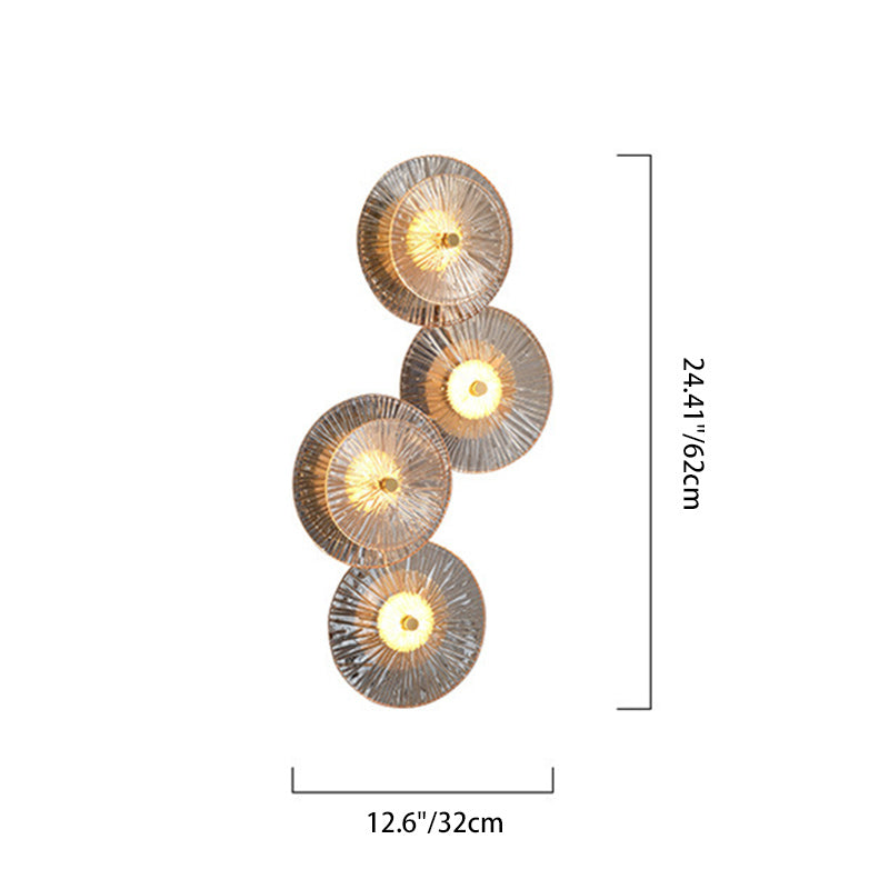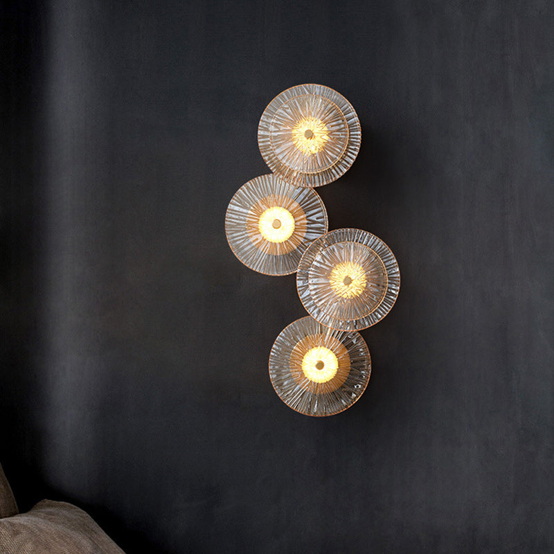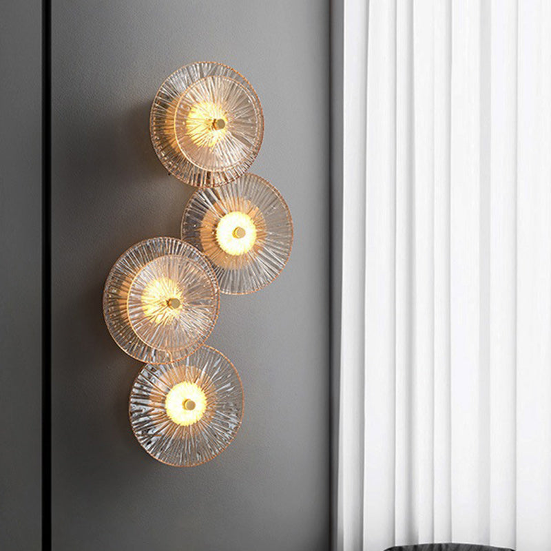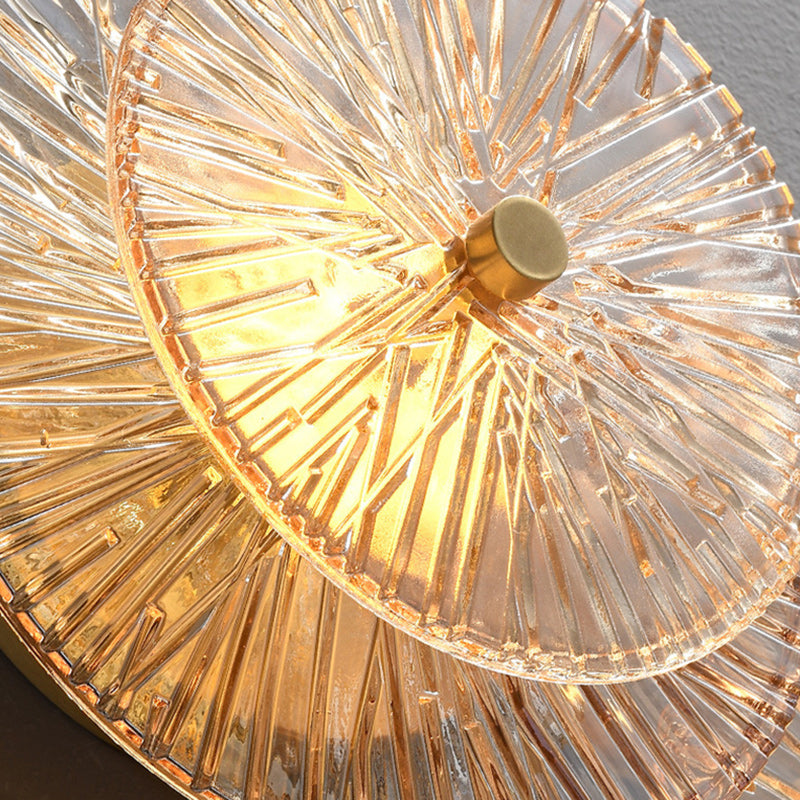 Contemporary Luxury Brass Geometric Disc Glass Lotus Leaf Design LED Wall Sconce Lamp For Bedroom