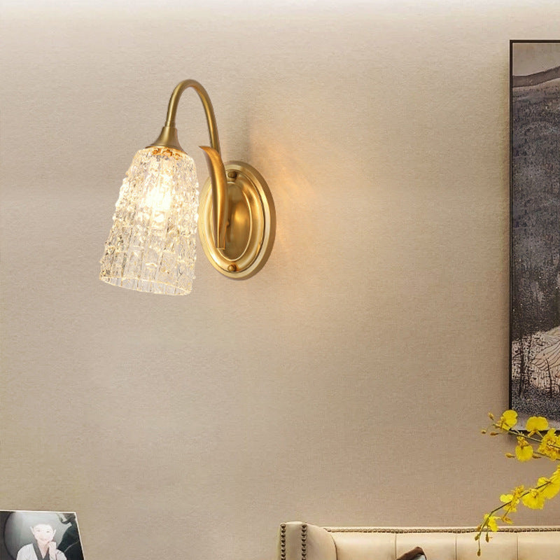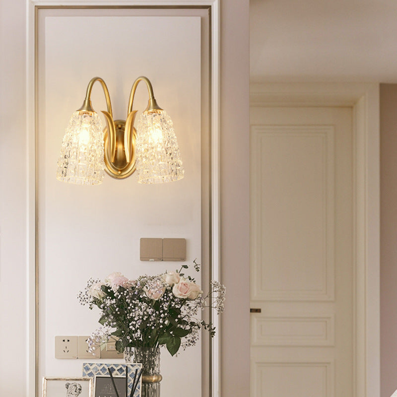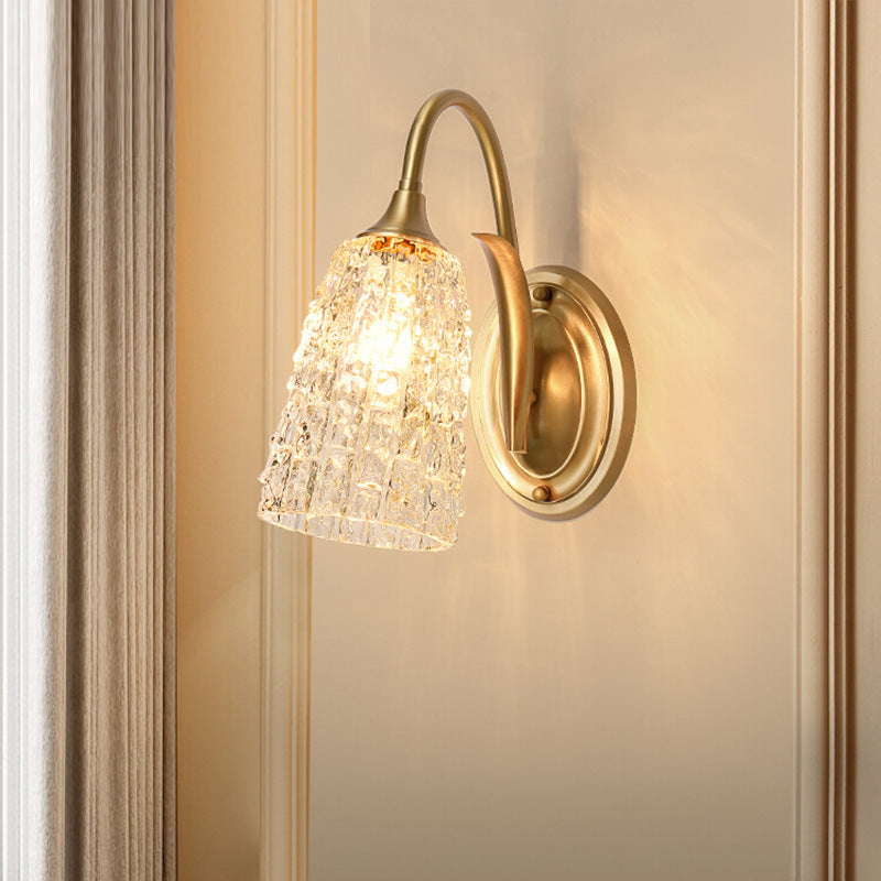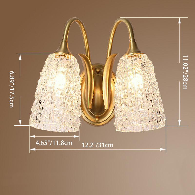 Contemporary Luxury Column Copper Glass 1/2-Light Wall Sconce Lamp For Living Room