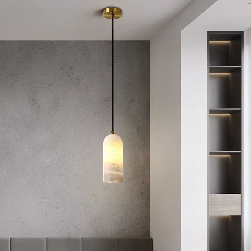 Contemporary Luxury Column Marble Brass 1-Light Pendant Light For Living Room