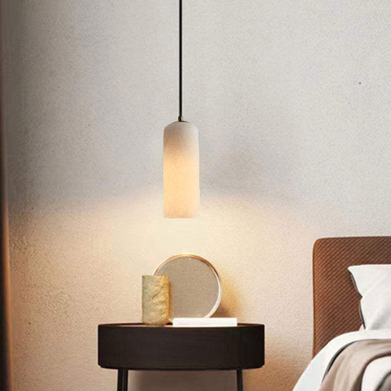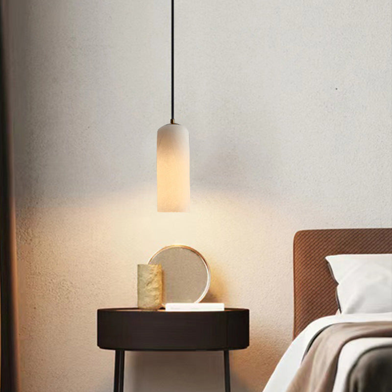 Contemporary Luxury Column Stone Glass LED Pendant Light For Living Room
