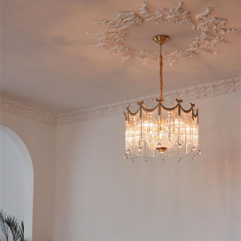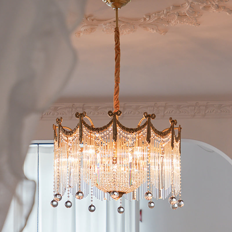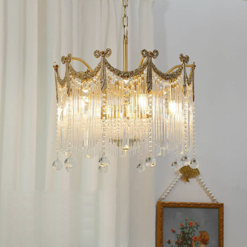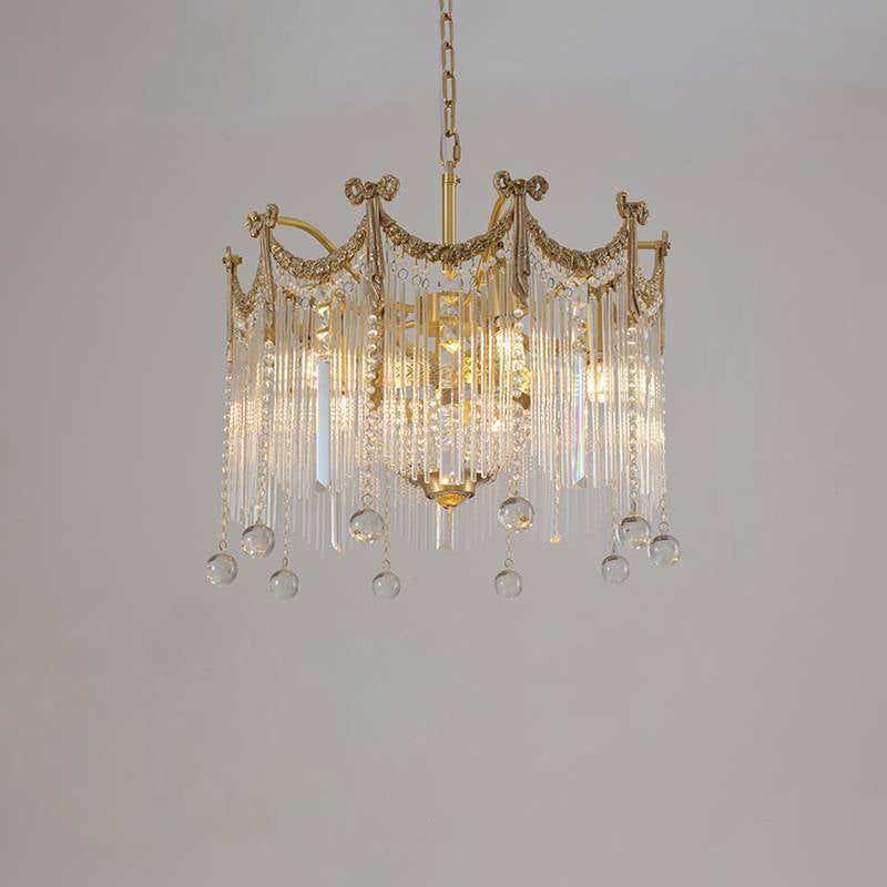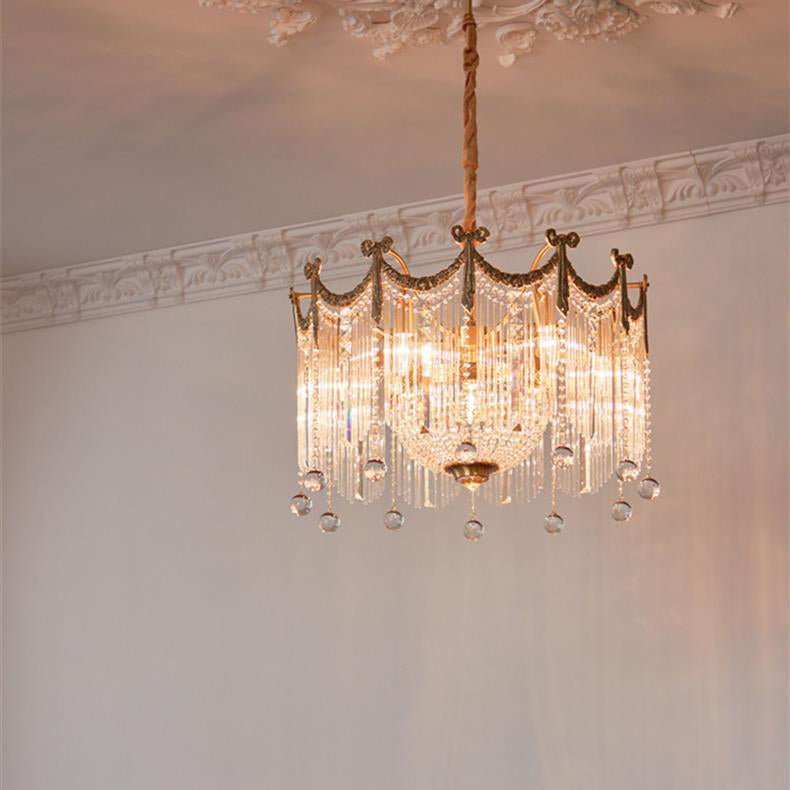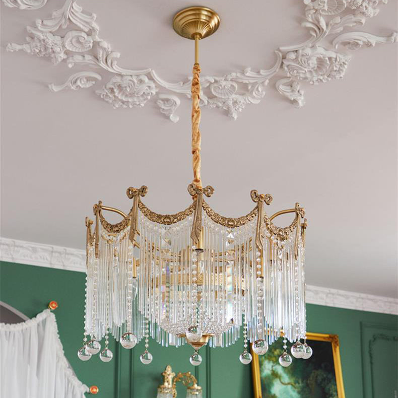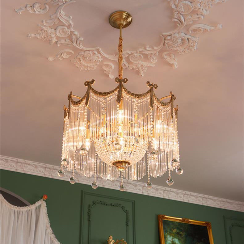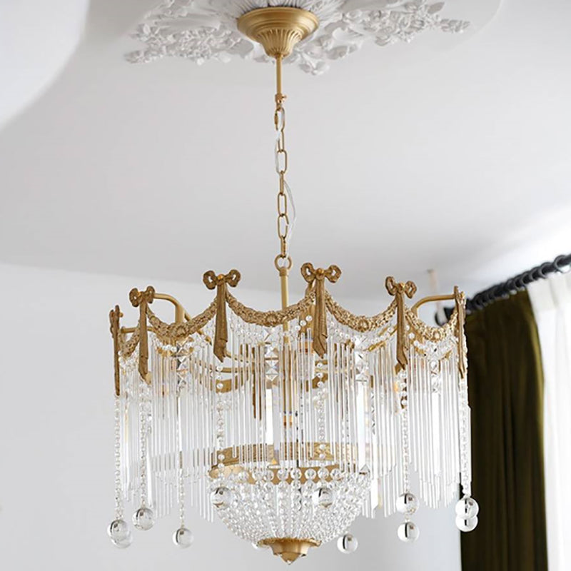 Contemporary Luxury Copper Bow Crystal Beads 6/7/9-Light Chandelier For Living Room