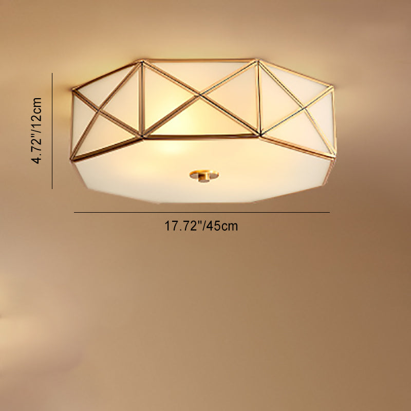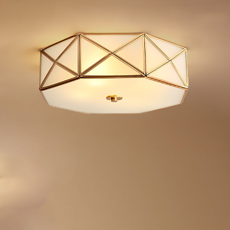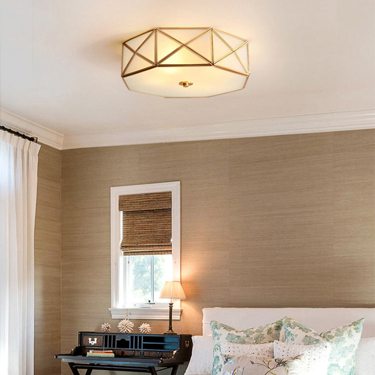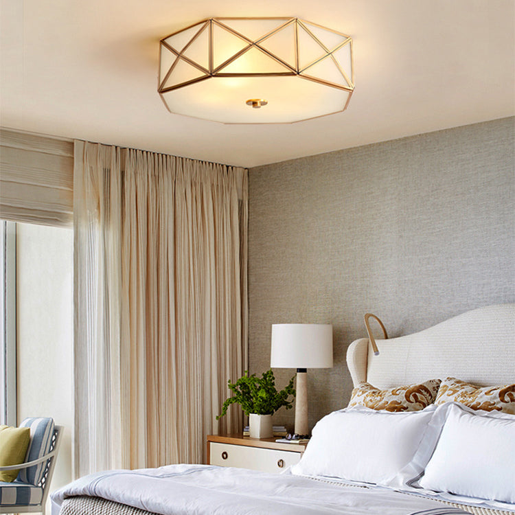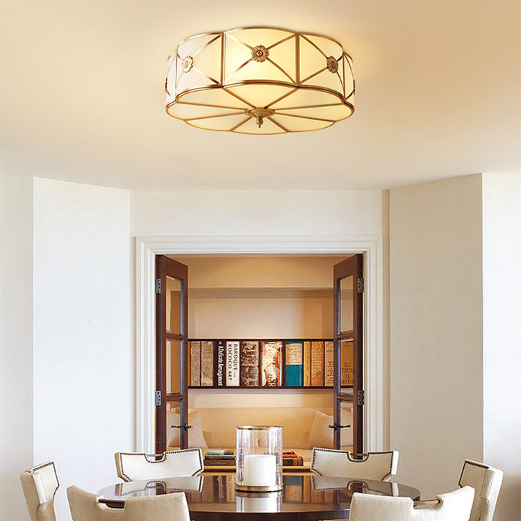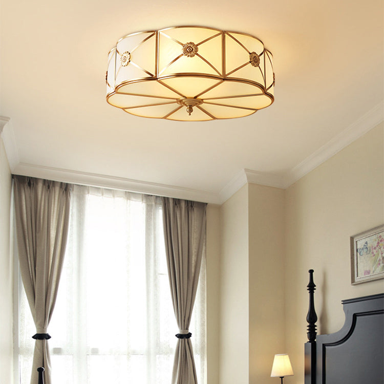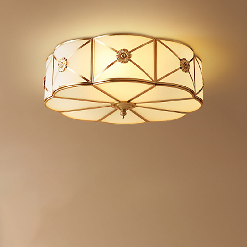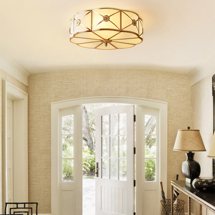 Contemporary Luxury Copper Glass Cylinder 4-Light Flush Mount Ceiling Light For Bedroom